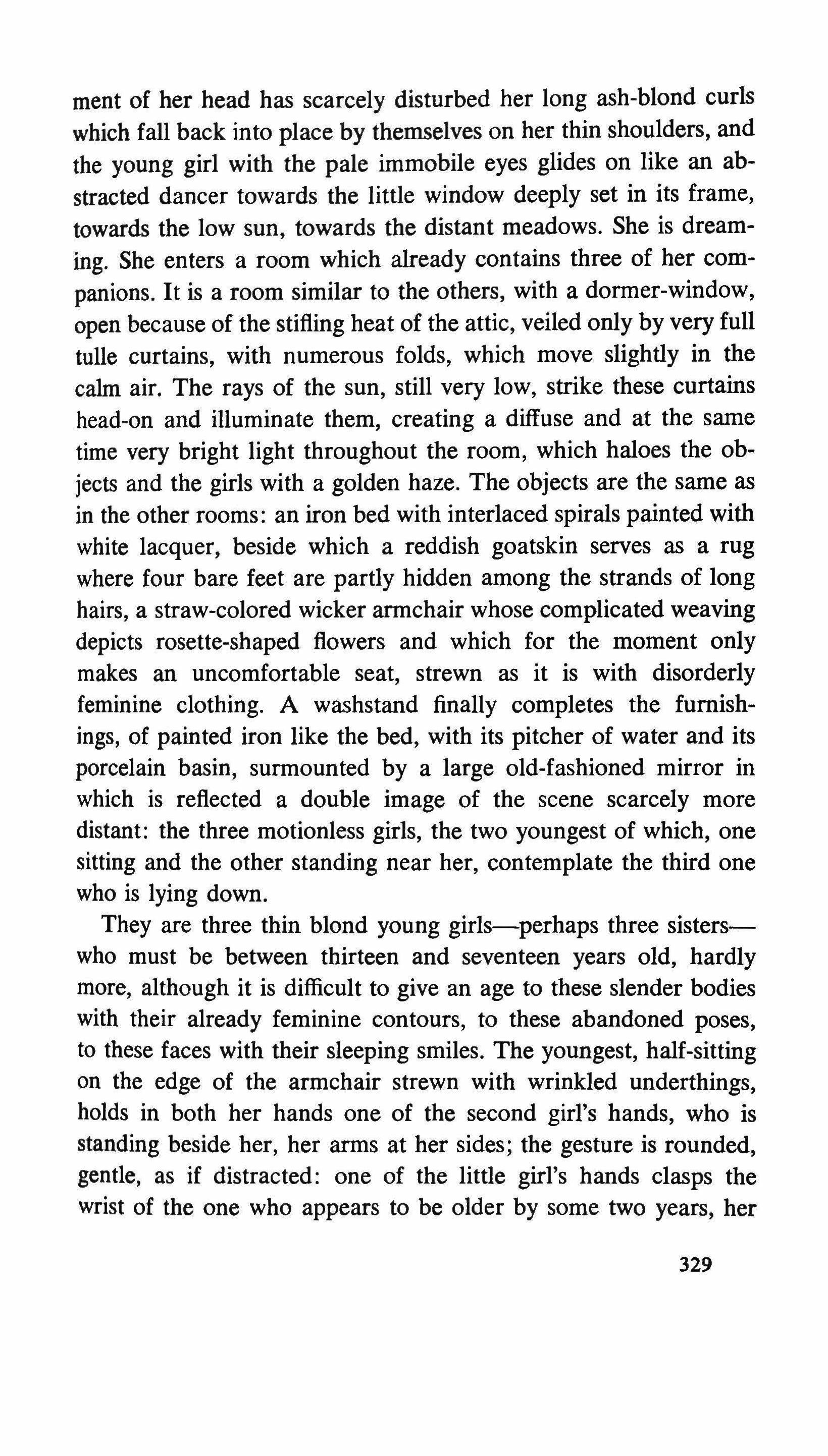 If postmodernism, then, has superseded romanticism, modernism, and the culture religion of art, it has done so with weapons forged by these earlier movements. An illustration of postmodernism's love-hate relationship with its cultural precursors is found in Donald Barthelme's Snow White, one of the postmodernist works that is most skillful in its deployment of the literary past in a subversive way. A passage from the novel helps show how Barthelme assimilates aspects of modernism so as parodically to undermine them: