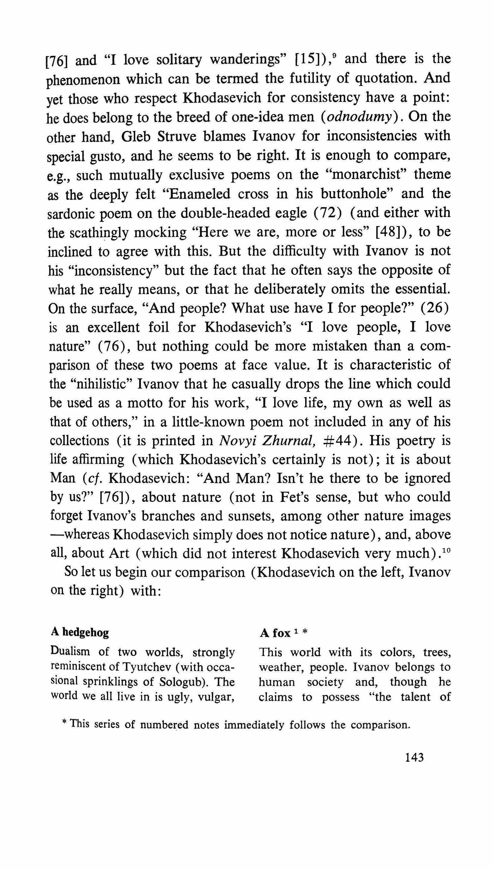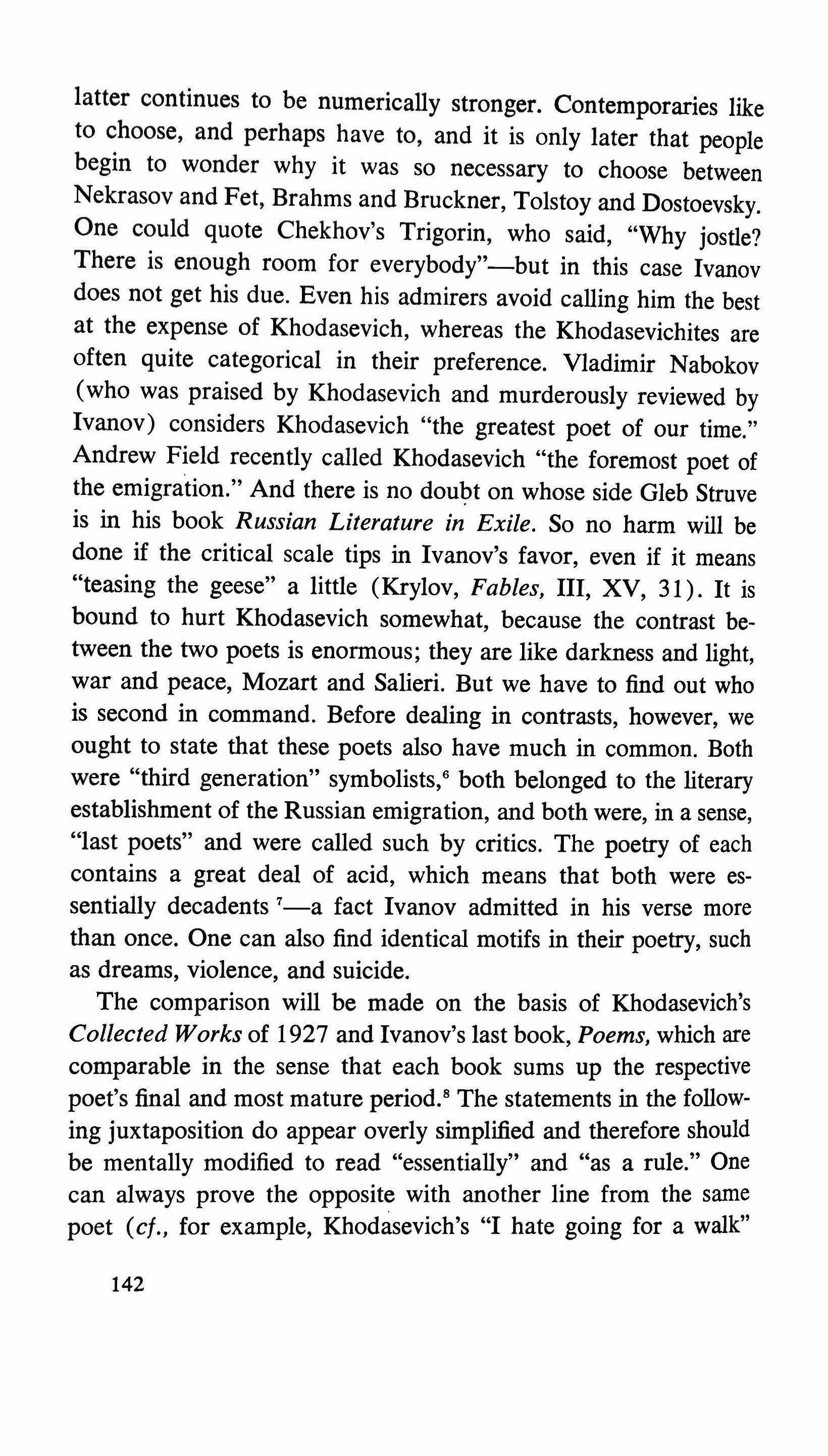 9. Gleb Struve attacked Poplavsky's work vehemently when it first appeared in print, and he remains to this day Poplavsky's most consistent critical opponent. The only other adverse response to Poplavsky's literary beginnings in emigre criticism, Vladimir Nabokov's review of Flags in Rul' (The Rudder)-