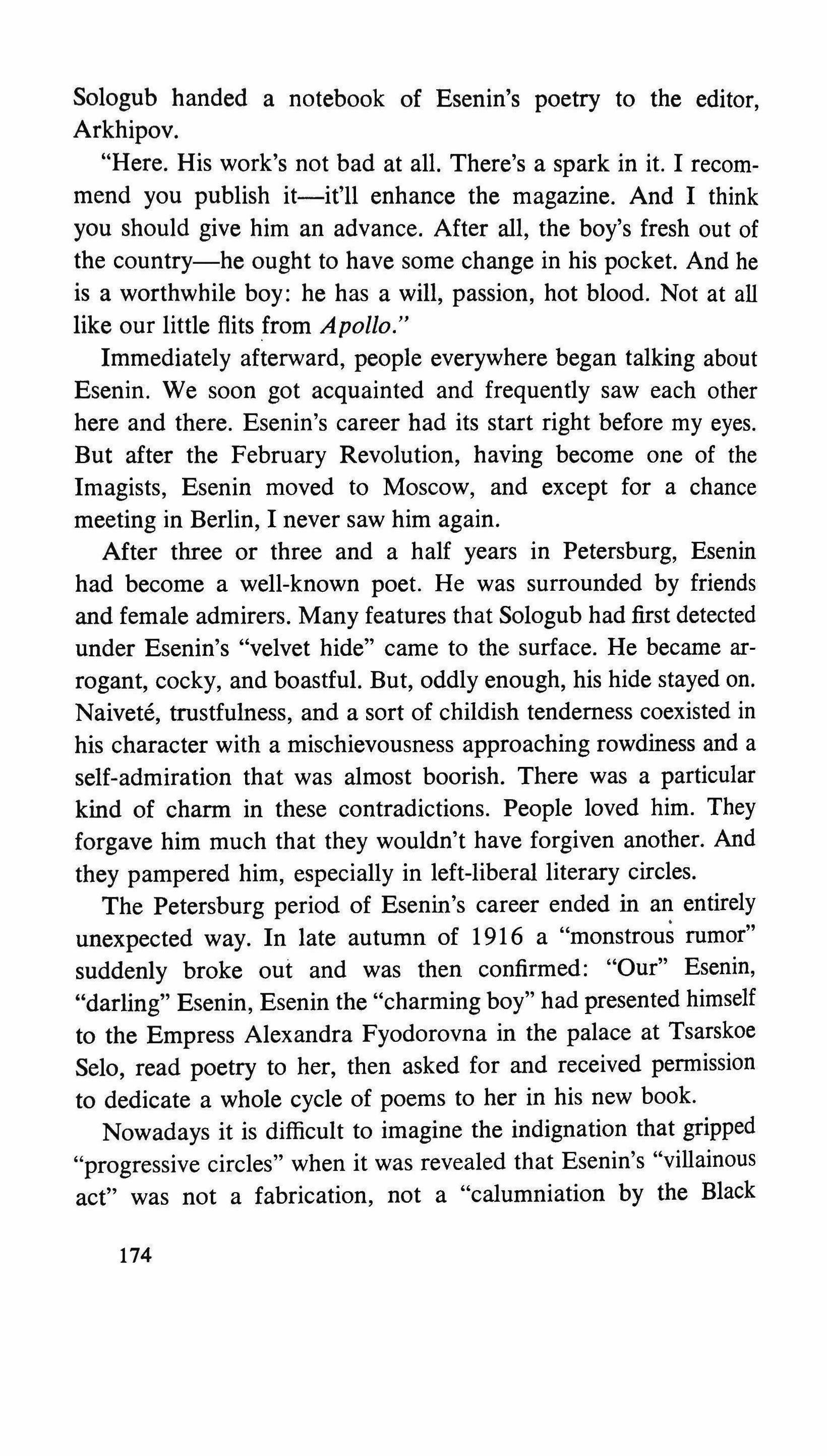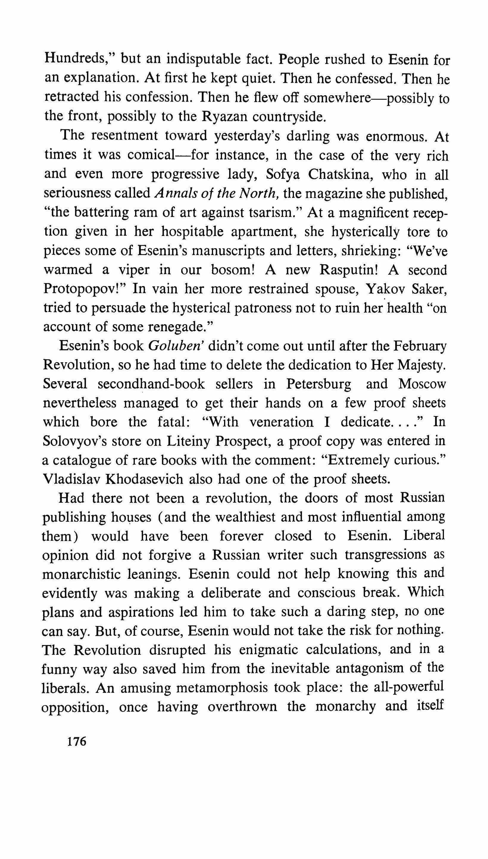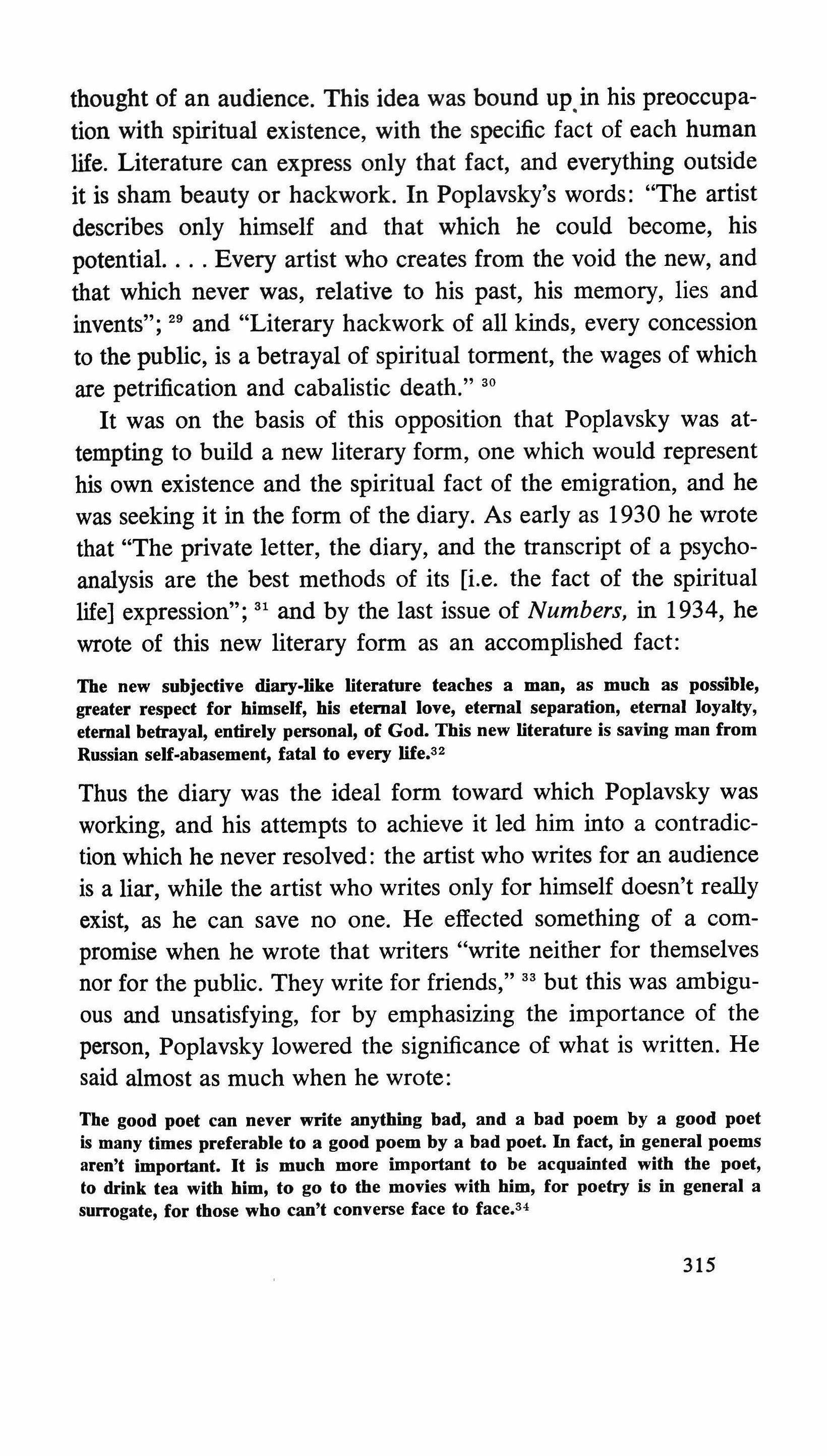 importance among the younger emigres," At Poplavsky's funeral, homage was paid to him by such diverse figures as Mark Aldanov, Alexei Remizov, and Vladislav Khodasevich, whose eloquent obituary of Poplavsky was later reprinted in a collection of his critical essays." And yet, if we were to take a count, there would probably be fewer people in the world today who are aware of Poplavsky's existence than in 1935.