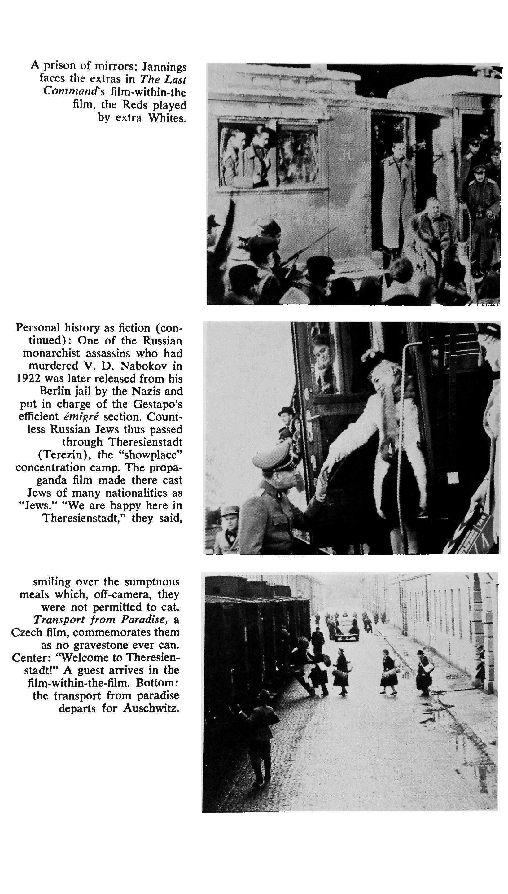 Selected Poems 1930-1970 (Black Sparrow Press). The Shadow of an Airplane Climbs the Empire State Building: A World Theory of Film was published by Doubleday. TATIANA KUSUBOVA is a graduate student at the University of California, Berkeley, completing a dissertation on Konstantin Korovin as writer. She spent 1971-72 in France collecting biographical data on Korovin on a grant from the University of California. OLGA HUGHES is an Associate Professor of Slavic Languages and Literatures at the University of California, Berkeley. She is author of "Pasternak and Cvetaeva: History of a Friendship" (Books Abroad) and a forthcoming book on Pasternak to be published this year by Princeton University Press. PETER YATES and his wife Frances founded the Evenings on the Roof chamber concerts in their Los Angeles home in April 1939-now the Monday Evening concerts. Mr. Yates began writing about music in 1940 for Arts and Architecture and continued his monthly column under that title for 27 years. He has published two books, An Amateur at the Keyboard and Twentieth Century Music. He became, in 1968, Professor and Chairman of the Music Department, State University College, Buffalo, N.Y. VALENTINE MARCADE is the author of a recent book on Russian twentieth century painting. JEAN-CLAUDE MARCADE is a Russian Art History and Literature scholar. The Marcades live in Paris. CZESLAW MILOSZ' most recent publications are his autobiography, Native Realm (Doubleday) and History of Polish Literature (Macmillan). He is a poet and translator and Professor of Slavic Languages and Literatures, University of California, Berkeley. PAUL SCHMIDT's volume of translations of Arthur Rimbaud will appear this year. Mr. Schmidt is currently teaching Russian Literature at the University of Texas, Austin, and completing a doctoral dissertation on Soviet Theatre in the 1920's. HELENE ISWOLSKY has recently published a translation of Mikhail Bakhin's study of Rabelais, and is the author of two memoirs on Marina Tsvetaeva. DANIEL BURES is the author of The Negative Potential, a volume of poems, and The Mind Machine, a collection of short fiction. ISABELLA LEVITIN is married to V. S. Yanovsky and is a translator of his work into English. VLADIMIR NABOKOV's most recent work is a novel, Transparent Things (McGraw-Hill). "Torpid Smoke" and "Solus Rex" are stories from his collection A Russian Beauty and Other Stories, to be published by McGraw-HilI, Spring 1973.