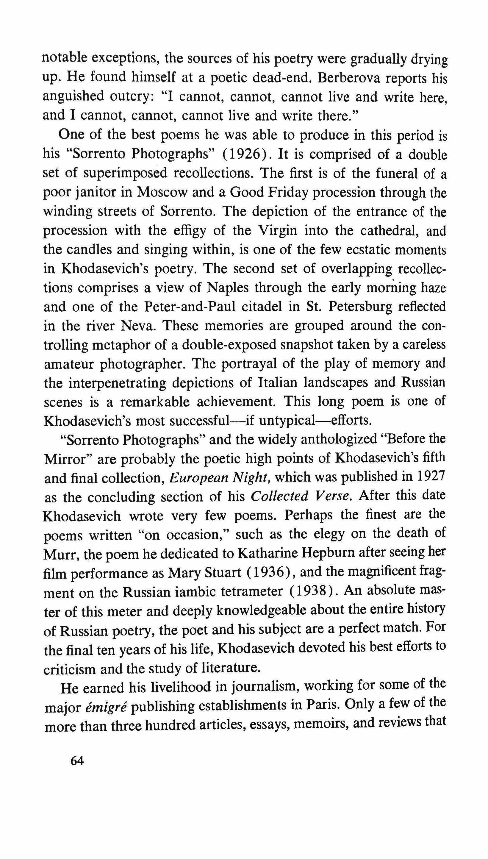 Khodasevich: irony and dislocation: a poet in exile 52