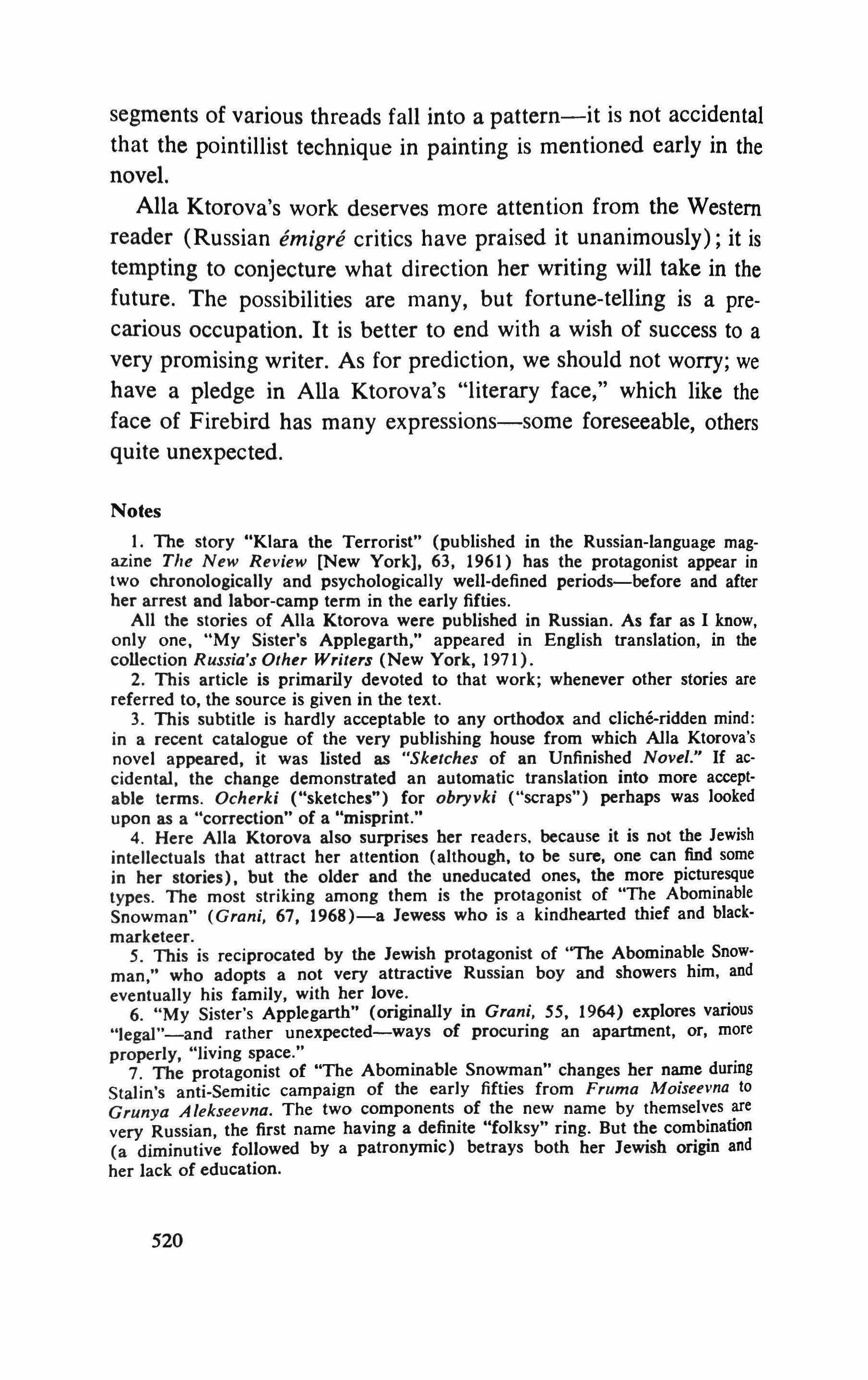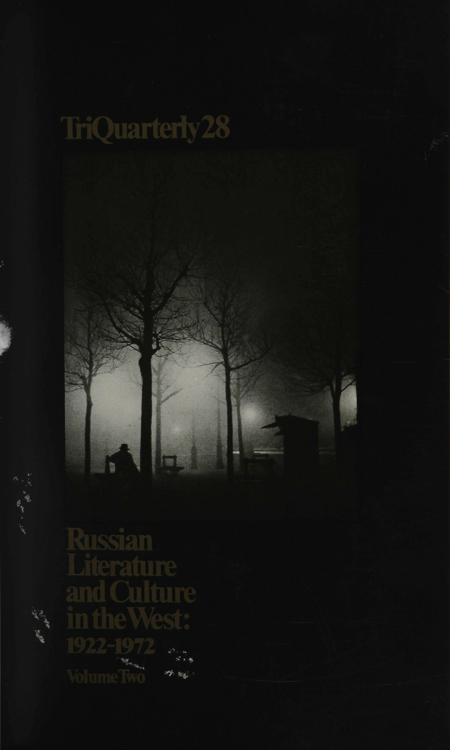 DELANEY GROSSMAN is an Assistant Professor of Slavic Languages and Literatures at the University of California, Berkeley. Her recent publications include "The Master and Margarita: The Reach Exceeds the Grasp," Slavic Review, March 1972. In 1971, she received an American Council of Learned Societies Fellowship to study the role of the journal Russian Thought in literary and cultural change between 1880 and 1917. BARRY JORDAN is a graduate student in Slavic Linguistics at the University of California, Berkeley. EDYTHE C. HABER is Assistant Professor of Russian at Tufts University. ROBERT P. HUGHES's article on Vladimir Nabokov appeared in TriQuarterly 17. He is an Associate Professor of Slavic Languages and Literatures, and of Comparative Literature at the University of California, Berkeley. SIMON KARLINSKY is the author of a critical biography of Marina Tsvetaeva (University of California Press), and editor and annotator of Letters of Anton Chekhov (Harper and Row). RON LOEWINSOHN teaches American Literature at the University of California, Berkeley. His most recent collections of poems include Meat Air: Poems 1957-1969 (Harcourt Brace) and The Leaves (Black Sparrow Press). ANNA KISSELGOFF is a dance critic for The New York Times. JOHN E. MALMSTAD, Assistant Professor of Russian Language and Literature at Columbia University, is the editor of The Variorum Edition of the Poetry of Andrei Belyi (Fink-Verlag) and the author of a forthcoming biography of M. A. Kuzmin.