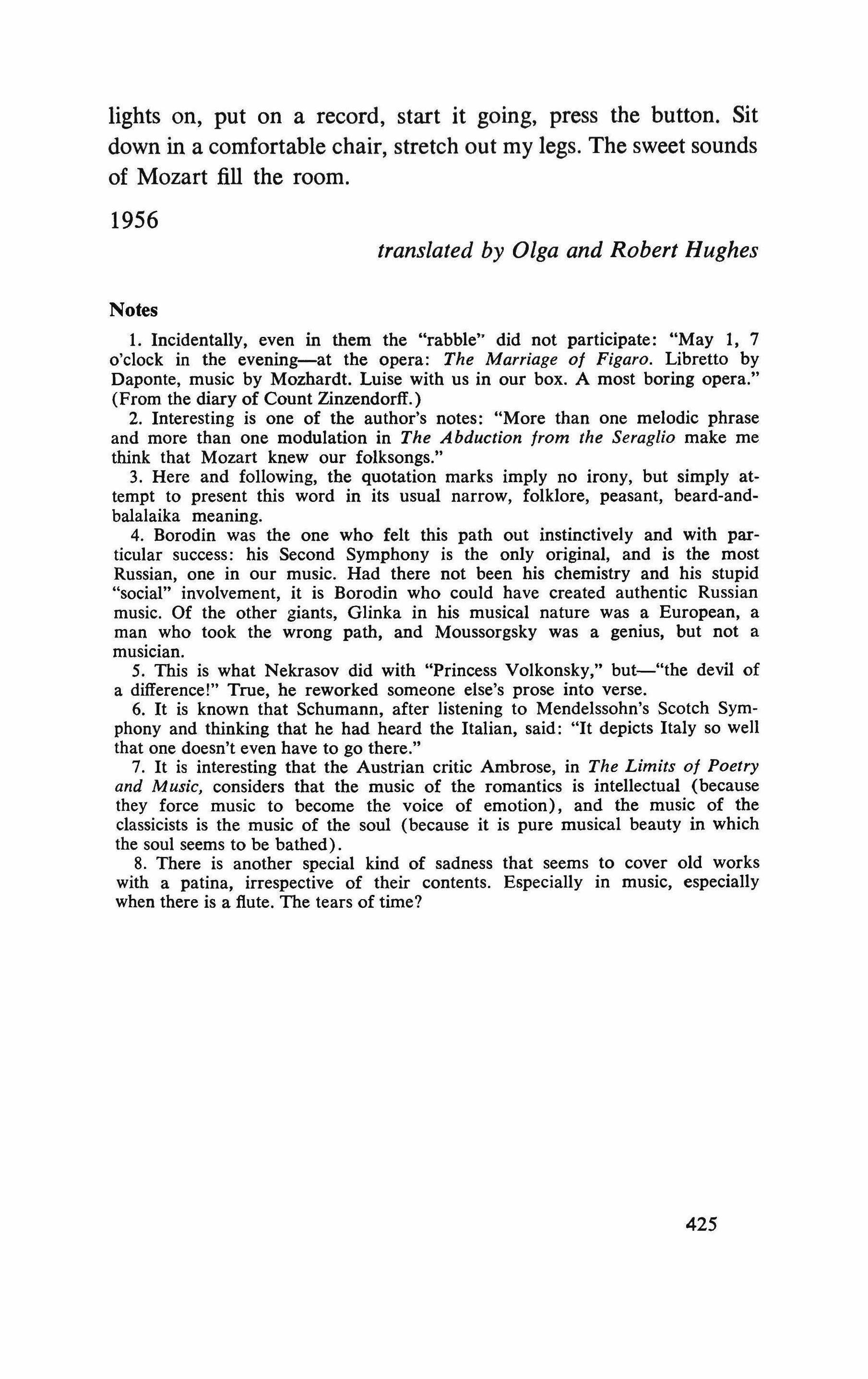 Selected Poems 1930-1970 (Black Sparrow Press). The Shadow of an Airplane Climbs the Empire State Building: A World Theory of Film was published by Doubleday. TATIANA KUSUBOVA is a graduate student at the University of California, Berkeley, completing a dissertation on Konstantin Korovin as writer. She spent 1971-72 in France collecting biographical data on Korovin on a grant from the University of California. OLGA HUGHES is an Associate Professor of Slavic Languages and Literatures at the University of California, Berkeley. She is author of "Pasternak and Cvetaeva: History of a Friendship" (Books Abroad) and a forthcoming book on Pasternak to be published this year by Princeton University Press. PETER YATES and his wife Frances founded the Evenings on the Roof chamber concerts in their Los Angeles home in April 1939-now the Monday Evening concerts. Mr. Yates began writing about music in 1940 for Arts and Architecture and continued his monthly column under that title for 27 years. He has published two books, An Amateur at the Keyboard and Twentieth Century Music. He became, in 1968, Professor and Chairman of the Music Department, State University College, Buffalo, N.Y. VALENTINE MARCADE is the author of a recent book on Russian twentieth century painting. JEAN-CLAUDE MARCADE is a Russian Art History and Literature scholar. The Marcades live in Paris. CZESLAW MILOSZ' most recent publications are his autobiography, Native Realm (Doubleday) and History of Polish Literature (Macmillan). He is a poet and translator and Professor of Slavic Languages and Literatures, University of California, Berkeley. PAUL SCHMIDT's volume of translations of Arthur Rimbaud will appear this year. Mr. Schmidt is currently teaching Russian Literature at the University of Texas, Austin, and completing a doctoral dissertation on Soviet Theatre in the 1920's. HELENE ISWOLSKY has recently published a translation of Mikhail Bakhin's study of Rabelais, and is the author of two memoirs on Marina Tsvetaeva. DANIEL BURES is the author of The Negative Potential, a volume of poems, and The Mind Machine, a collection of short fiction. ISABELLA LEVITIN is married to V. S. Yanovsky and is a translator of his work into English. VLADIMIR NABOKOV's most recent work is a novel, Transparent Things (McGraw-Hill). "Torpid Smoke" and "Solus Rex" are stories from his collection A Russian Beauty and Other Stories, to be published by McGraw-Hill, Spring 1973.