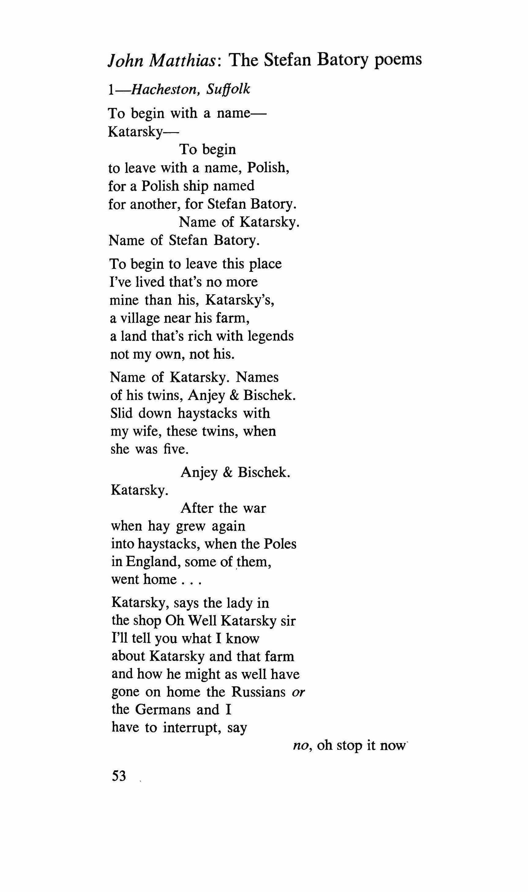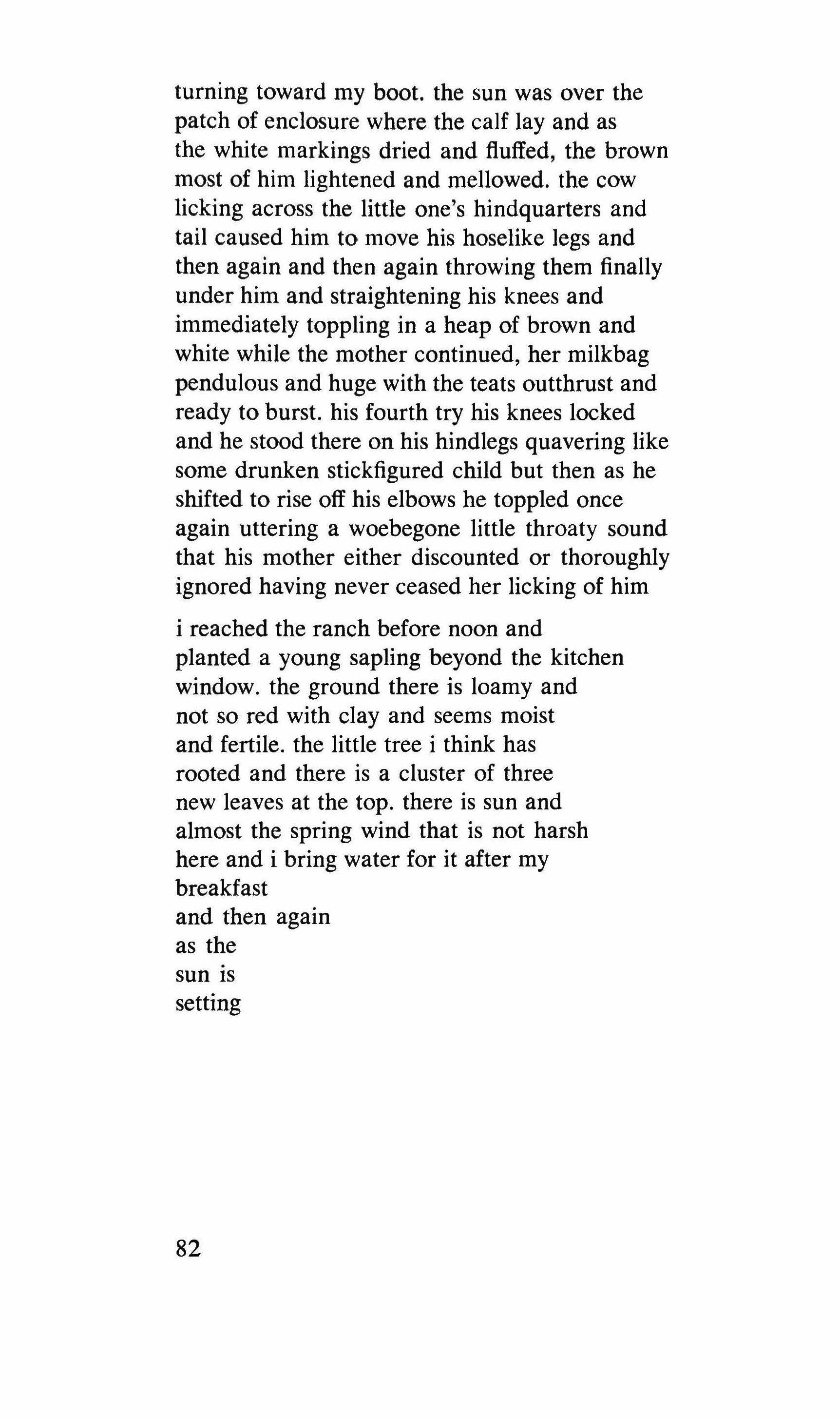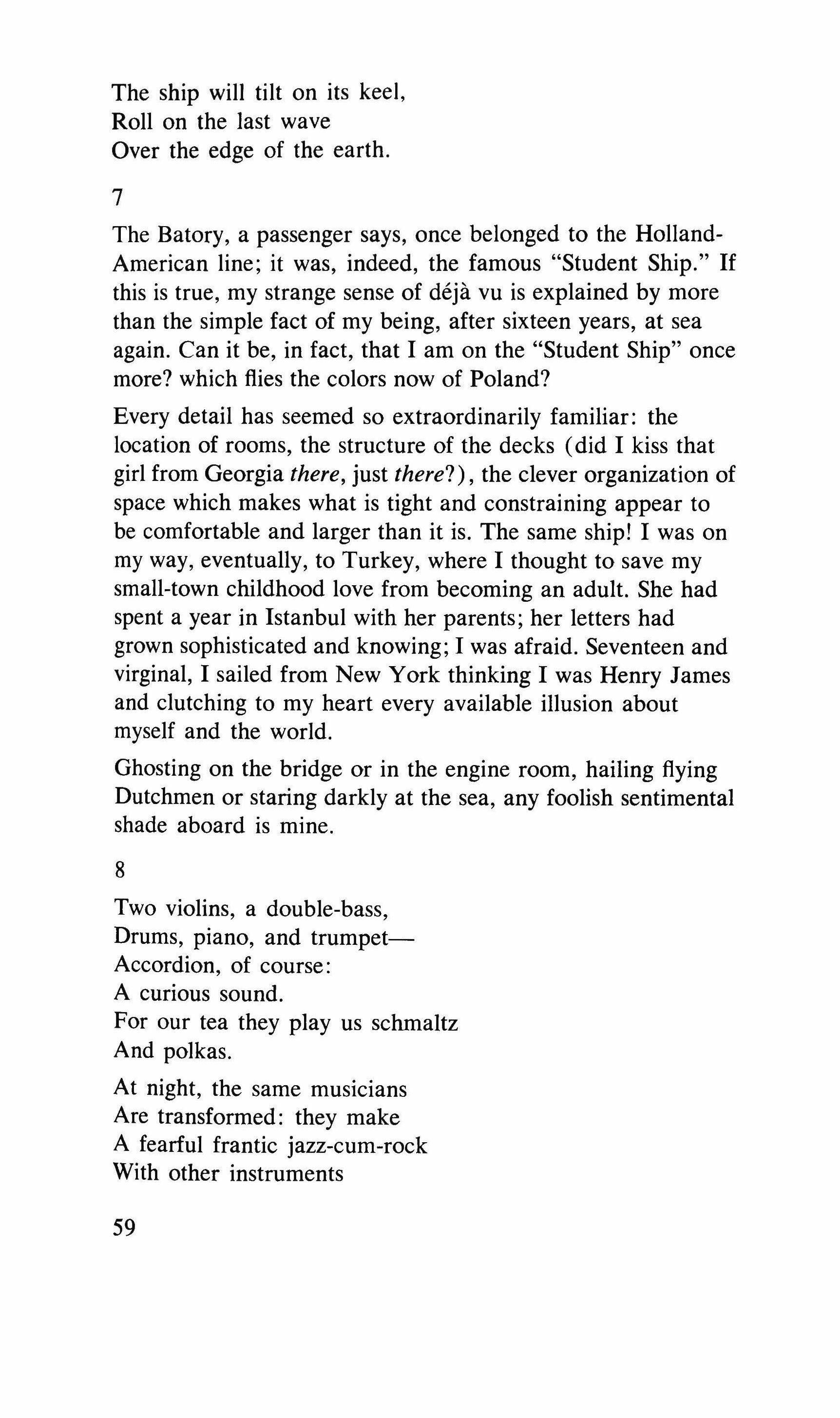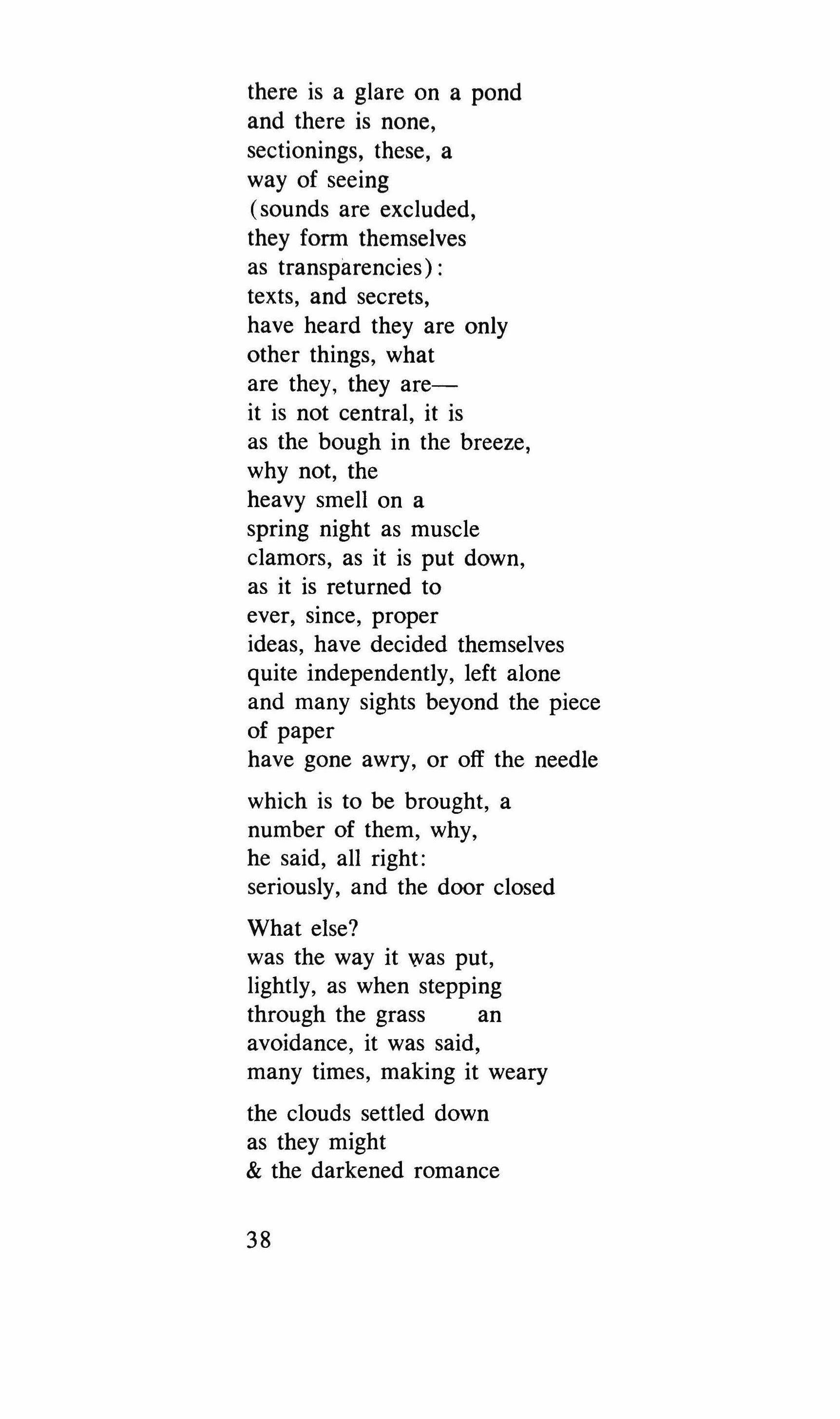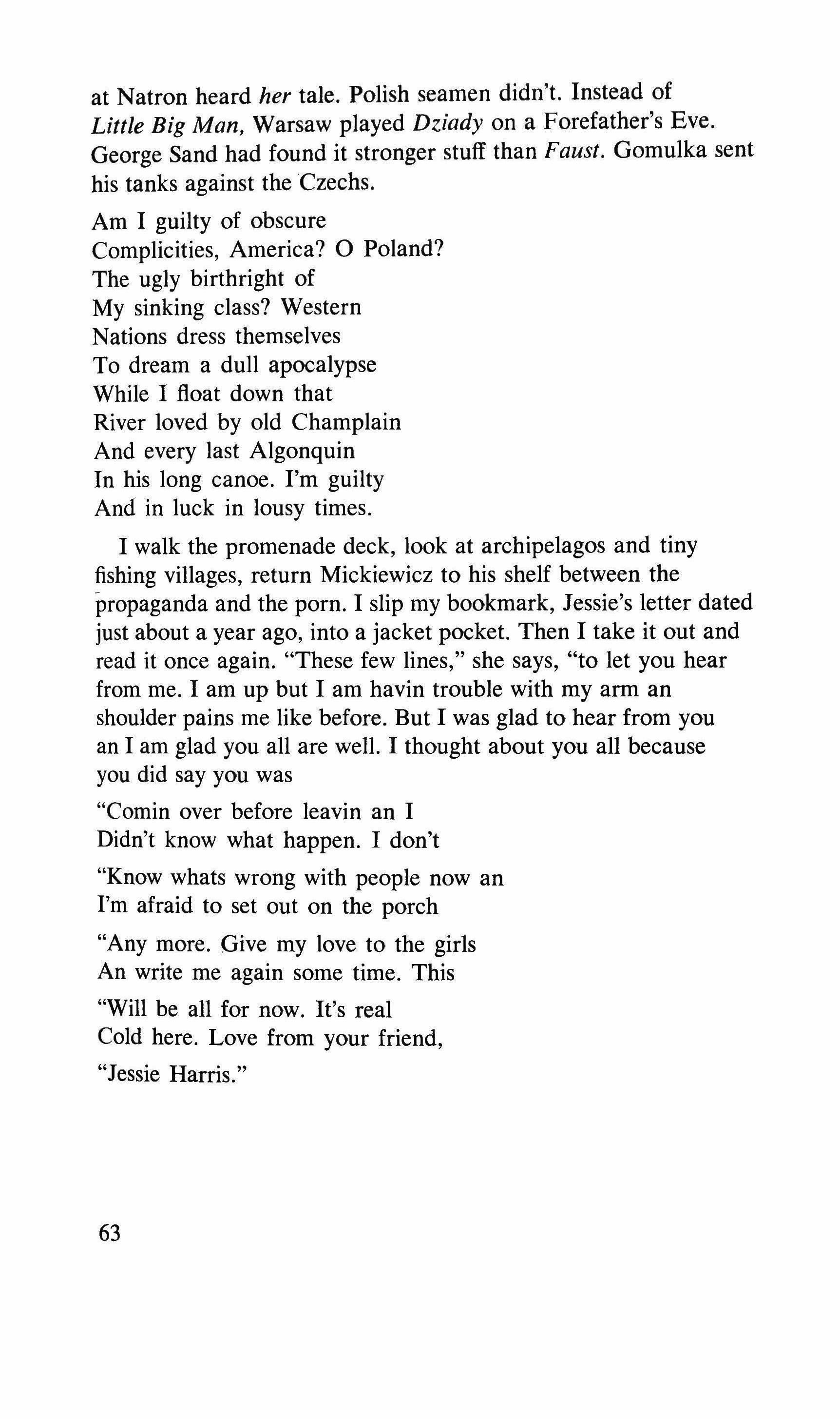 KENNETH KOCH published two books last year: The Art of Love (poems) and The Red Robins (a novel). He lives in New York. ROBERT HAHN lives in Great Barrington, Massachusetts. His poems appear regularly in literary magazines. JOHN JACOB contributes frequently to Margins. He edits Majo Navigatore and directs Cats Pajamas Press. JAMES McMICHAEL's new book, The Lovers Familiar, has just been published by Godine. With his poem in this issue, PETER MICHELSON extends the Plainsong sequence from his book, The Eater (Swallow). WILLIAM JOYCE lives in Charlotte, North Carolina, where he writes fiction as well as poetry. ROBERT DANA is teaching in Florida this year and finishing his American Elegies. MICHAEL PATRICK O'CONNOR has published poems in a number of literary magazines and has been an editor of Prism International. JOHN MATTHIAS' new book, Turns, was recently published in England (Anvil), and in America (Swallow). "School Pieces" is the title poem of NATALIE ROBINS' fourth collection of poems. DAVID WAGONER's recent books include Sleeping in the Woods (poems) and The Road to Many a Wonder (a novel).