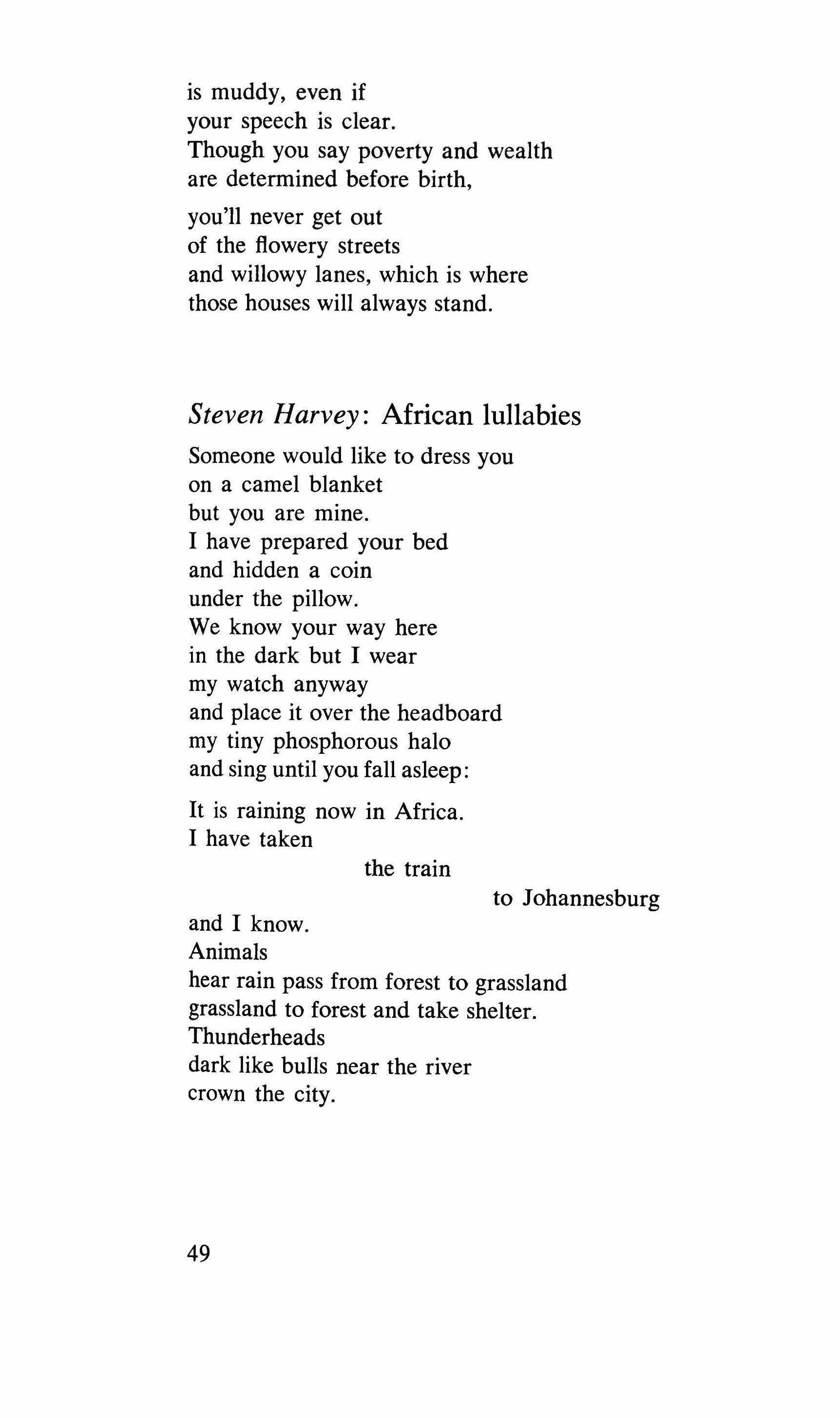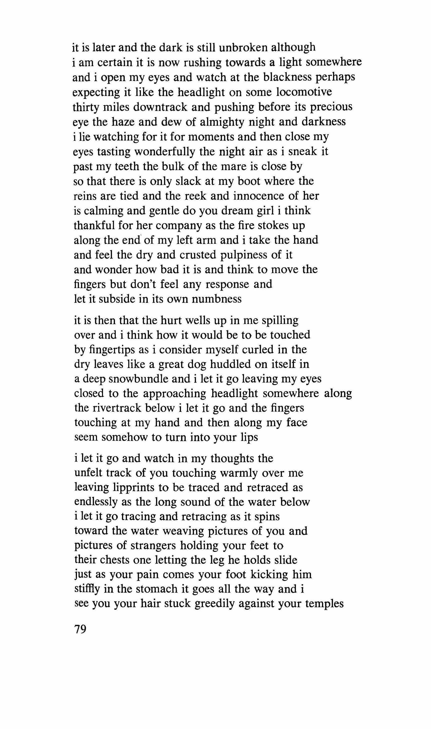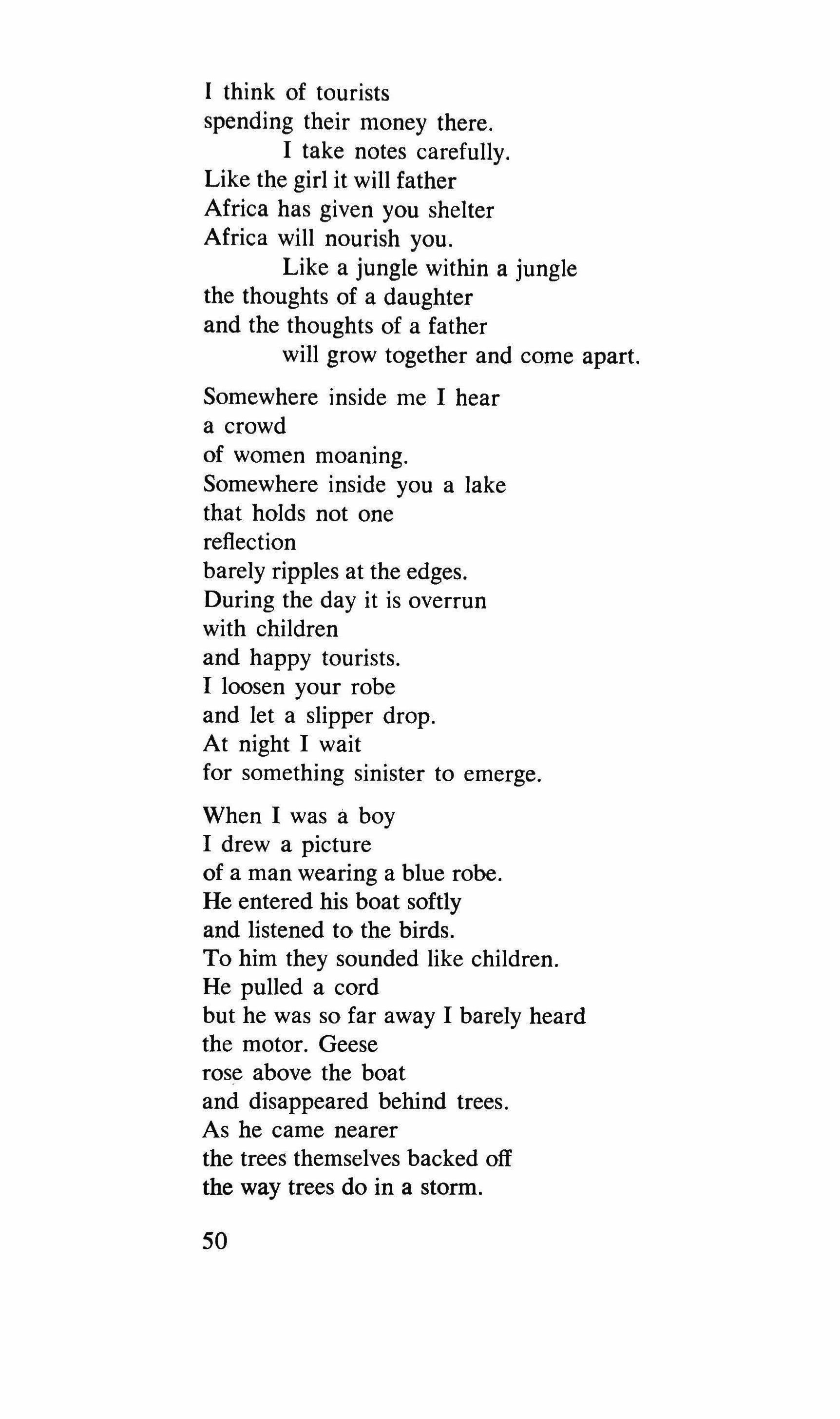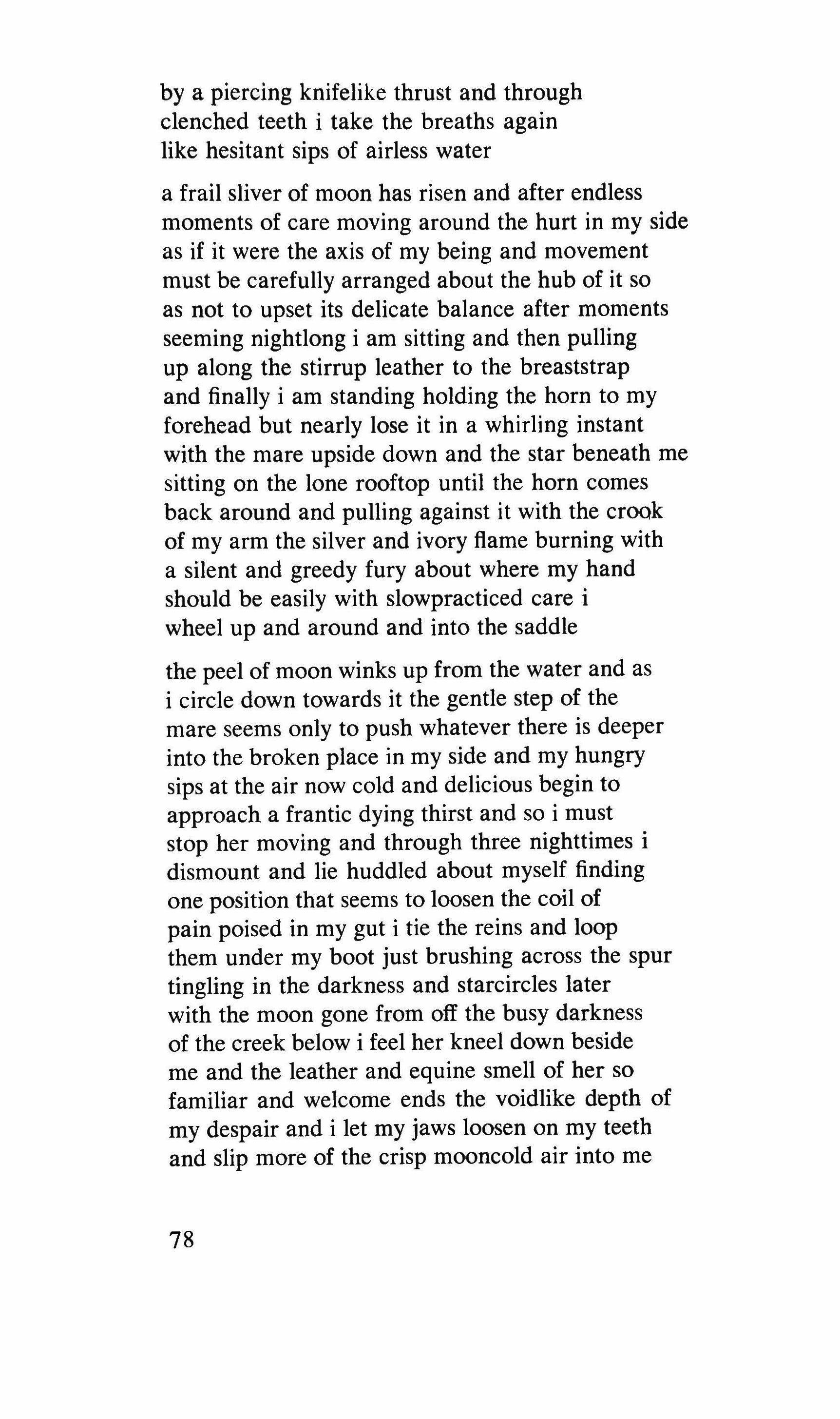 Moored to your blood, the hollow left by your sleep, now breathes for you(the wind flows between the last stars rooster scraps sputter in the paddockbefore the roads begin to swell -like the veins of your wrists.