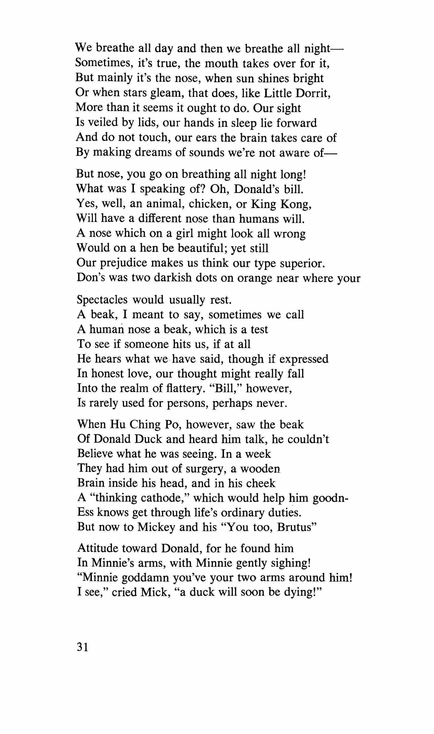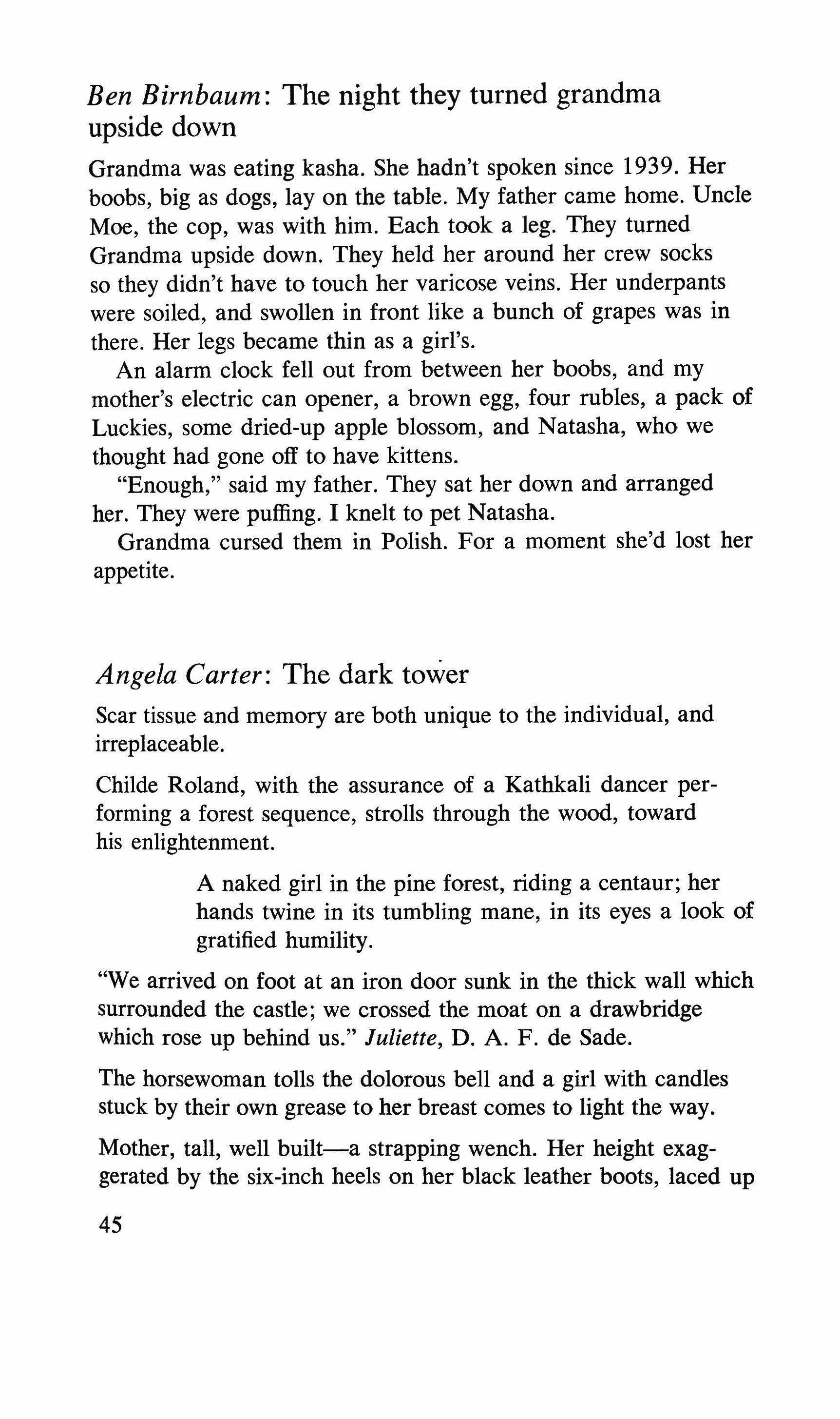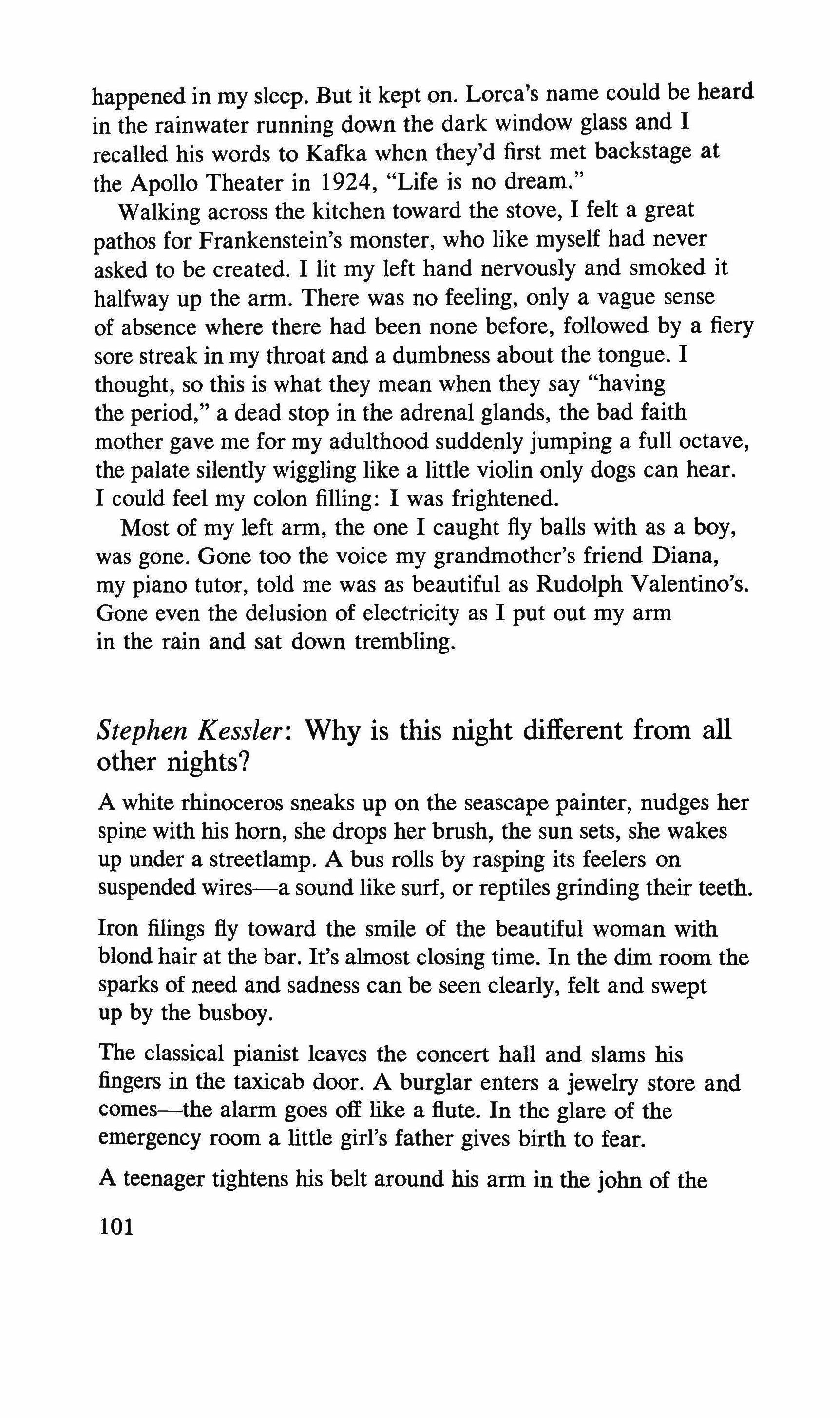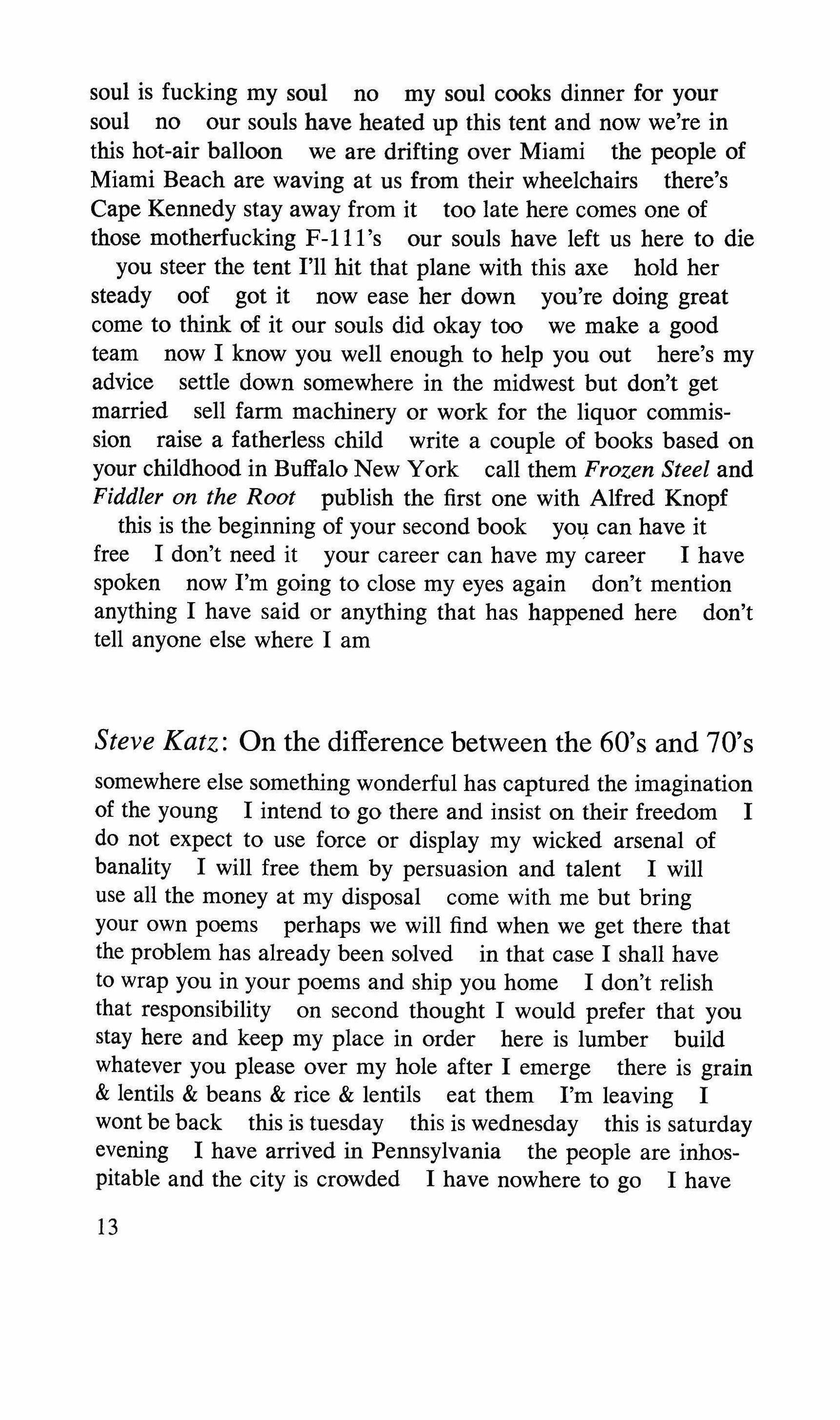 MICHAEL BENEDIKT is poetry editor for The Paris Review. His work in this issue is from his forthcoming collection of prose poems. CHARLES BOER's memoir, Charles Olson in Connecticut, was recently published by Swallow. His poems in this issue are from a new book on J. P. Morgan. MICHAEL ANANIA has a new collection of poems, Riversongs, and is a frequent contributor to these pages. STEVEN HARVEY and JOSEPH HENRY are young poets.