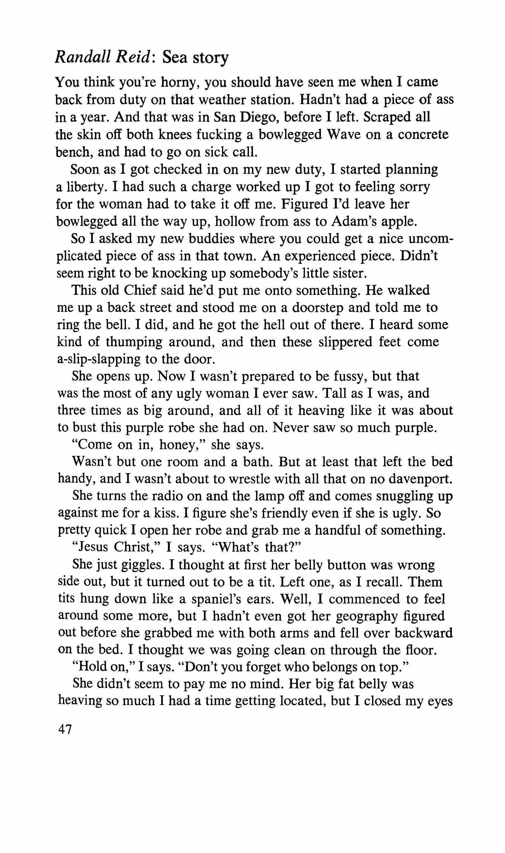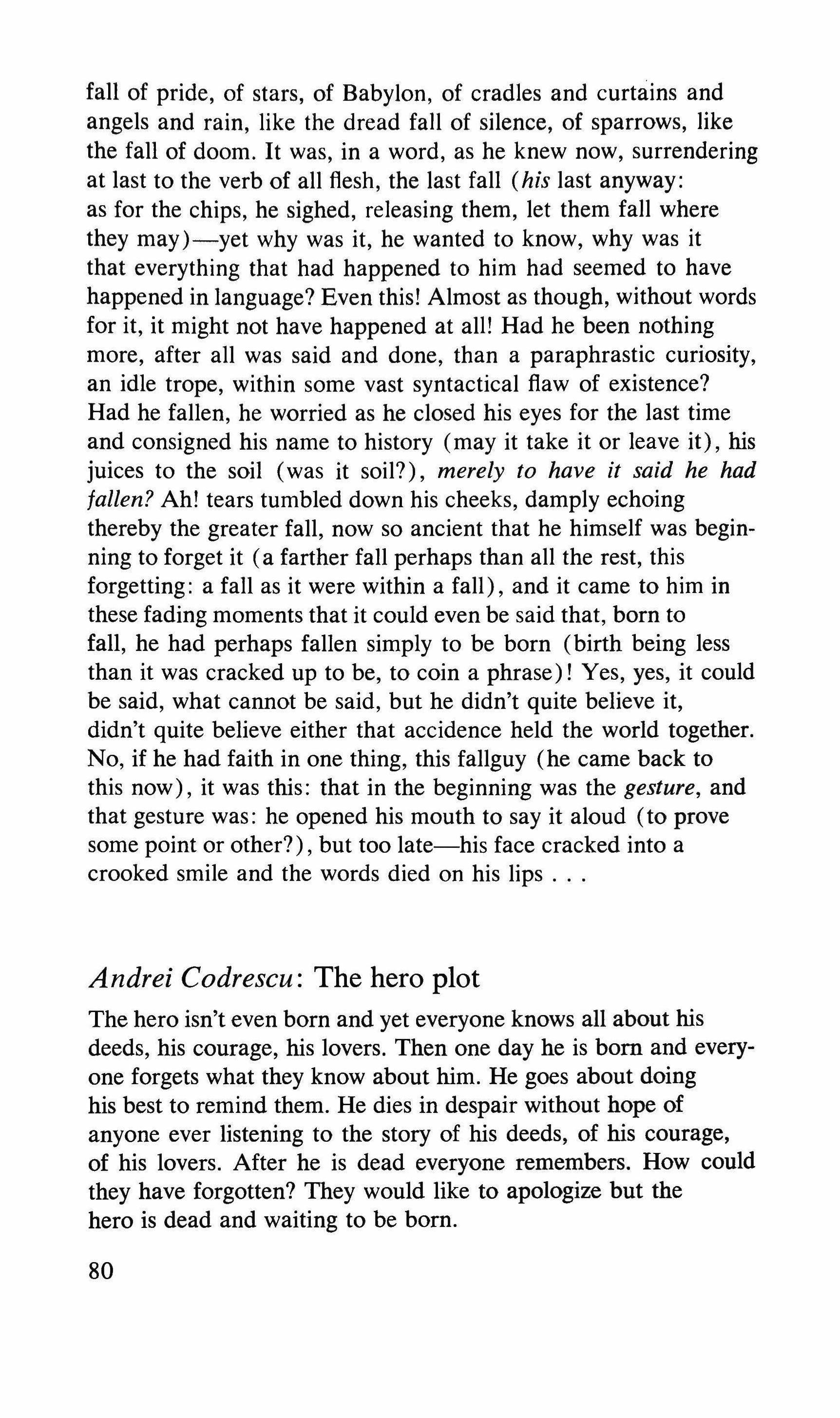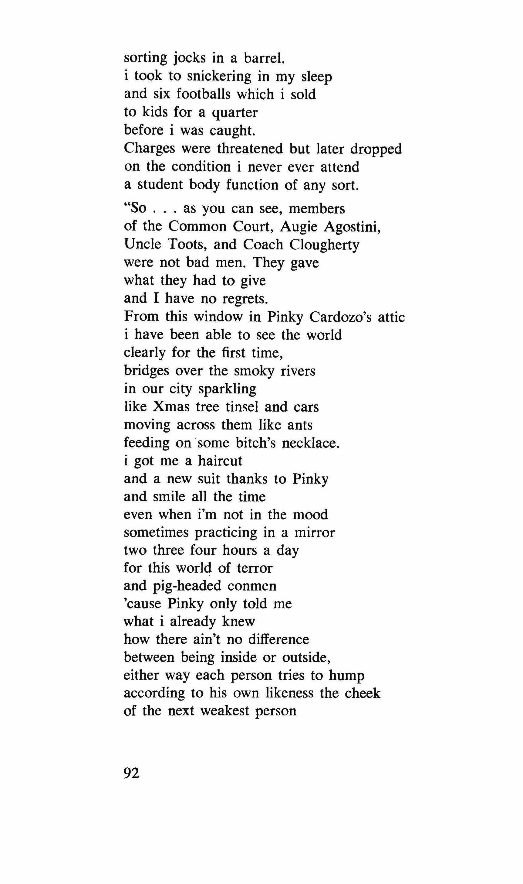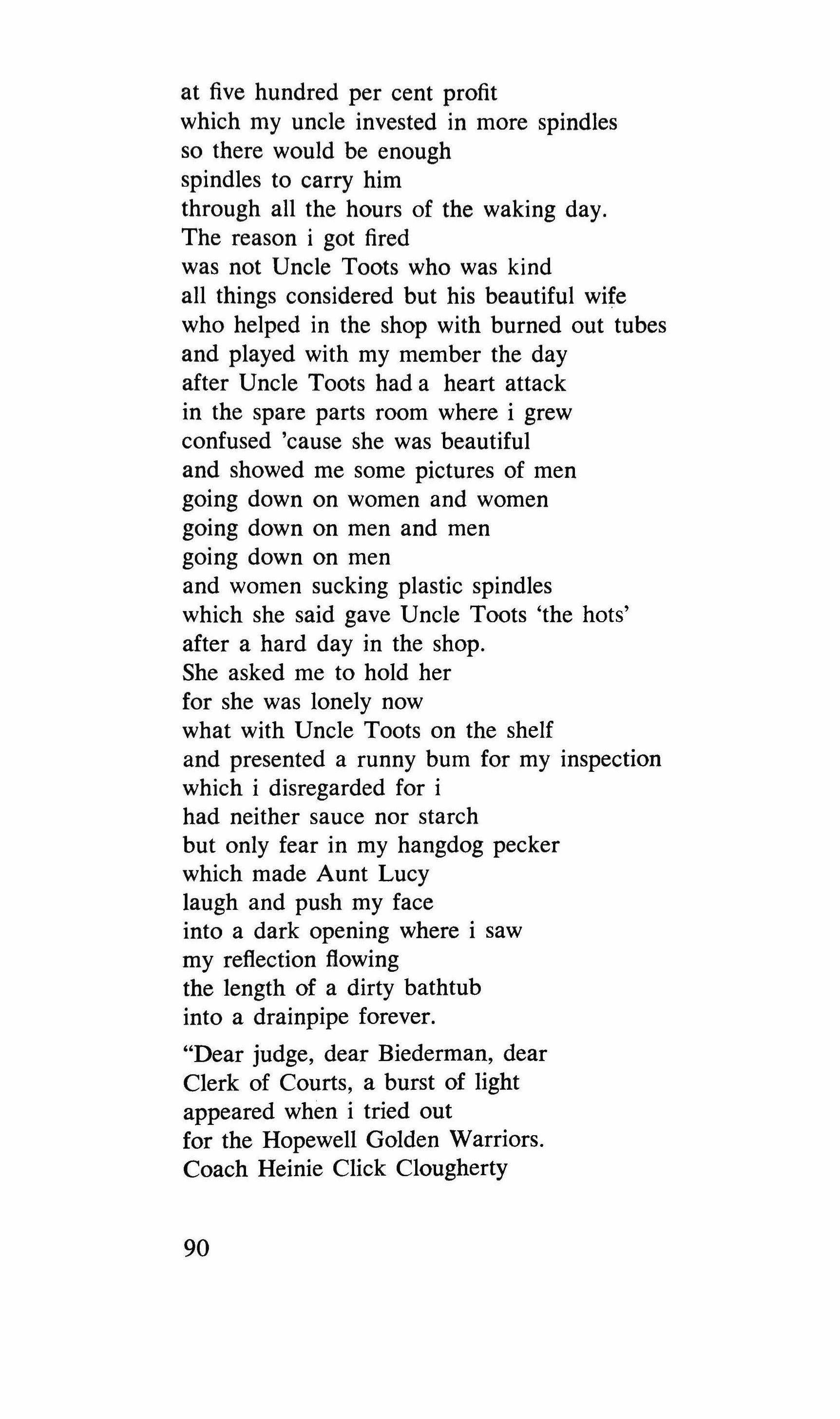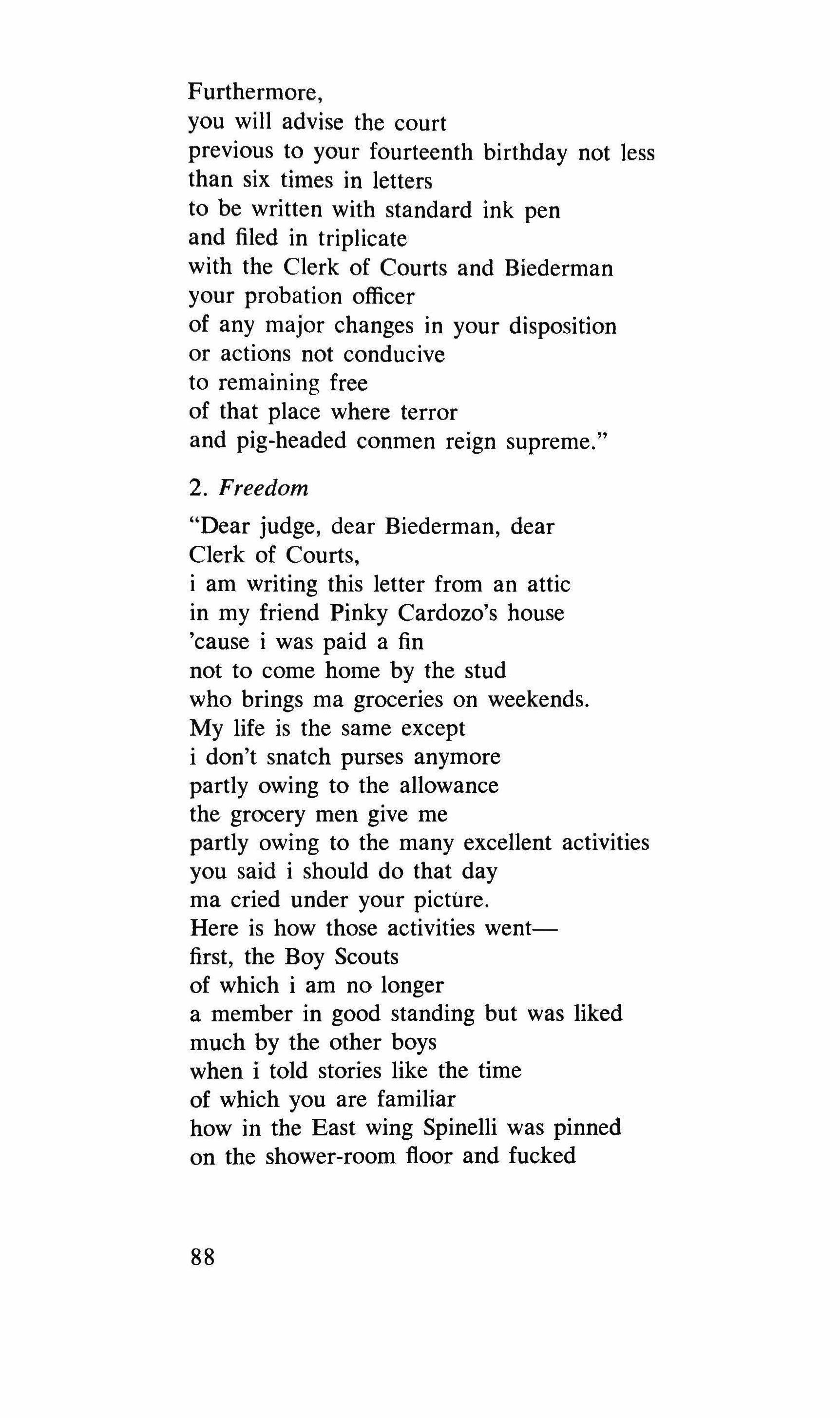 MICHAEL BENEDIKT is poetry editor for The Paris Review. His work in this issue is from his forthcoming collection of prose poems. CHARLES BOER's memoir, Charles Olson in Connecticut, was recently published by Swallow. His poems in this issue are from a new book on J. P. Morgan. MICHAEL ANANIA has a new collection of poems, Riversongs, and is a frequent contributor to these pages. STEVEN HARVEY and JOSEPH HENRY are young poets.