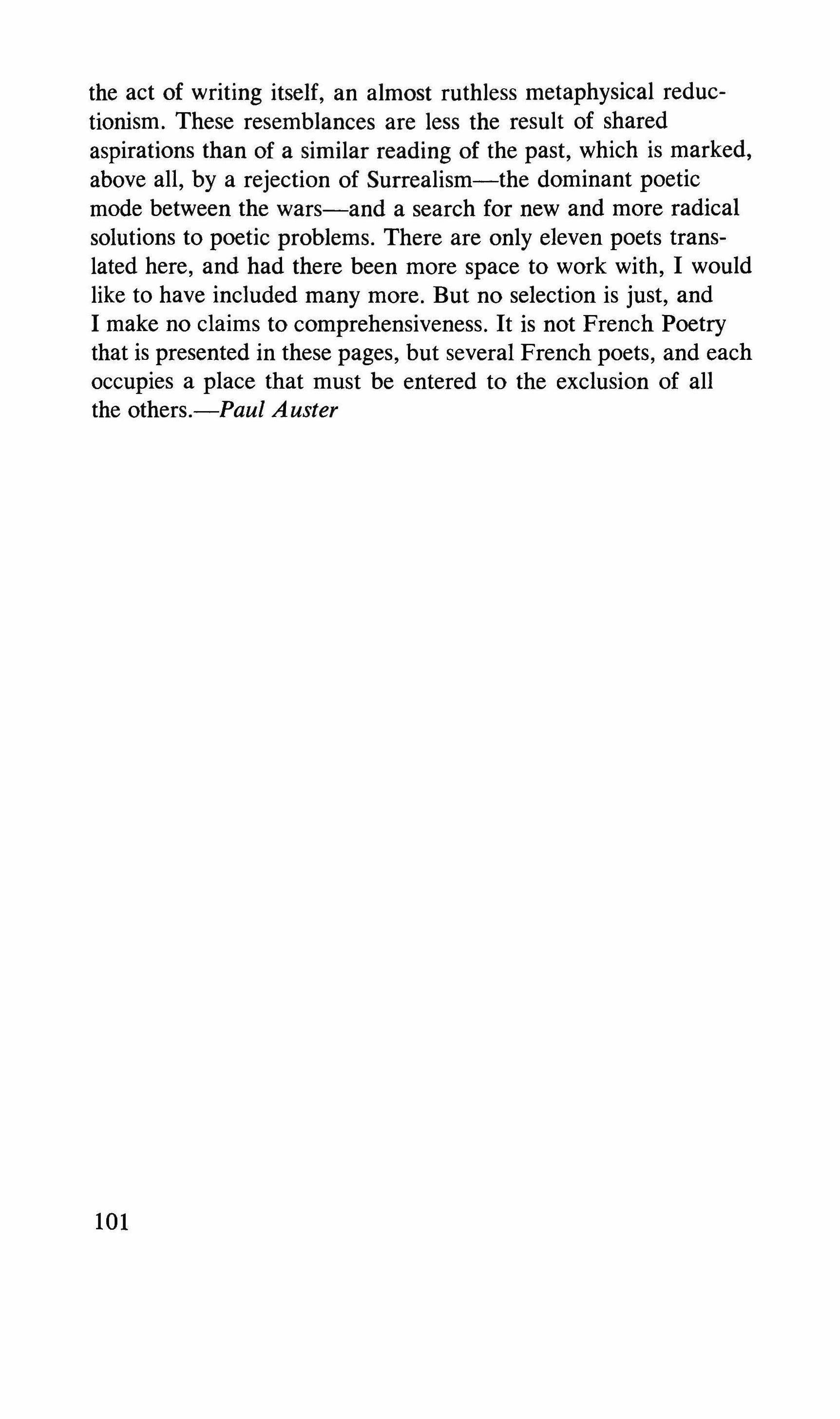 French: Paul Auster • Yves Bonnefoy Andre du Bouchet • Jacques Dupin Philippe Jaccottet