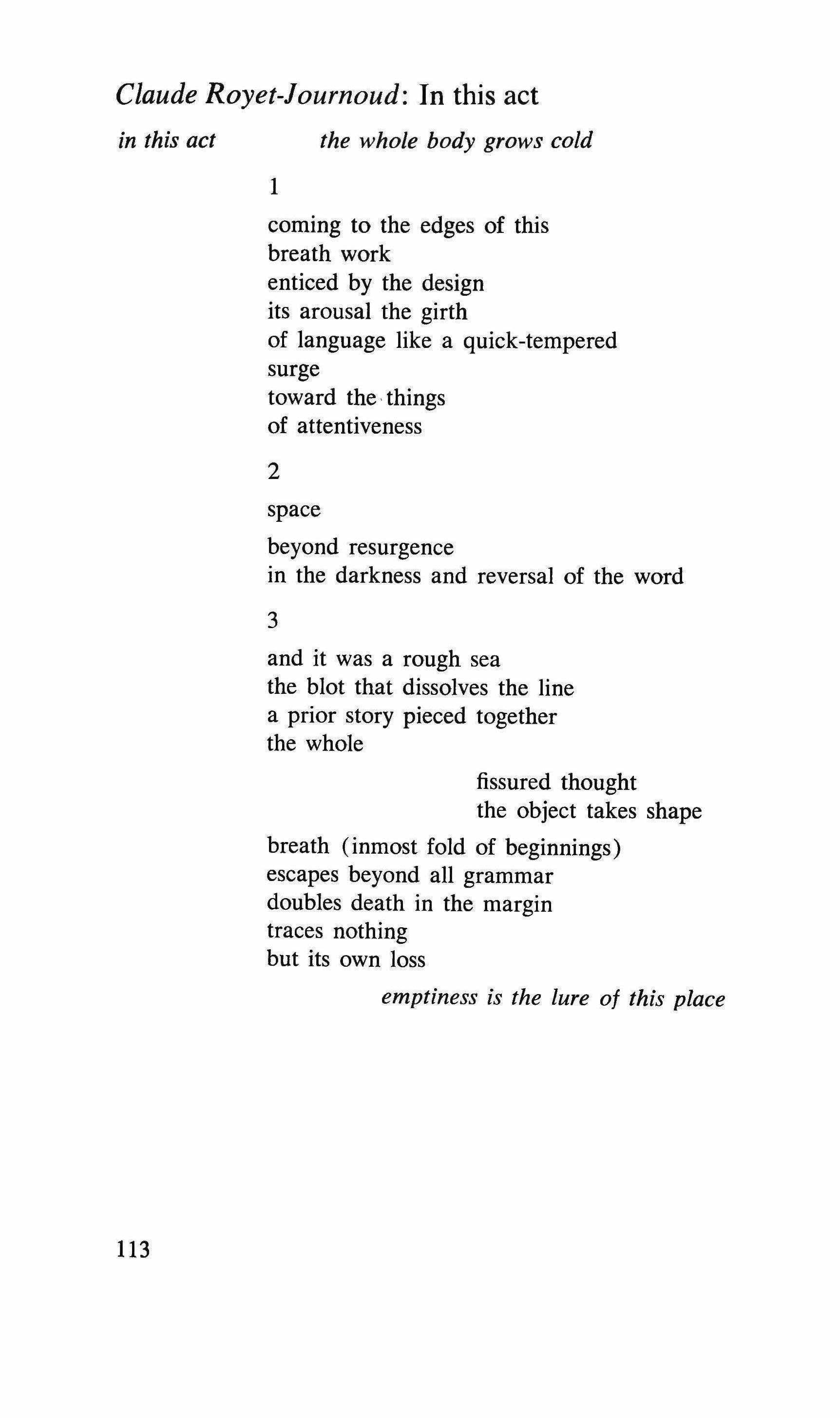 breath (inmost fold of beginnings) escapes beyond all grammar doubles death in the margin traces nothing but its own loss