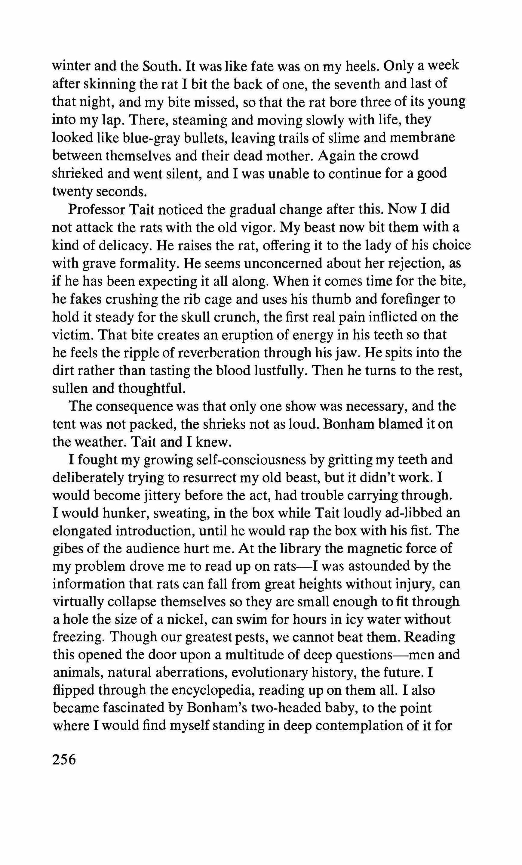 tumbling gray bodies and stamp on as many spines as possible before the frantic pack scattered to new cover. At first the small bodies jerking beneath her feet disgusted the queen, but after several sorties her squeamishness passed and she became far more proficient in the sport than Roscelin. She began to take pride in her hits and developed a peculiar balletic finesse in what they called her ratdancing. In the end she scorned any weapon but her toes and killed only by stepping on the tiny heads. On her best days Roscelin stood aside in wonder as she skipped across the scampering hoards to the accompaniment of minute skulls popping like holiday squibs.