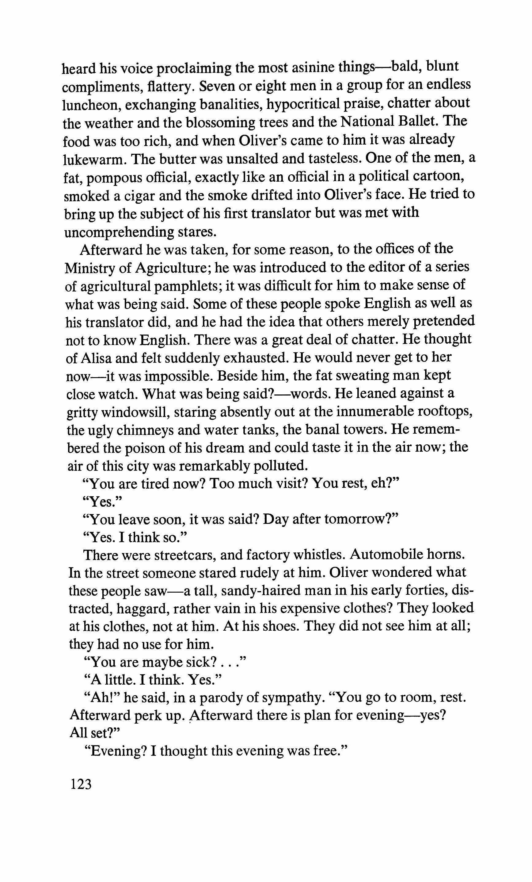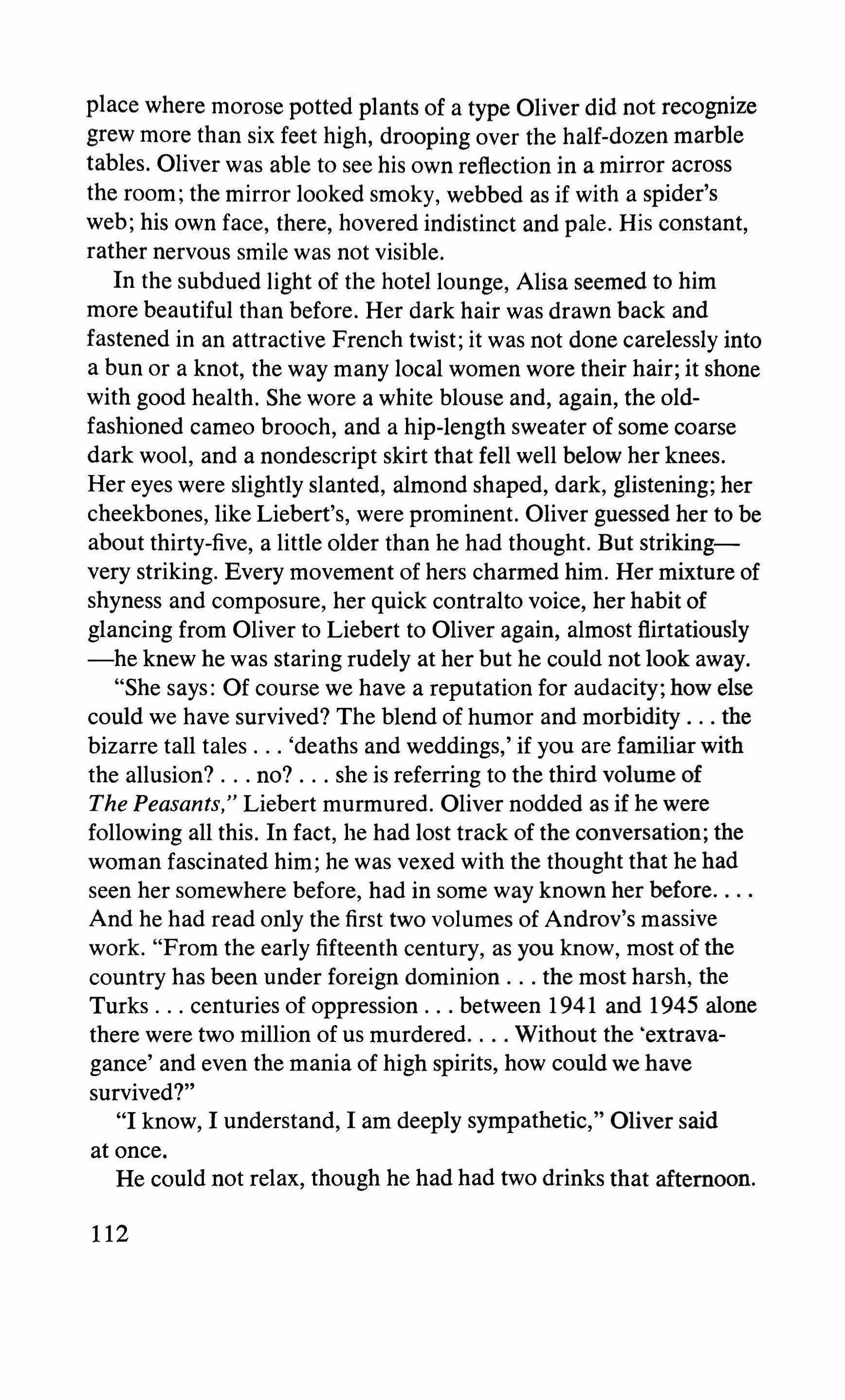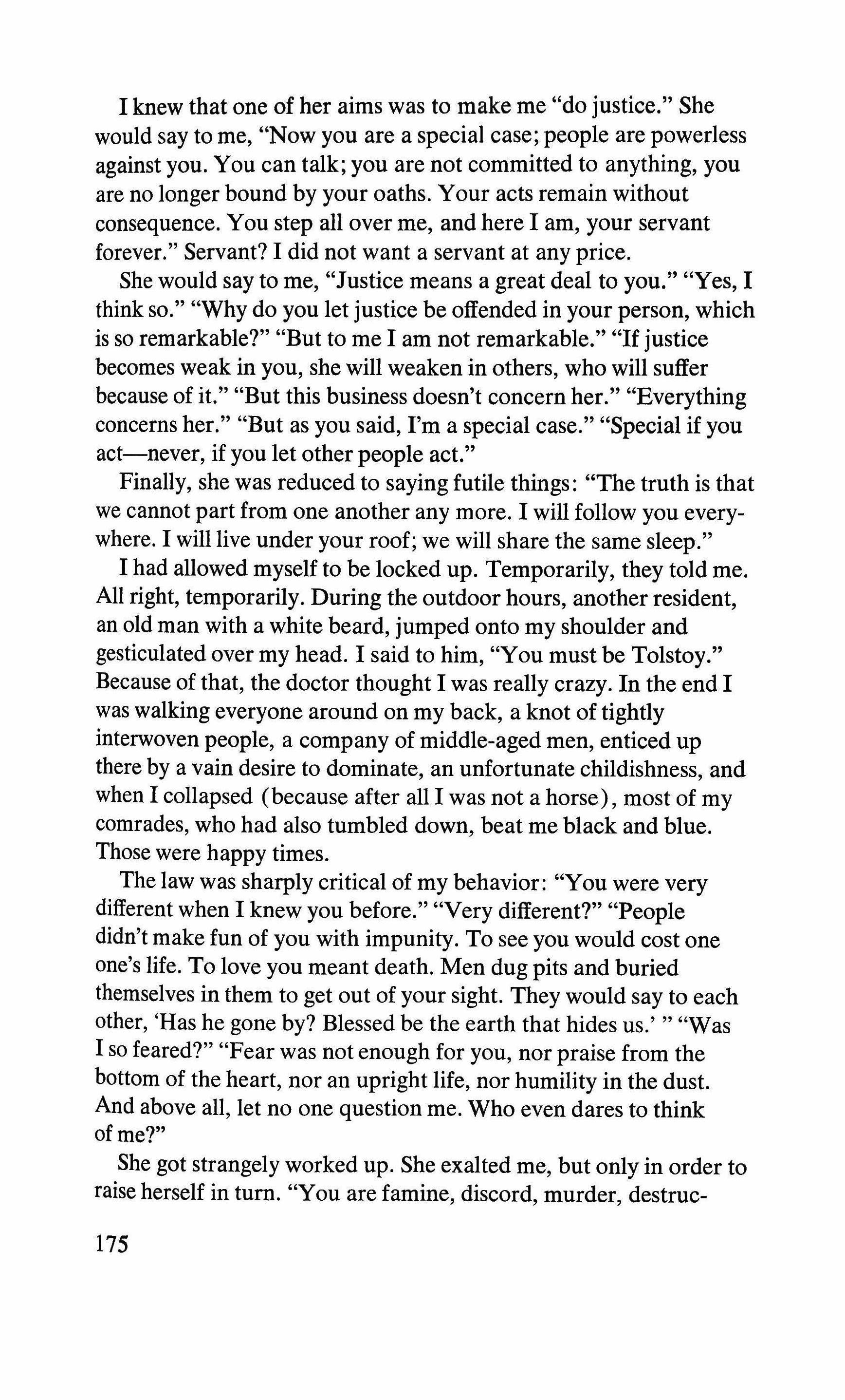 imagination. She memorized the illuminations and the historiated capitals. She scanned again and again the lines of calligraphy as if to compensate for her lack of learning with visual familiarity. When, at the end of a week, a petition arrived from a Latinist in the town who offered instruction in return for a small pension, she sent for him directly.