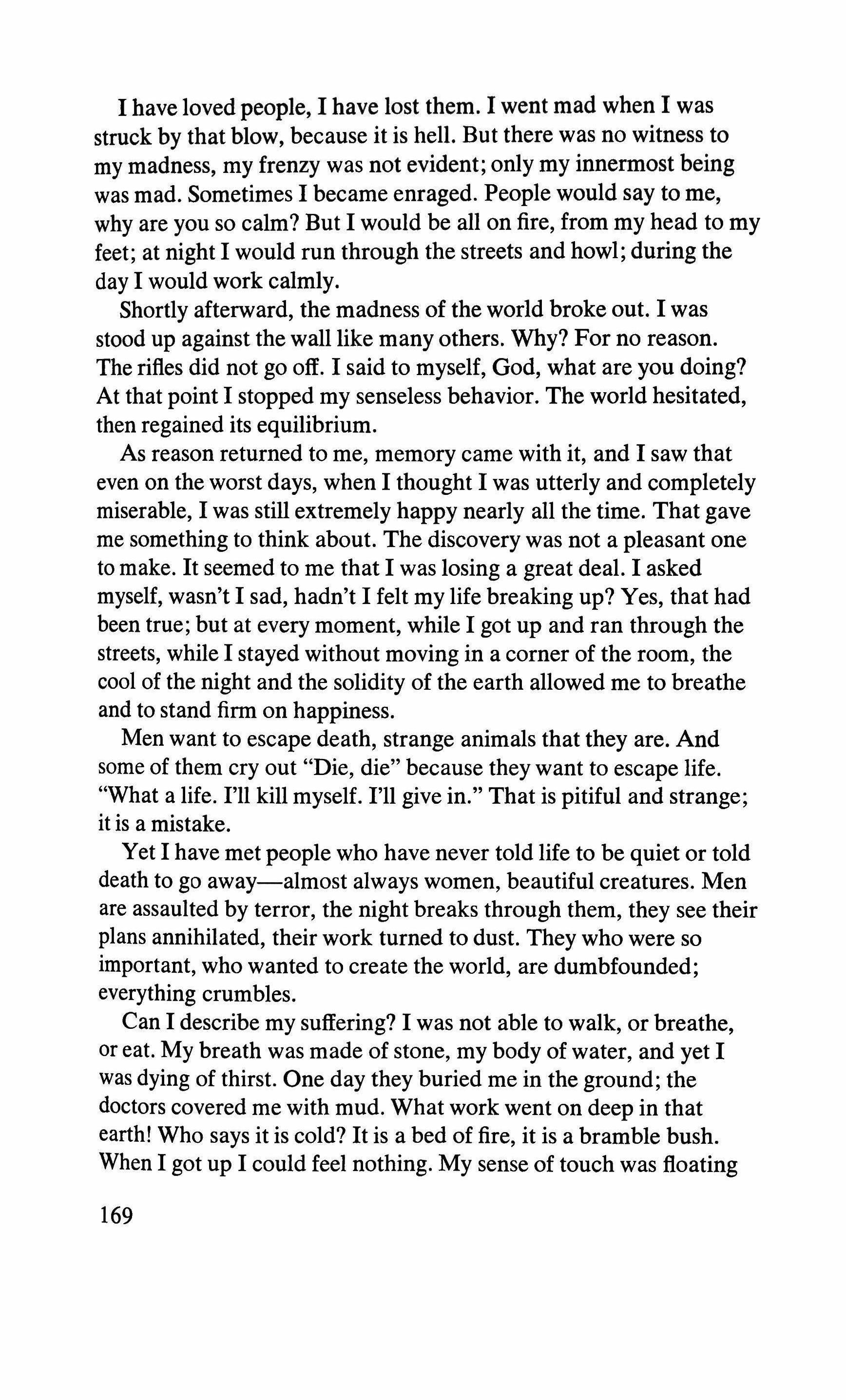 "Don't," I said and we froze and stared at one another like hatred. I was not even seeing his face, only his hatred. But it wasn't hatred and I lowered the rifle, saying real quick, drawing back my bolt, "Grab their rifles and pound the shit out of them. This'll wake 'em up." But I had already let loose, spraying rapid fire around their feet, the rounds making little dead pockmarks in the soft embankment and the sound poking loud sharp pops in the air while Craze