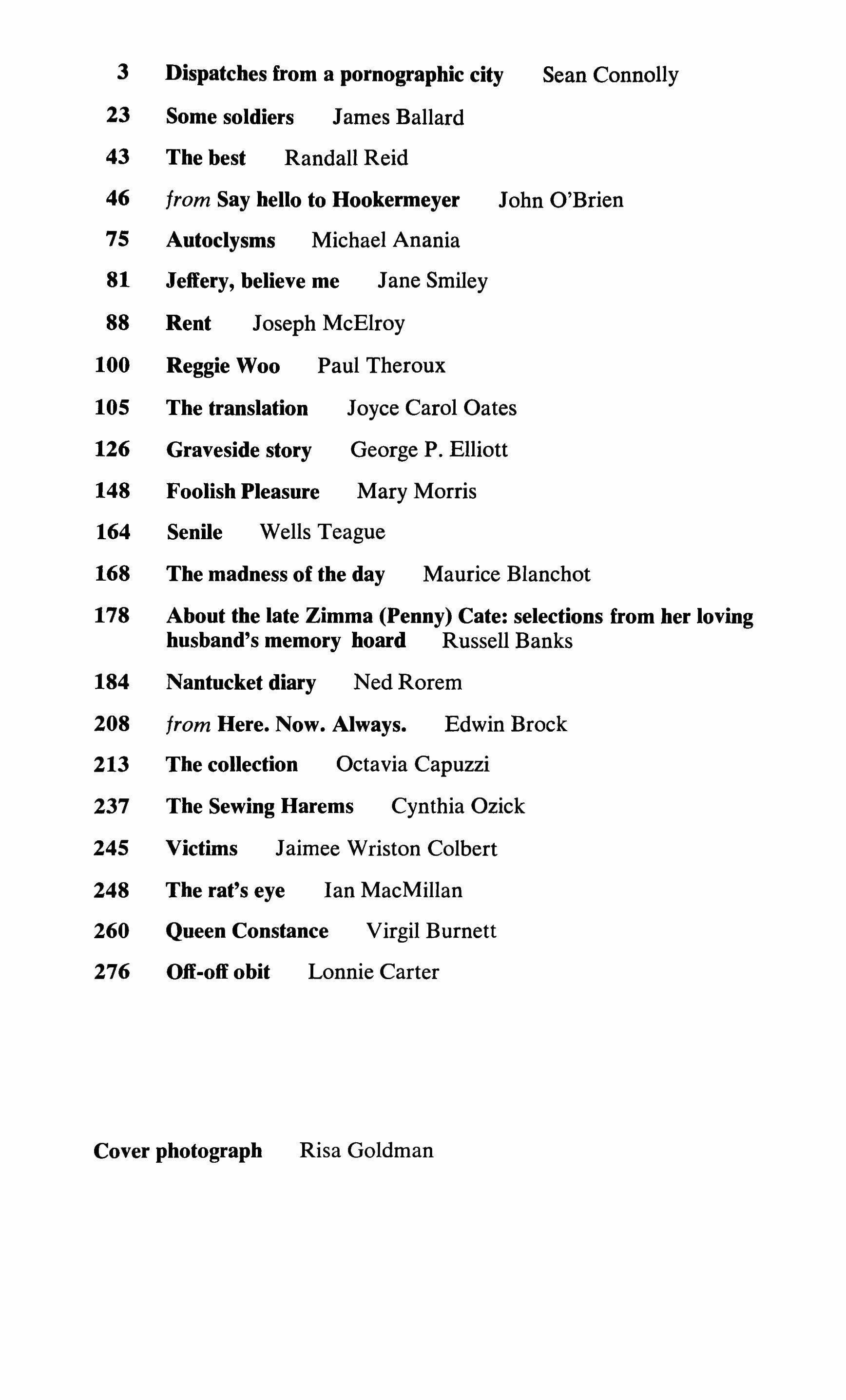 46 from Say hello to Hookermeyer 75 Autoclysms Michael Anania John O'Brien 81 Jeffery, believe me Jane Smiley 88 Rent Joseph McElroy