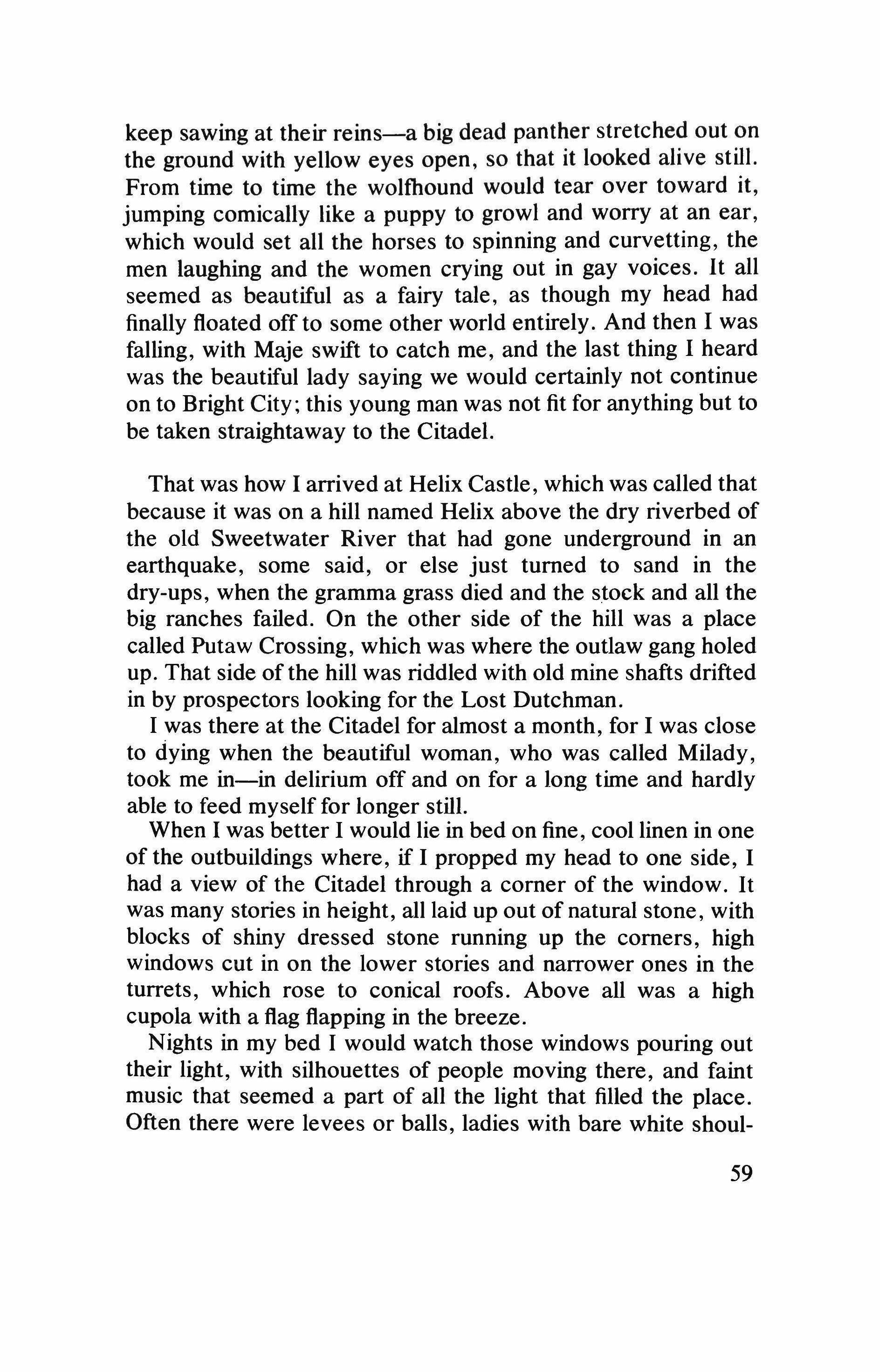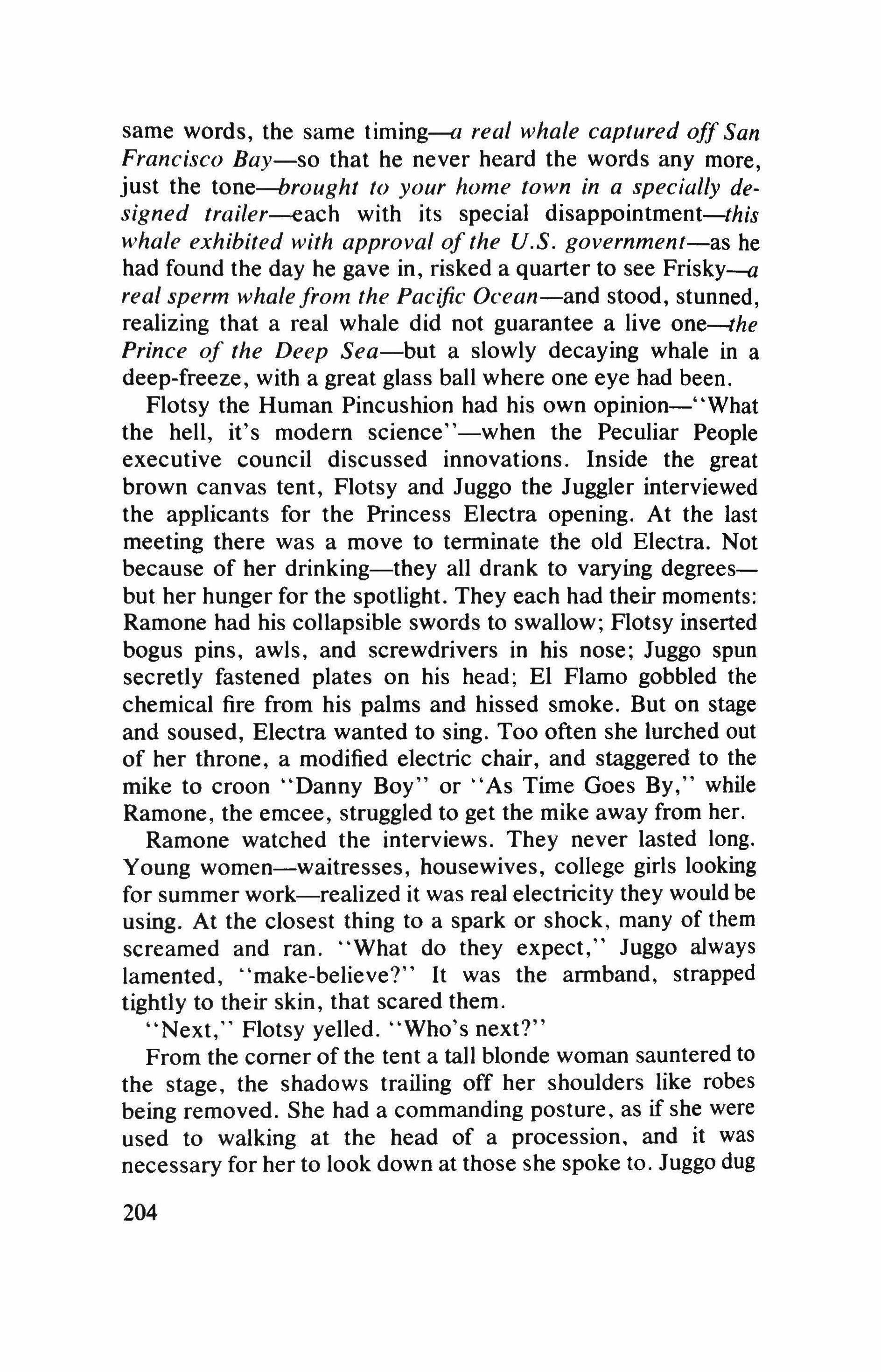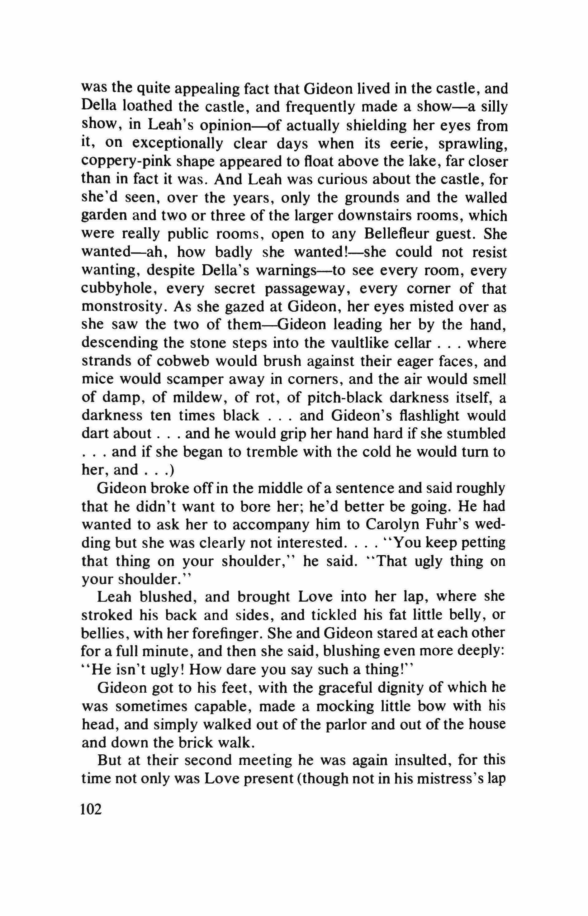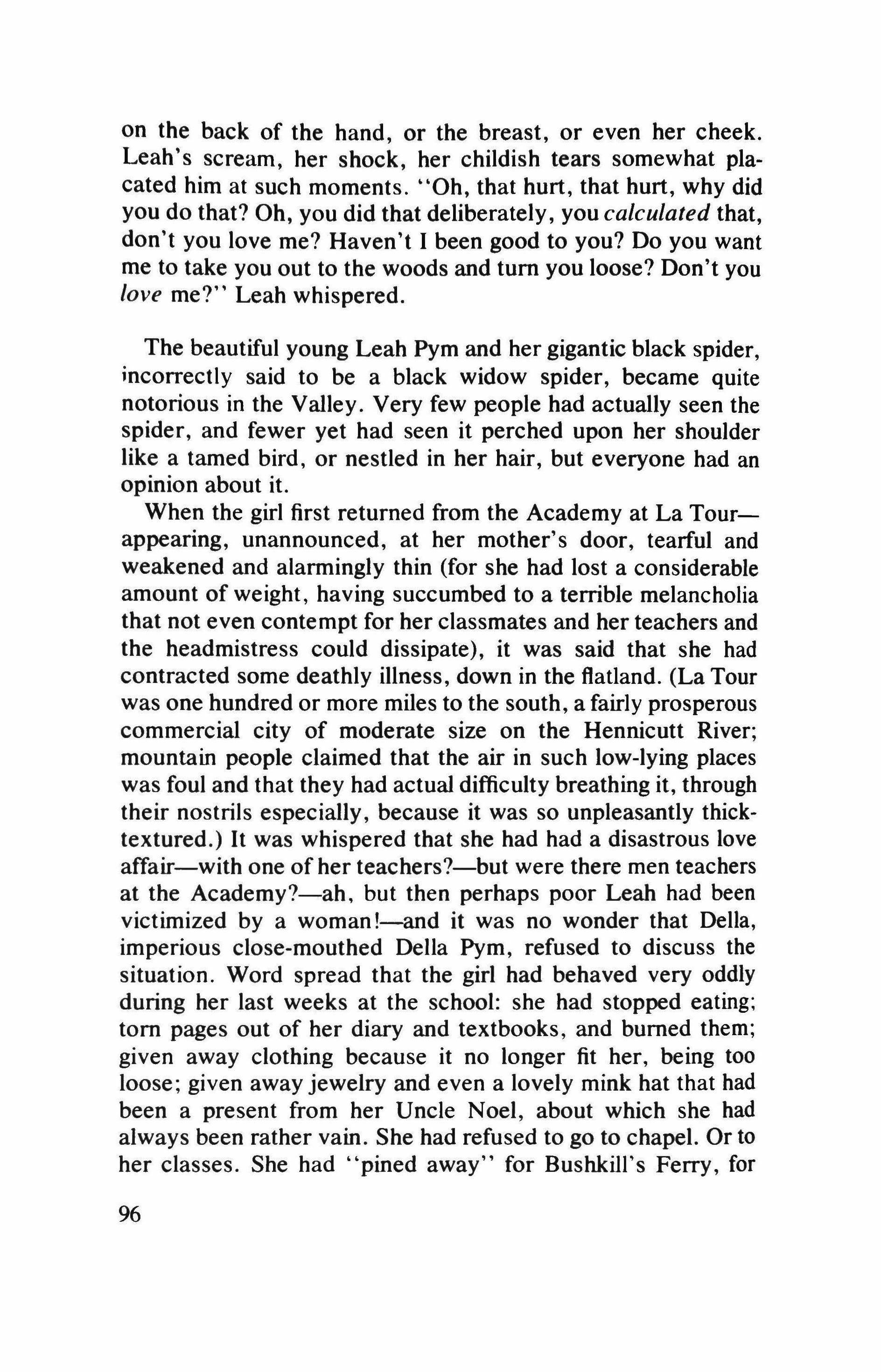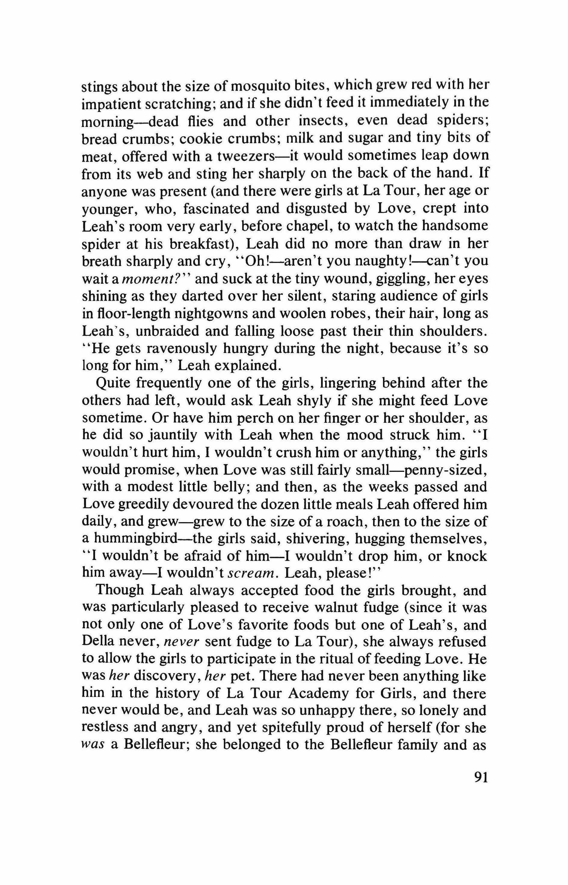 But 1 am thinking of someone who did, who believed in many things 1 did not. She carried a tarot in her purse and slept with the deck of cards beneath her pillow at night. The card that turned up most often in her jejune games of solitaire (for I observed this child's-play over her shoulder) was the Tower, struck by lightning, from which two lovers have been hurled to their doom. "Listen," she once said to me. "if you see a falling star behind the Sacre-Coeur, close your eyes and Whisper, 'Que Dieu nous protege.' But neither of us believed in God. Anyway, 1 never saw a falling star behind the Sacre-Coeur.