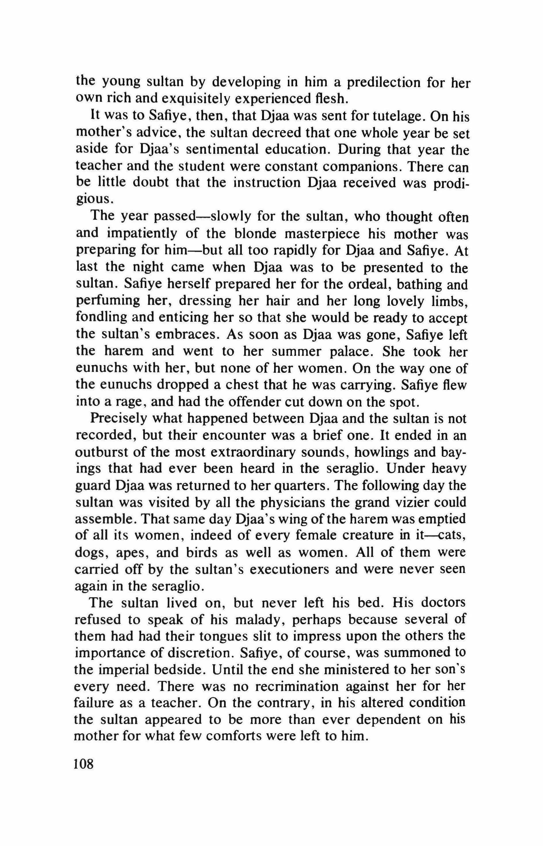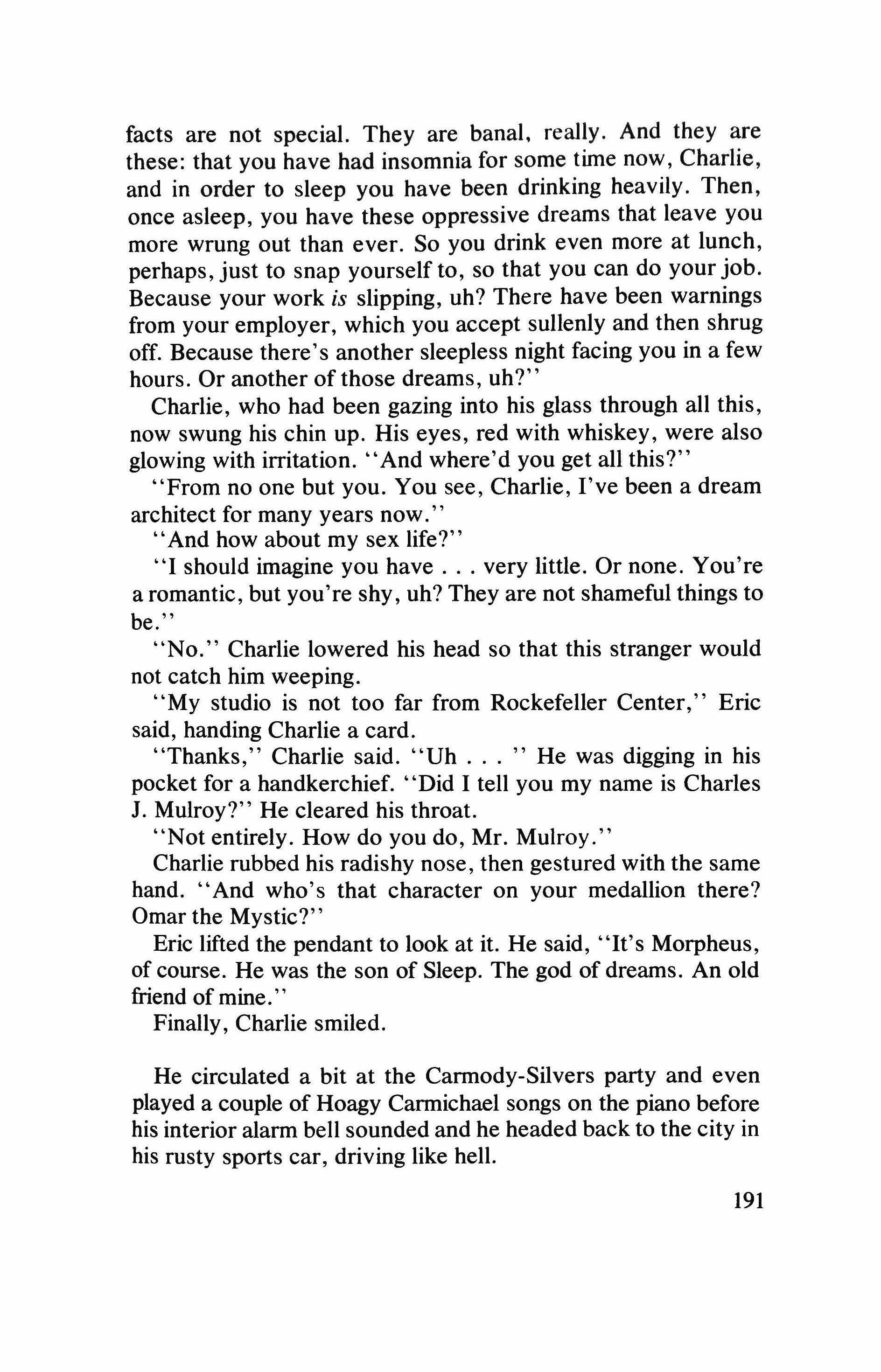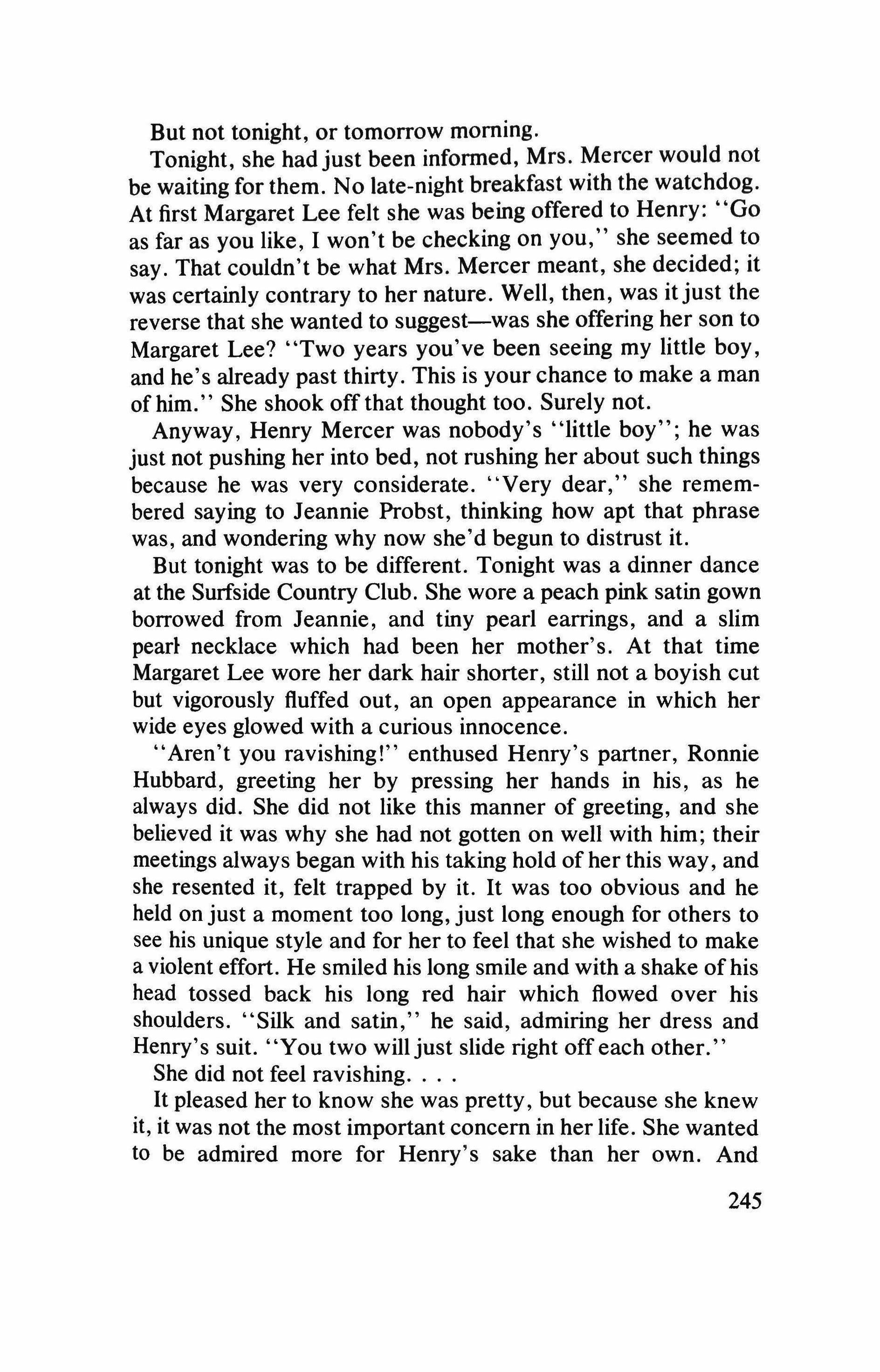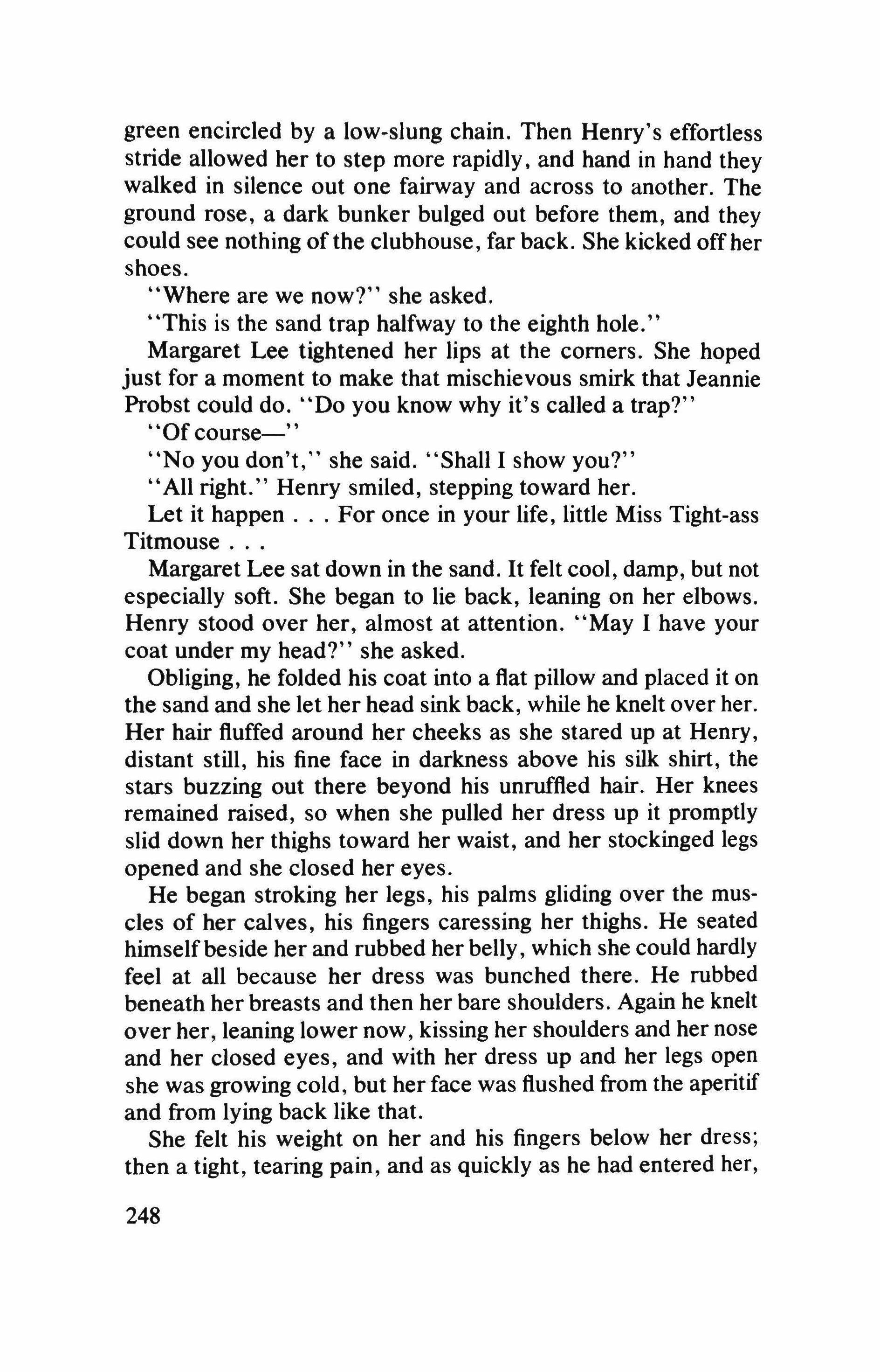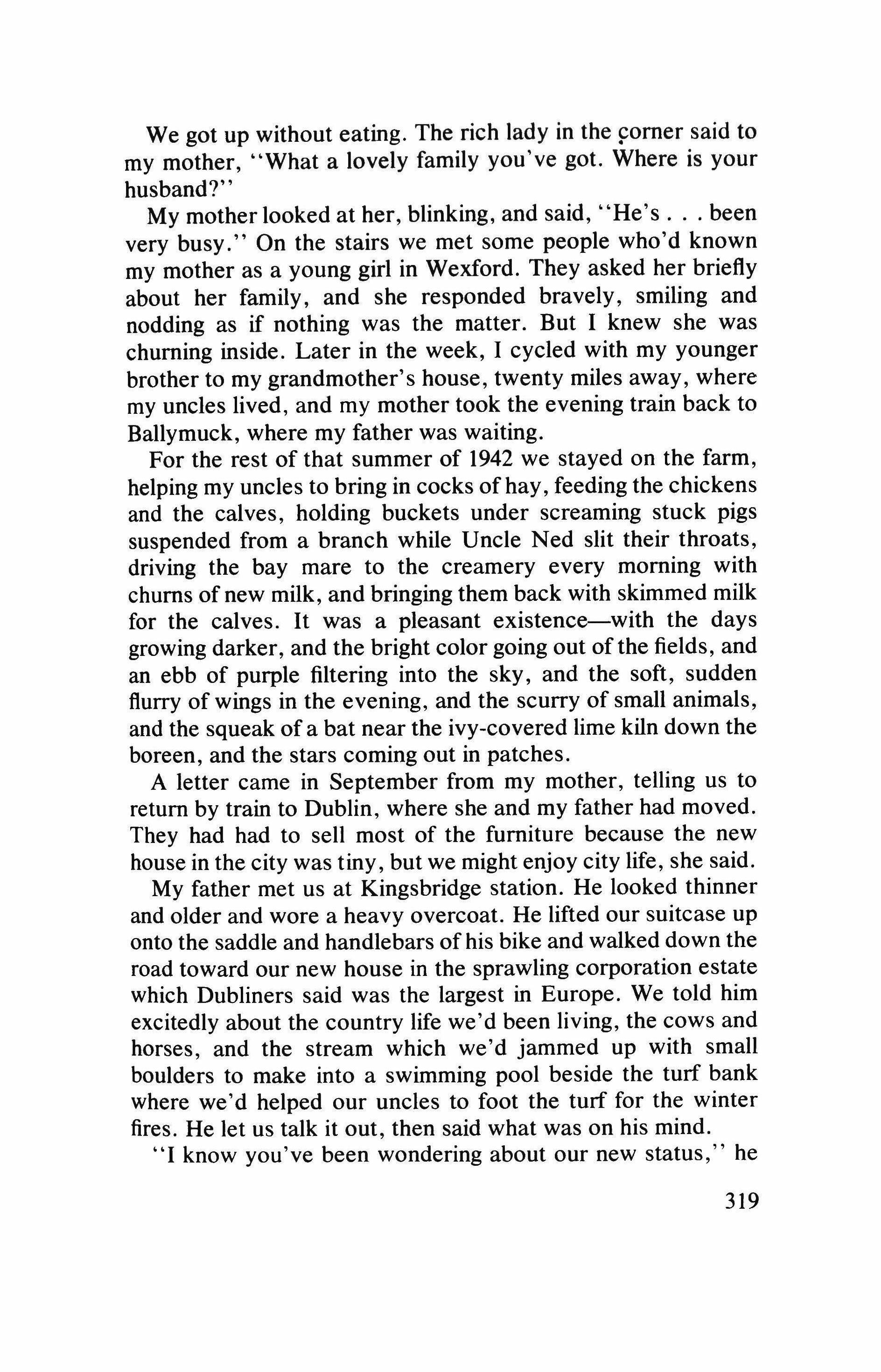 It long ago occurred to me that my little circle in Paris brought no children to the world. We were a barren lot. O'Grady, my editor, was a misogynist and a solitary; Anacreon, the sculptor, impotent in everything but his art. The promiscuous Gabriel cohabited with members of his own sex only. I recall Harry and Irene, who decided to marry as if they had discovered a new perversion. They began an argument on their wedding day (I was Harry's troubled best man) that continued throughout their marriage, yet they never divorced. Irene is, in fact, that same unhappy and childless wife who, through a syndicated newspaper column, offers motherly advice to millions.