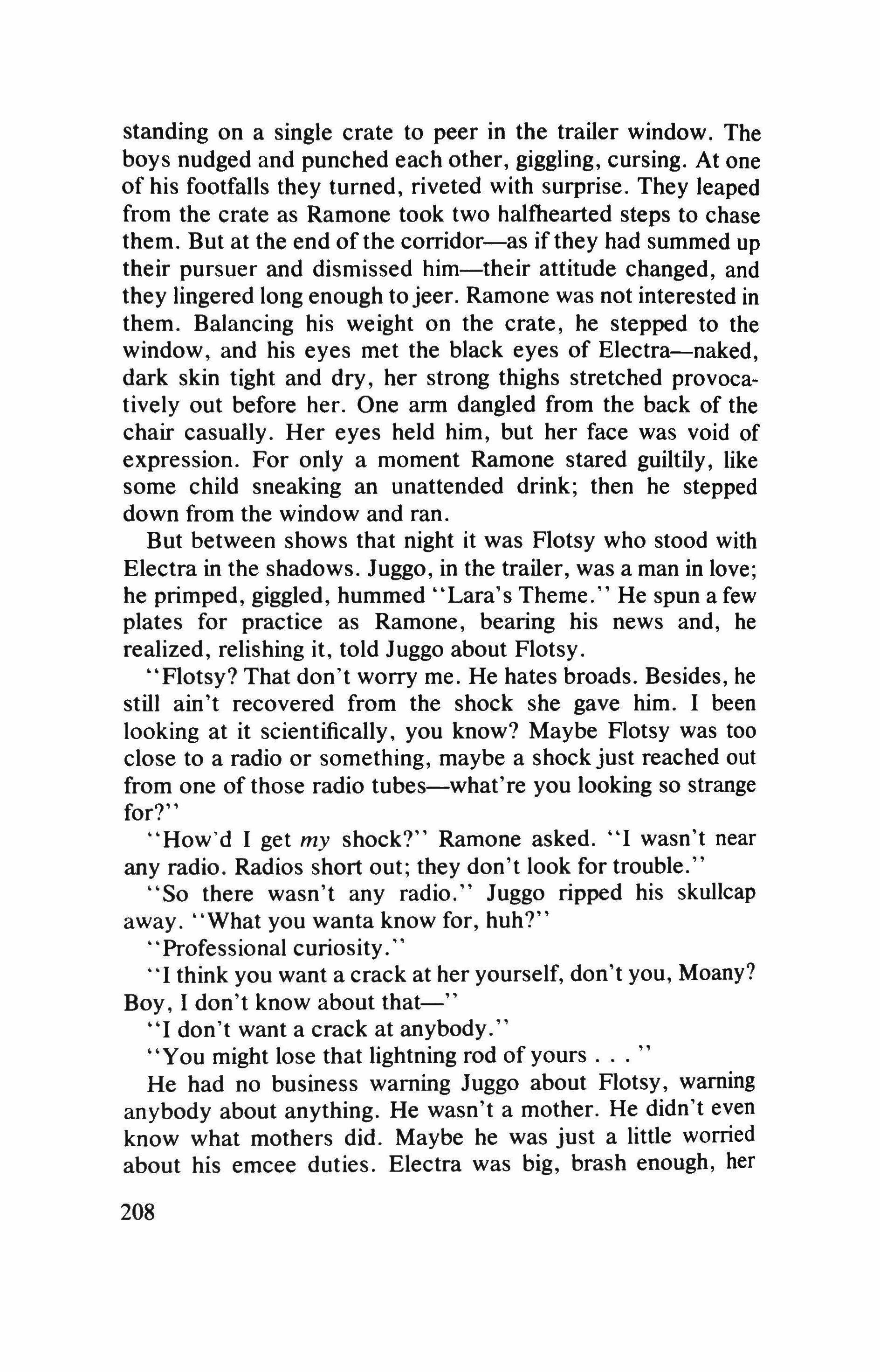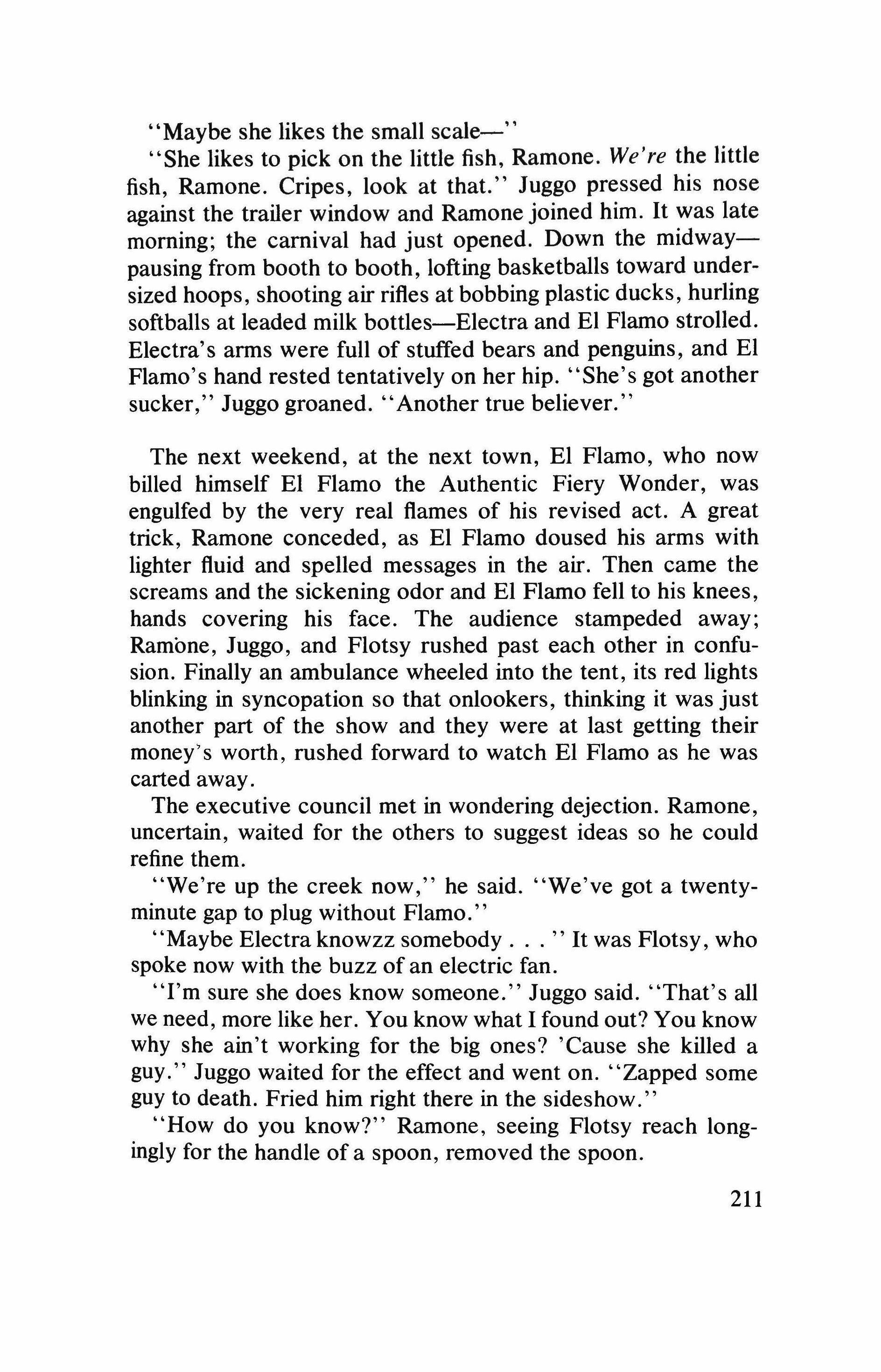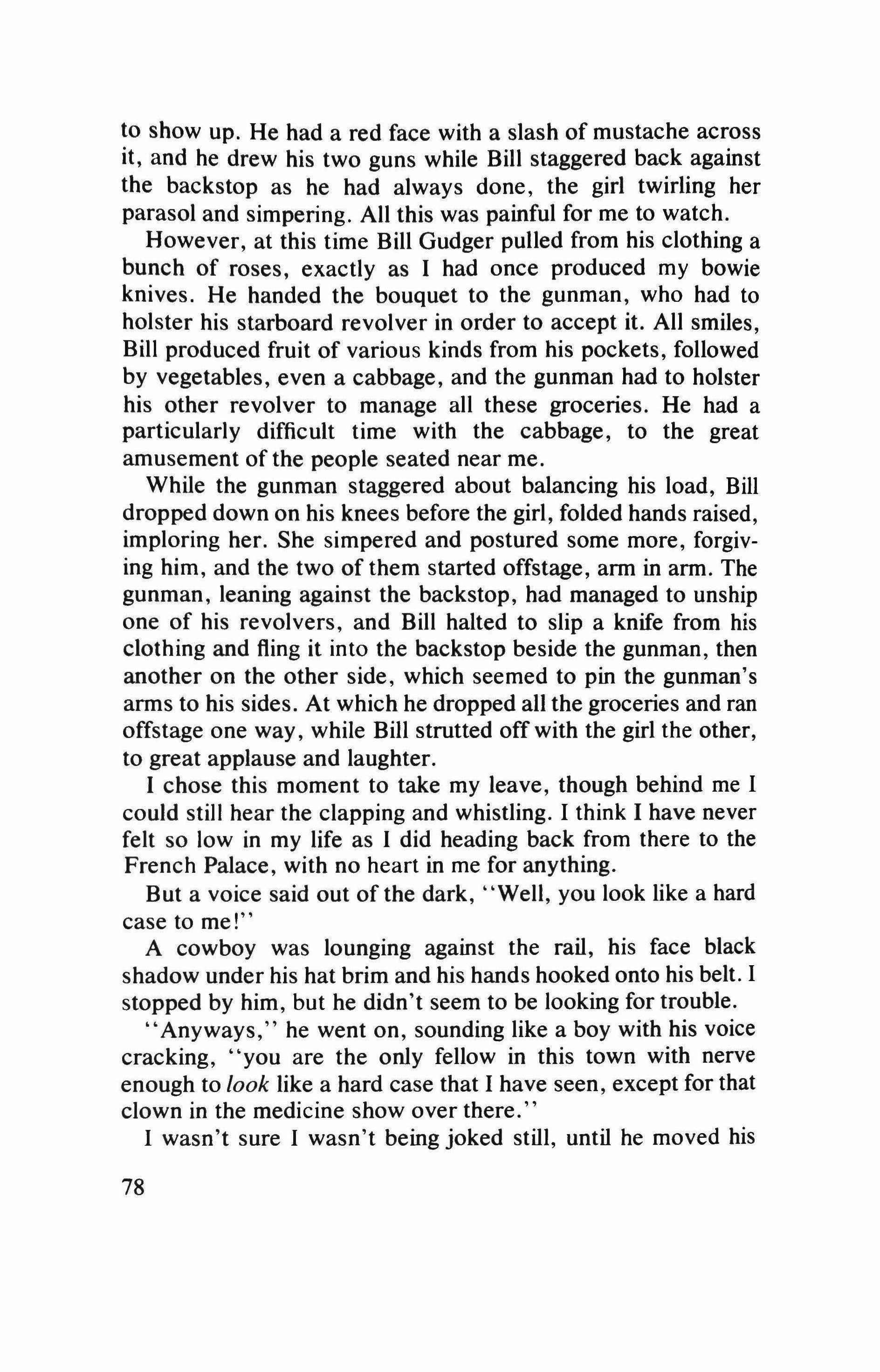 Yet the horrible word brought to his recollection a desperate, sodden night. He had been in town, in Morazon, and he had gotten tight. Something had happened in the bar of the Gran Atlantico Hotel. He remembered the lights of the bar and the lights of the street outside-a boy in a death's-head motorcycle cap, a European-looking boy with greasy long hair falling to his shoulders who shouted at him scornfully, "Maricon! Tu es maricon!"