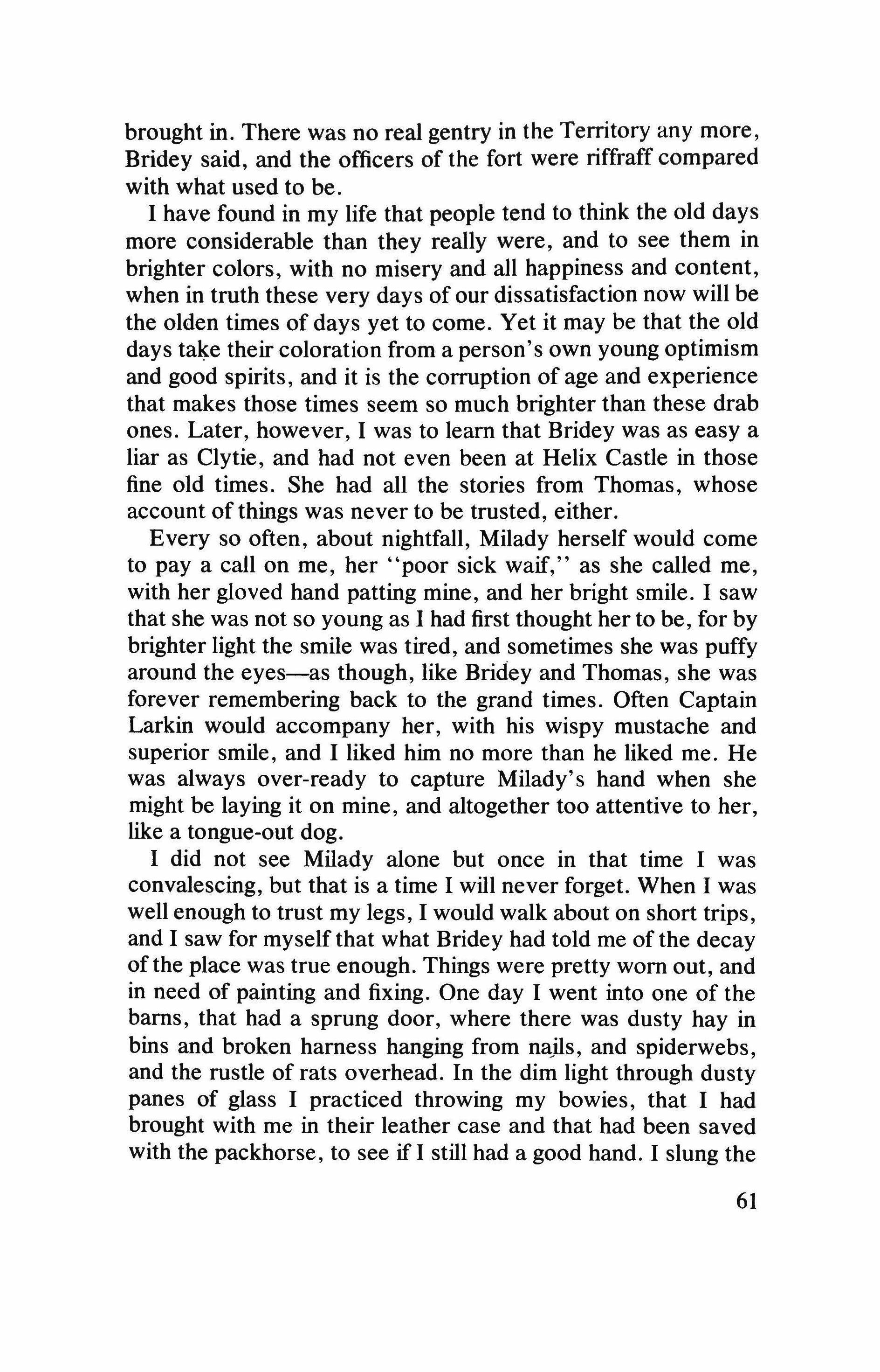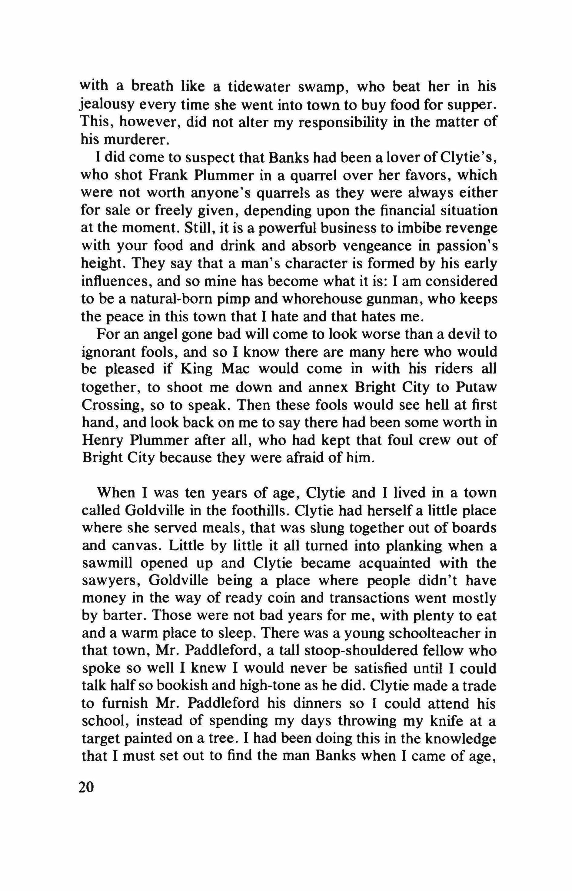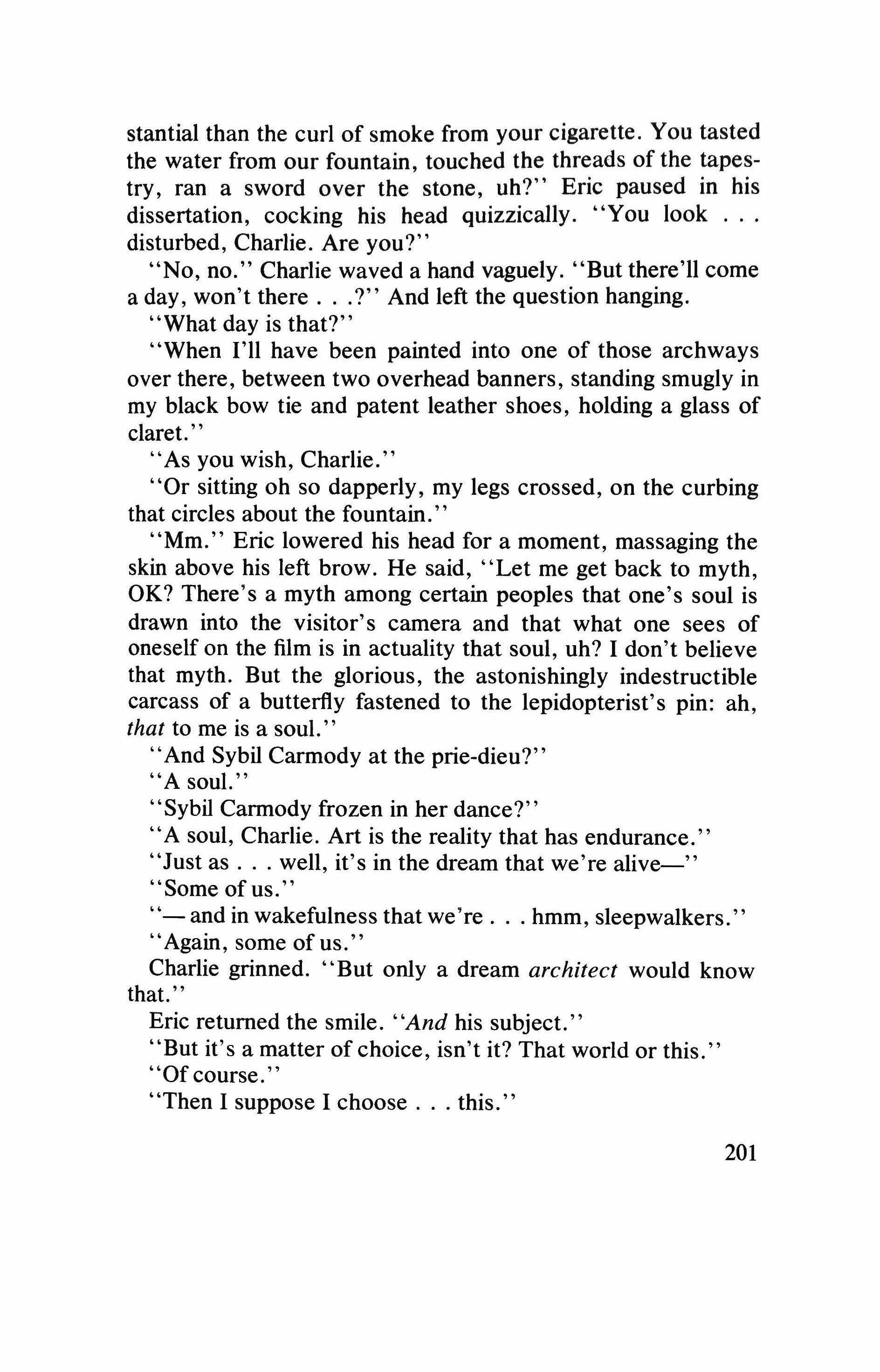 It was the composition of this work that had led to Father Egan's intemperance in drink. For over thirty years as a Devotionist Father he had been a moderate man in that regard, but writing was hard for him and the cultural deprivations of his voluntary mission-posting had rendered his life more difficult every day. He had rewritten the work six times and had reached the point where he could no longer endure it without alcohol. Yet without the work, he had found, life itself was not endurable. As for his faith-it was in a state oftension; the dark of his soul's night was such that he could not bring it to bear. And if that faith seemed moribund, he could only hope that it had returned to the seed to grow, to be transmogrified, dried and hardened in the tropical sun, destined to rise like a brilliant Tecanecan phoenix from Pascal's fire.