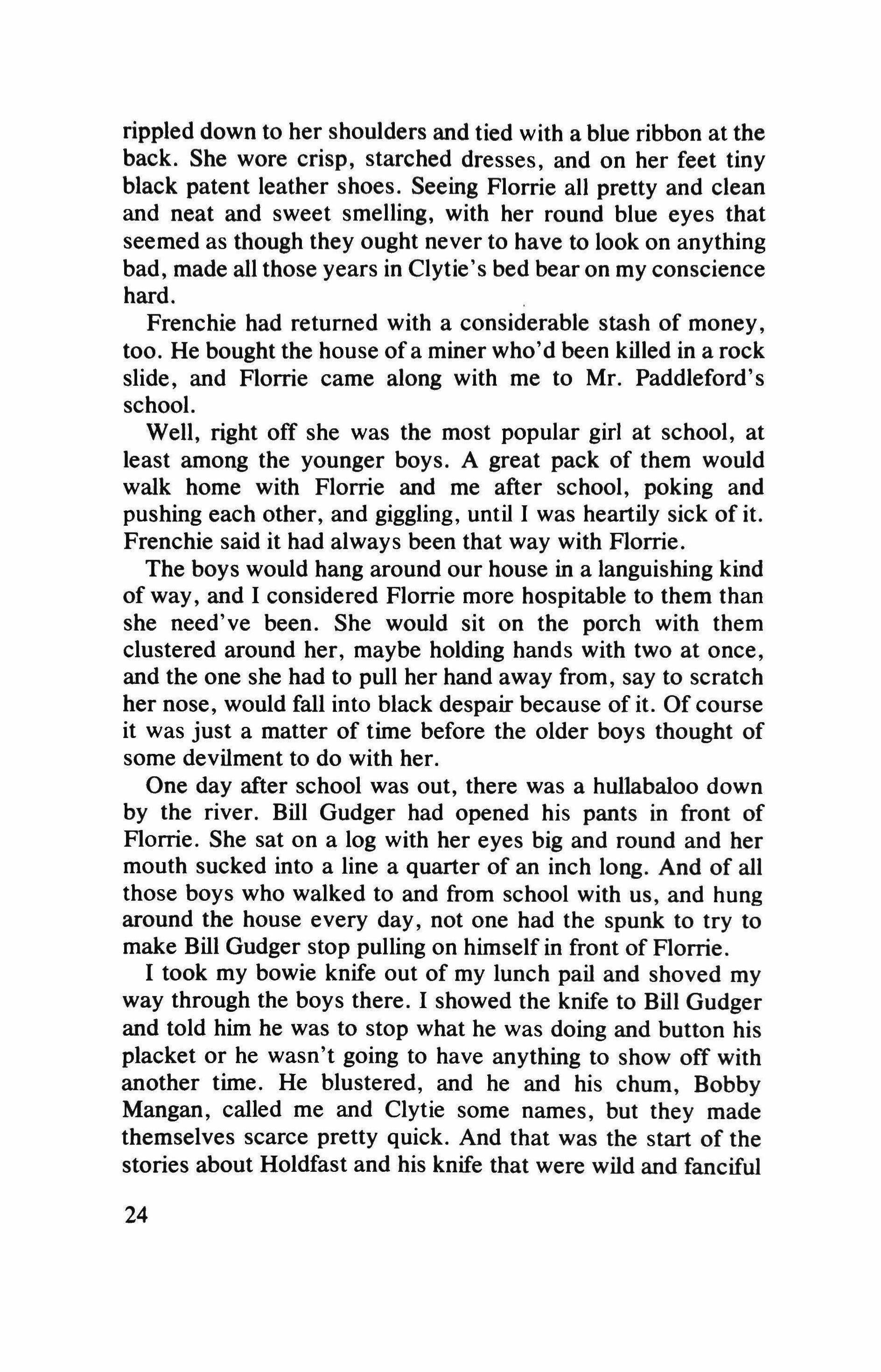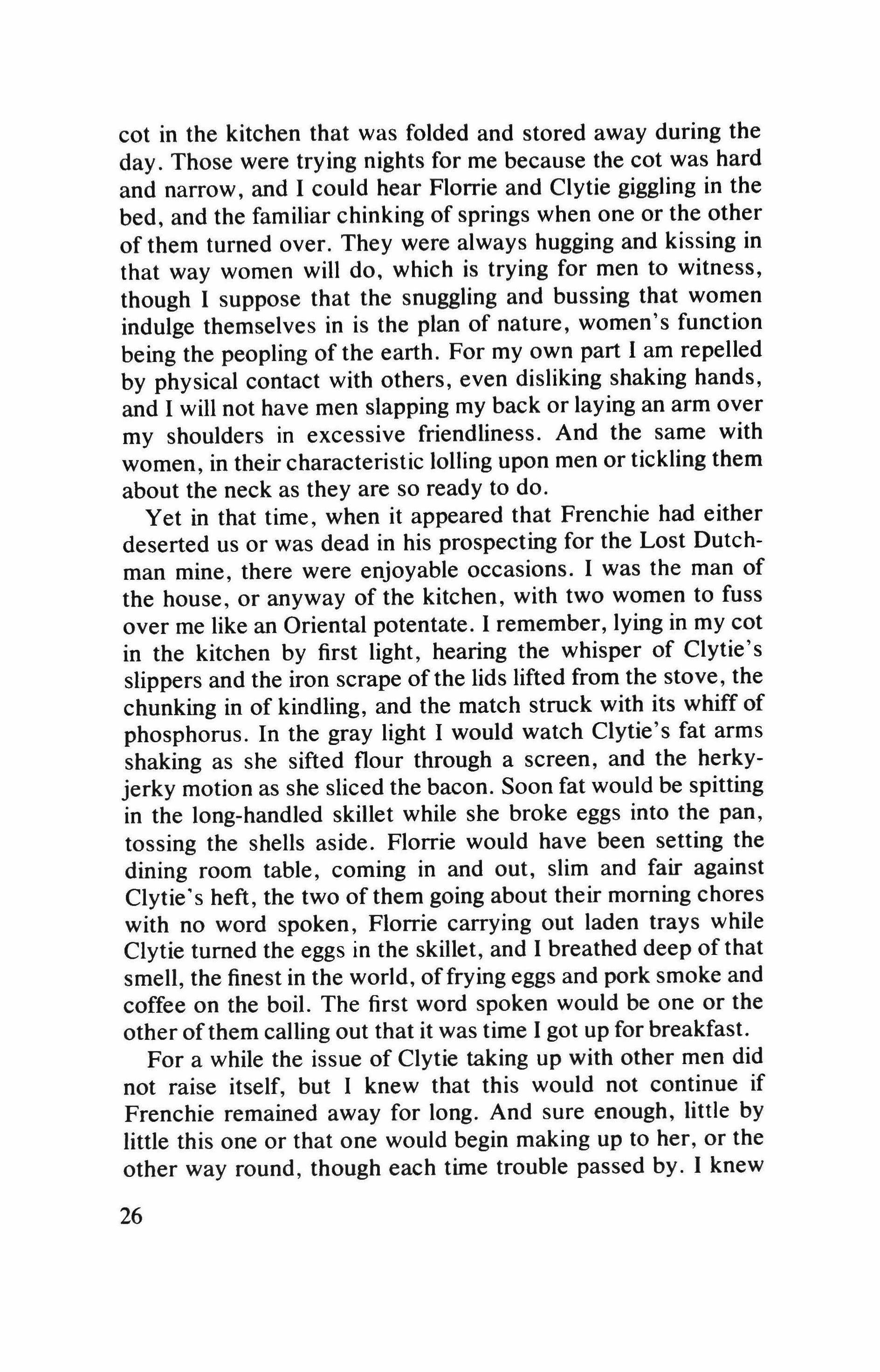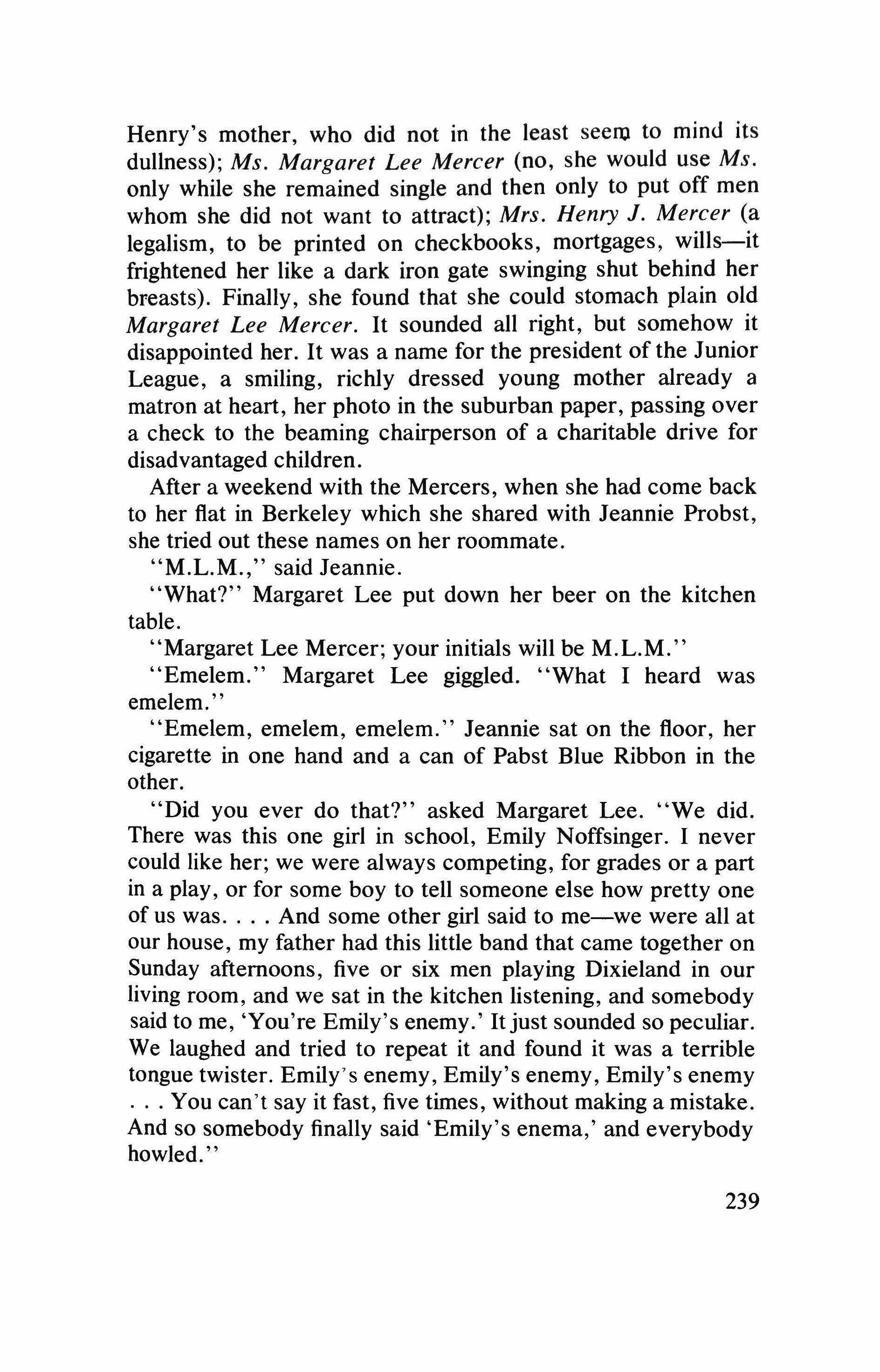 She paused. I thought she might have finished her story and that 1 should now offer to help her with the dishes, but she had not finished