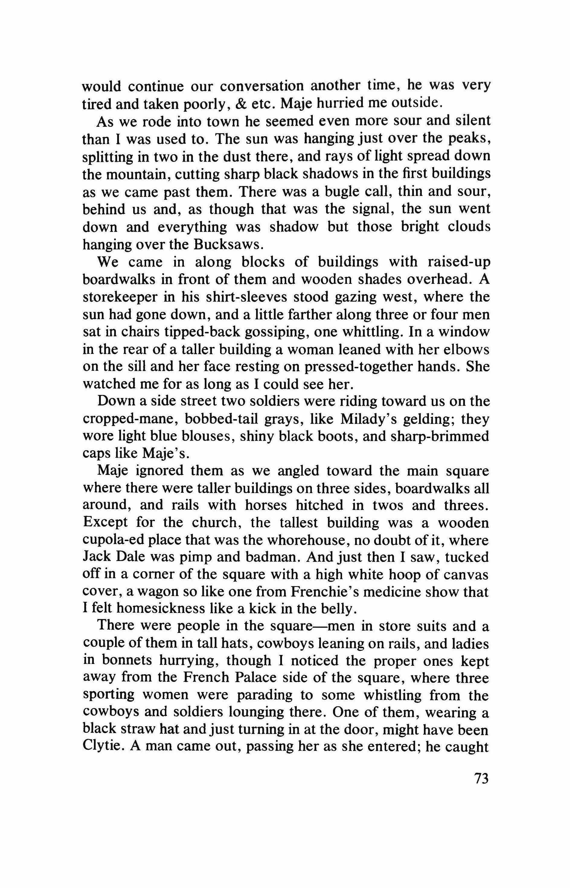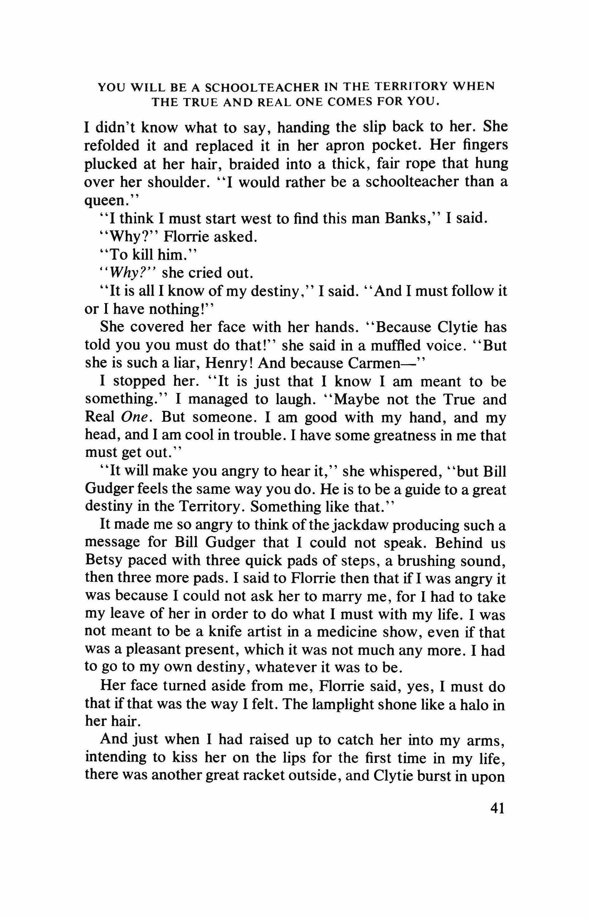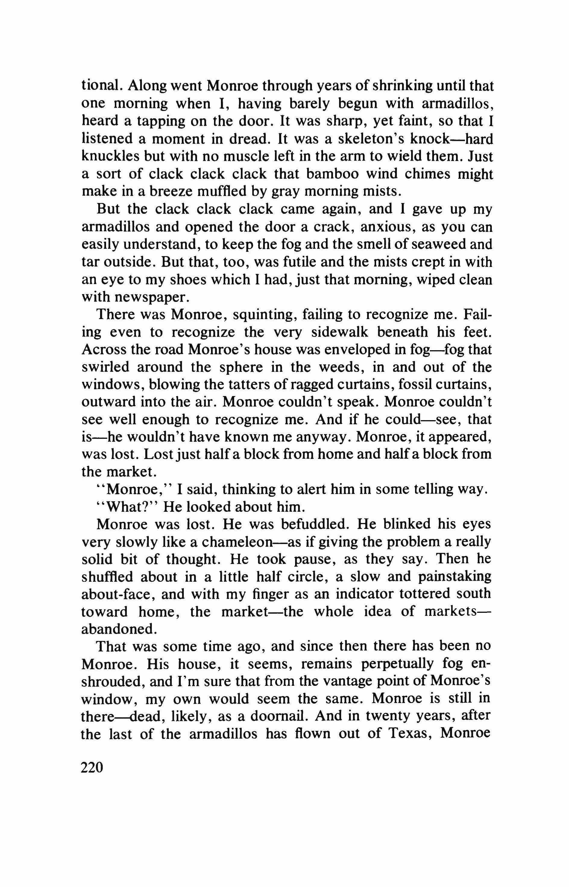 The notion to leave this house to an unborn babeeverything I have, as little as it is-is the last foolish wish in a lifetime of foolish wishes. It is true, as Miss Stein once informed me, that I am at home in a world of four corners. My imagination stops short of the stars. My own life produced neither art nor progeny, and now I allow myself the sentimental indulgence of letting go.