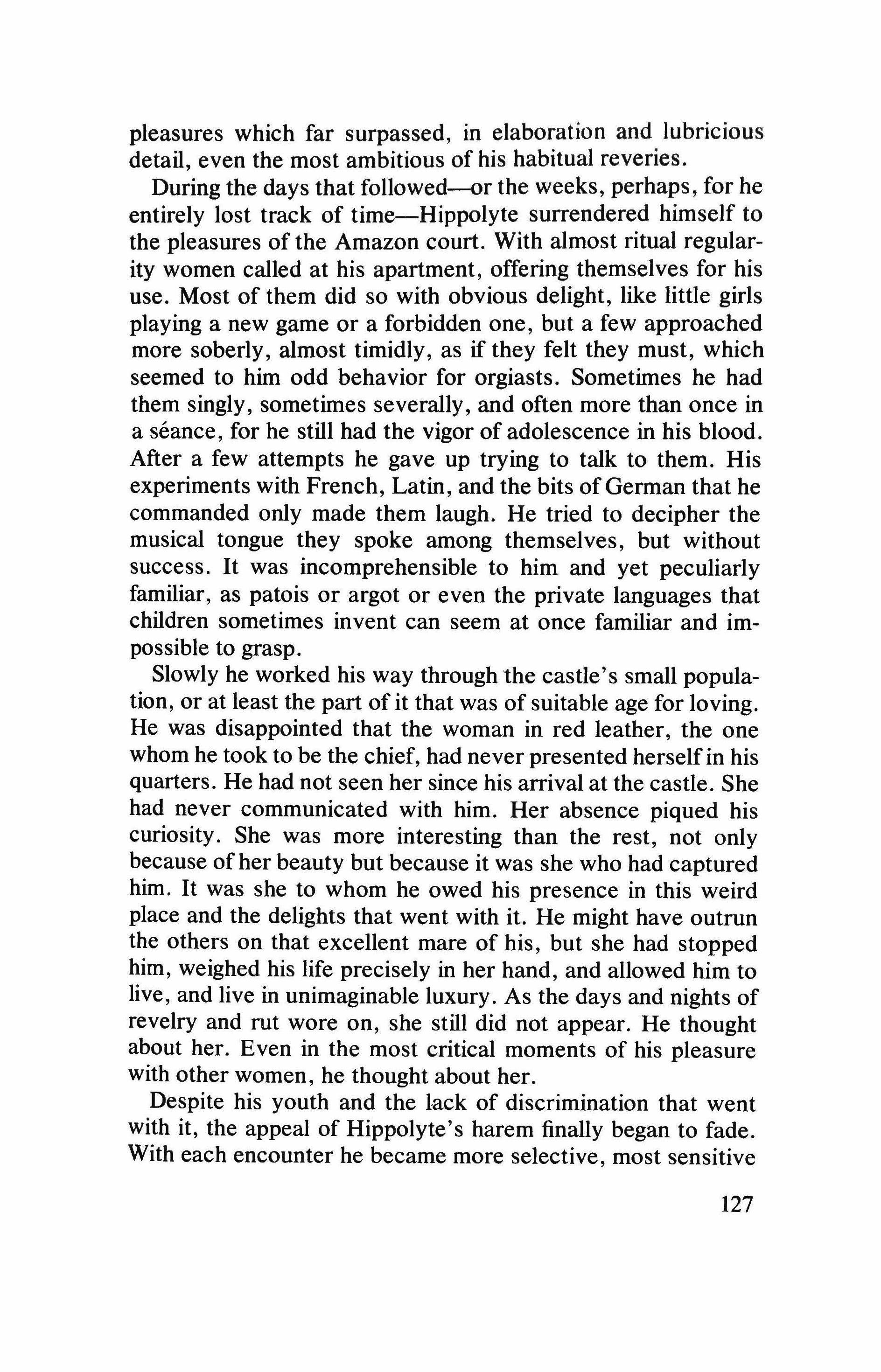 I had the uncomfortable feeling she had seen all along, but 1 told her about the girl in the story, how we had met on the omnibus that passes the Galeries Lafayette. 1 invited her to a cafe, but we took tea instead at a patisserie near Palais Royale-because tea seemed so harmless and because nothing untoward could come from sitting with a stranger in a pastry shop. We made a rendezvous for the next day. I thought she would not come, but she did, and that time we drank wine. Eventually she came to my room, and after that she came to live with me. We had been living together since autumn of the year before.