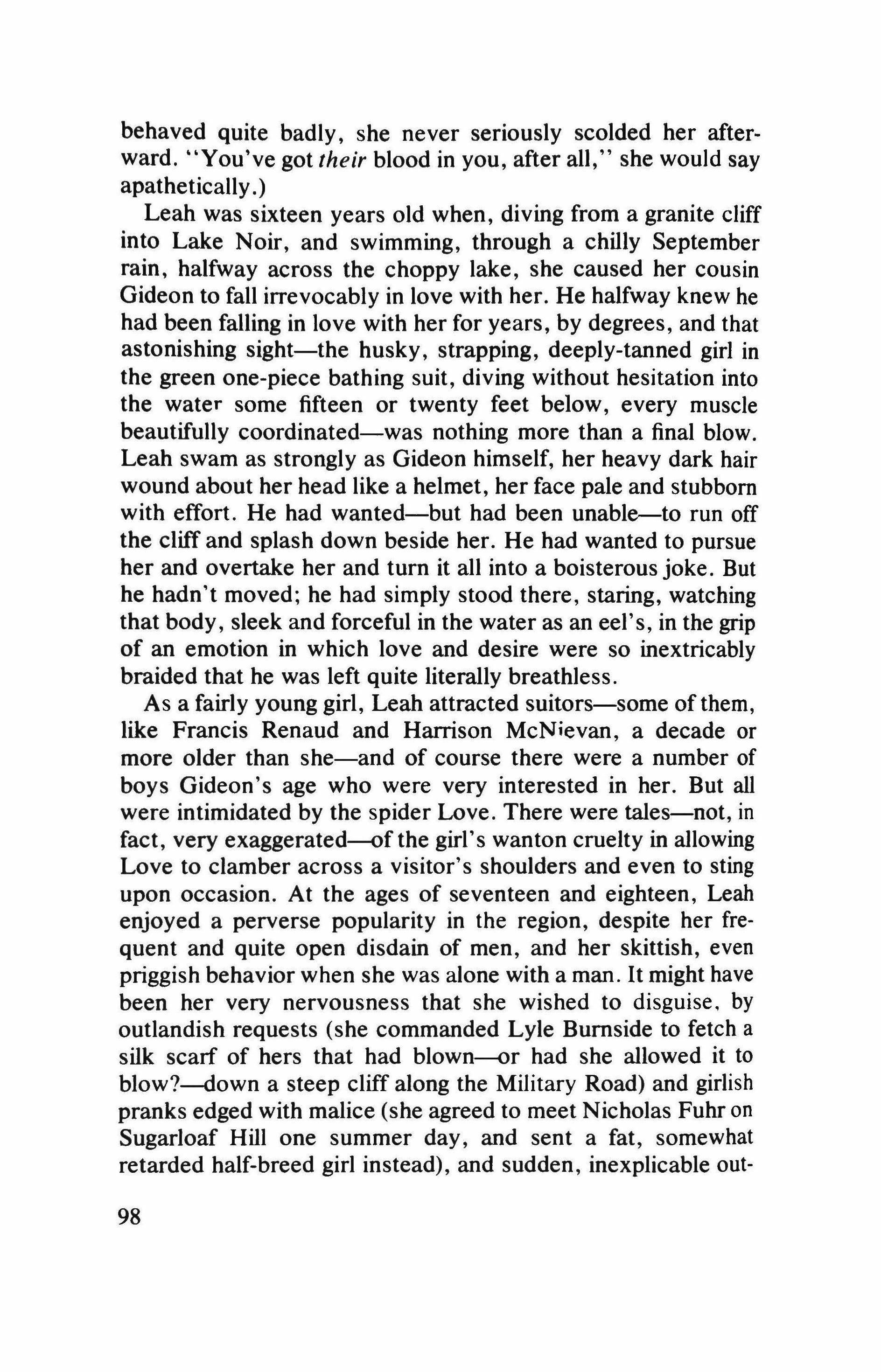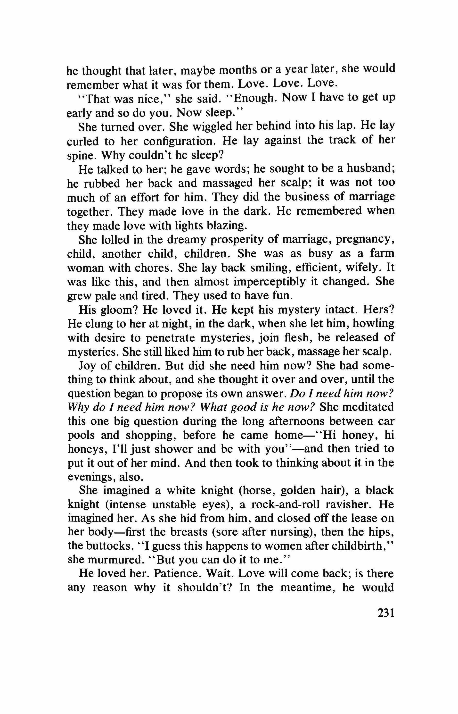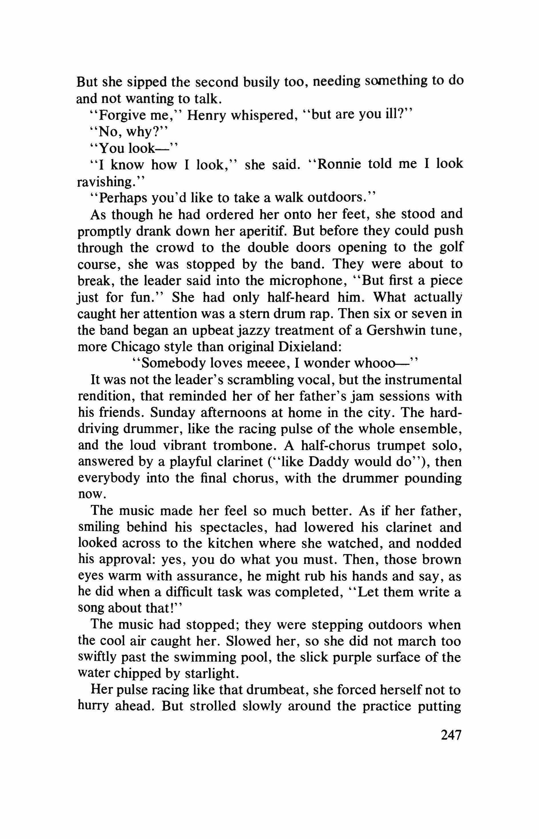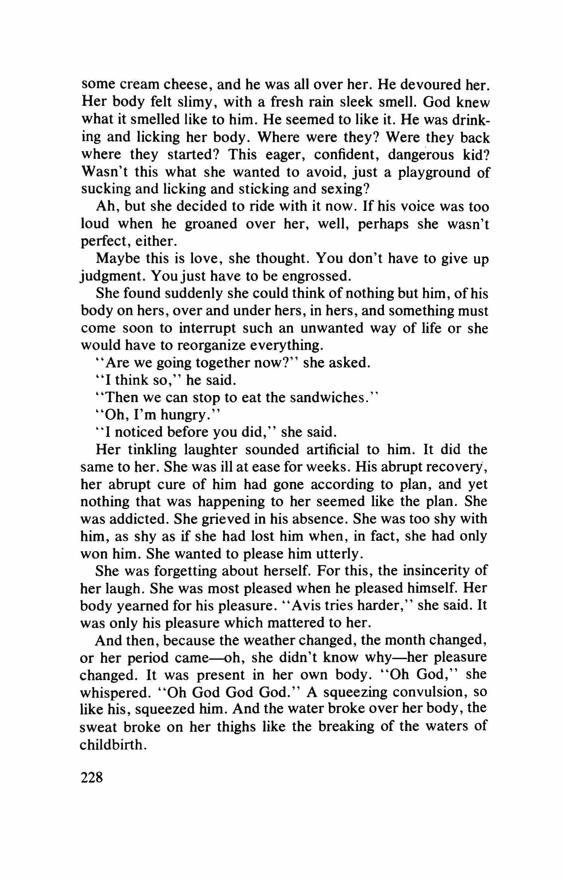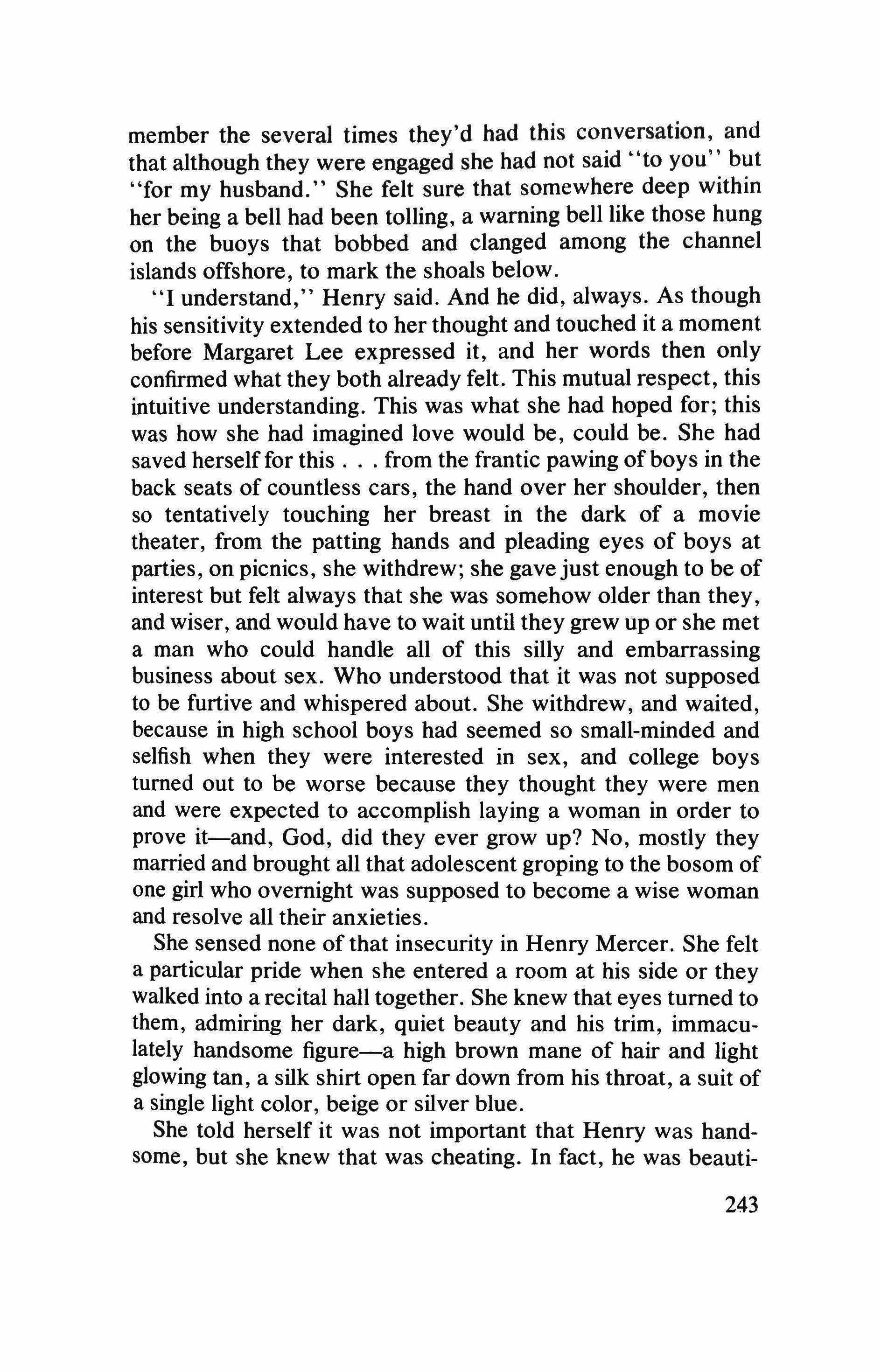 "You have been fortunate to meet someone and stay since autumn with that person, but the other thing is both harder and easier to do, and more fortunate still.' She did not say what the other thing was, but I knew. "When it is right it is natural and what is natural seems easy but at the same time difficult to sustain.