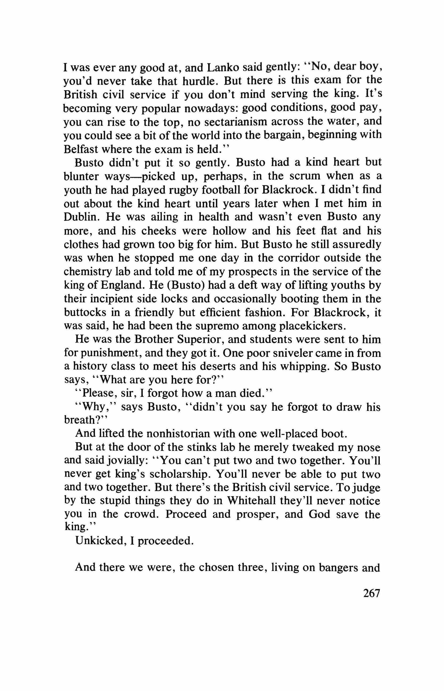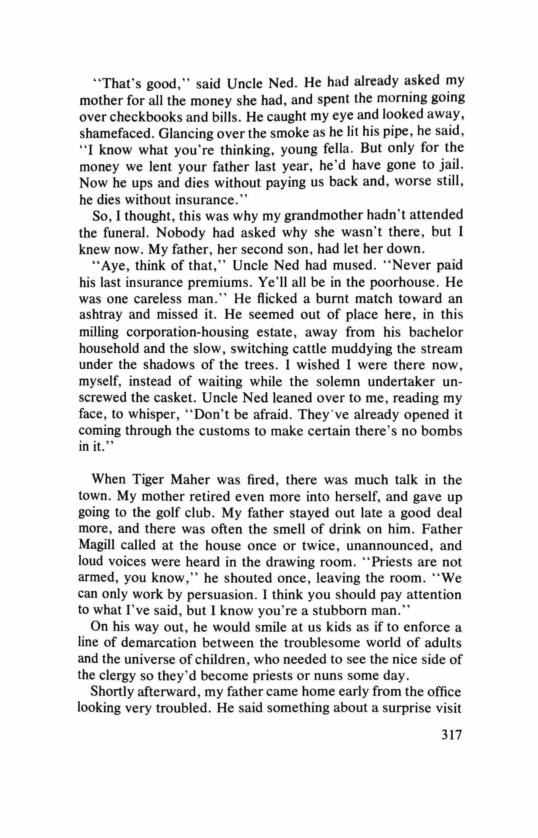 "Gone to bed, I would suppose," Father Egan said cheerily. God save us, he thought. We're being arrested.
