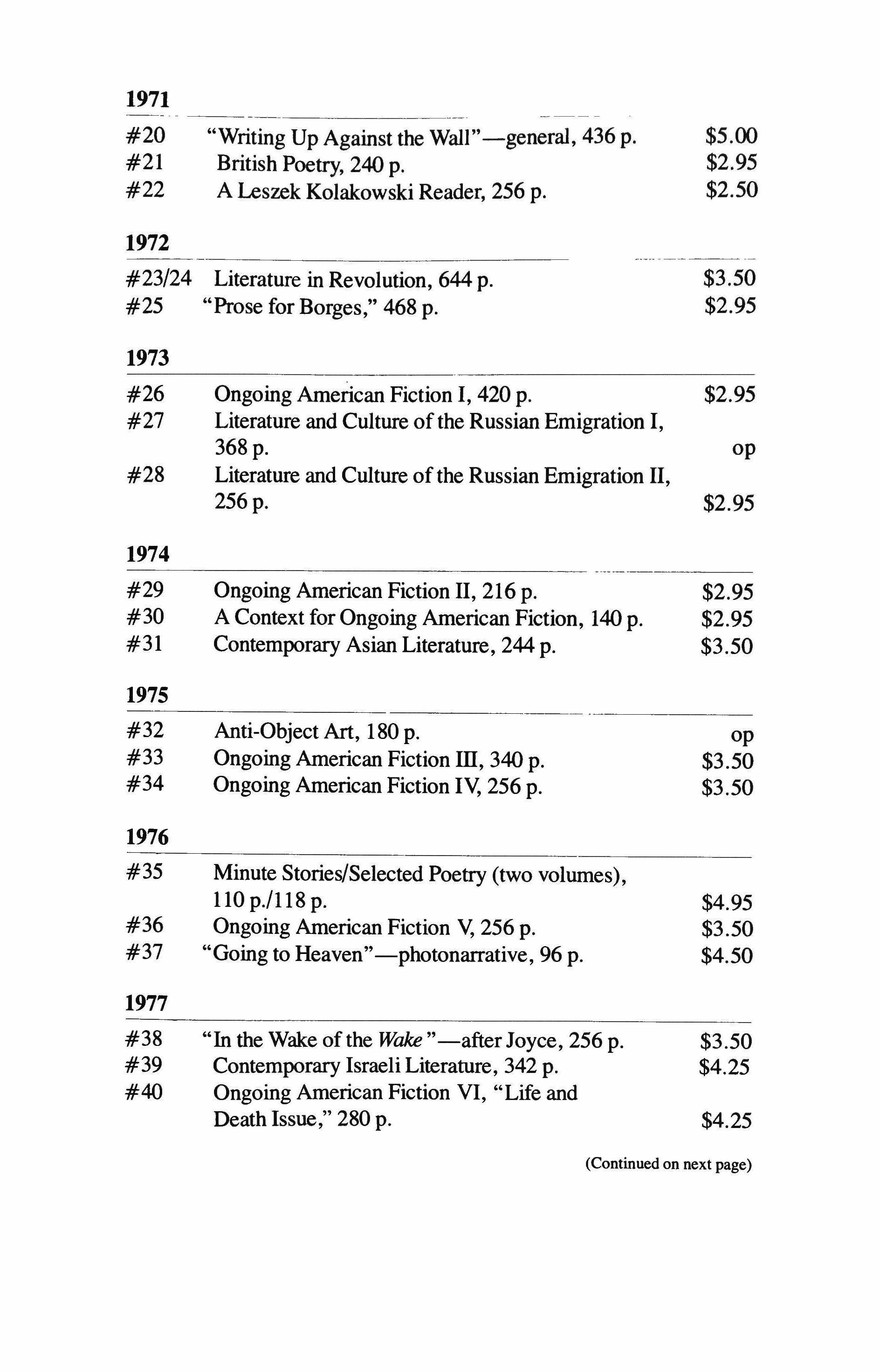 #20 #21 #22 "Writing Up Against the Wall"-general, 436 p. British Poetry, 240 p. A Leszek Kolakowski Reader, 256 p.