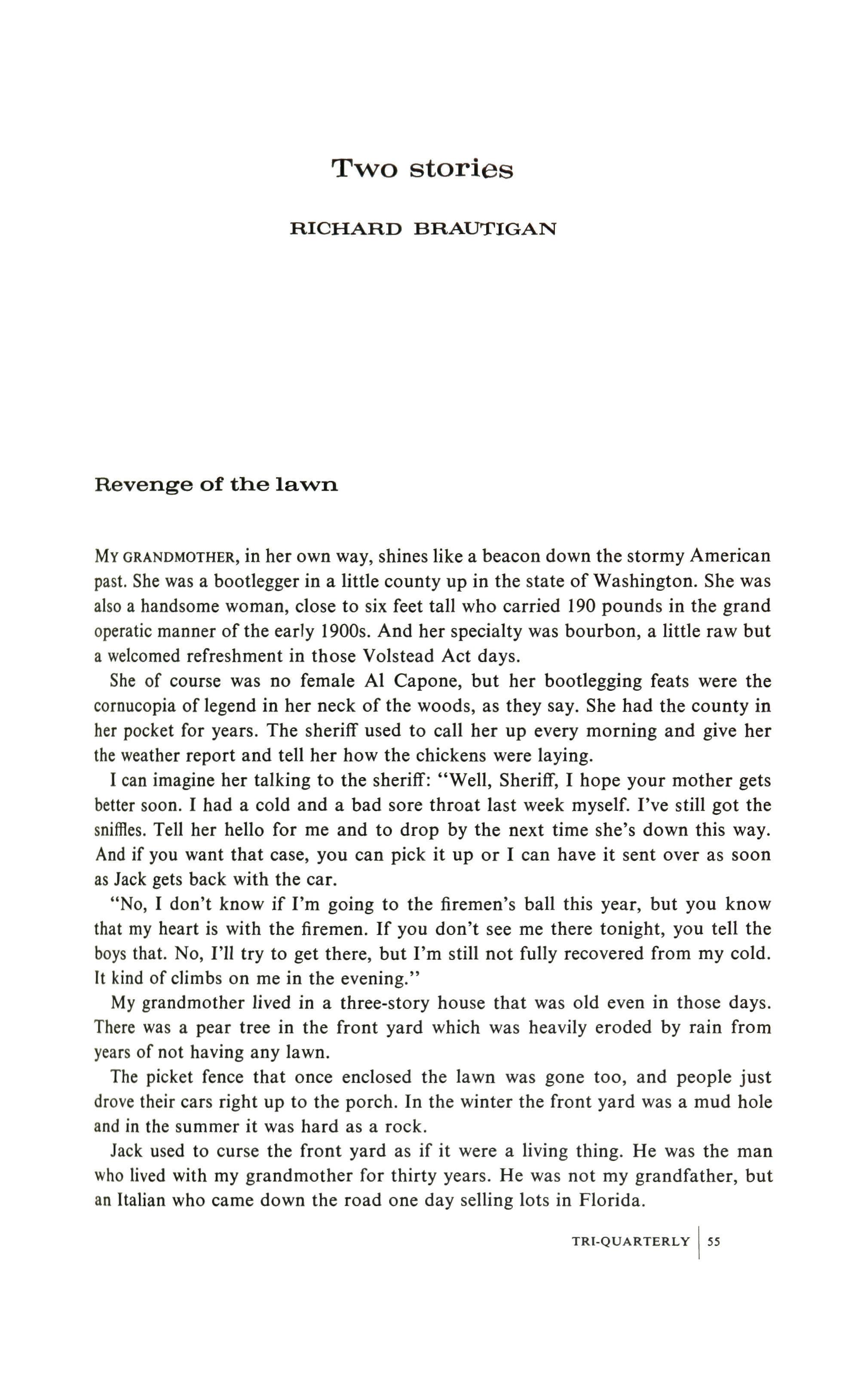RICHARD BRAUTIGAN 55 Two Stories: Revenge of the lawn, A short history of religion in California