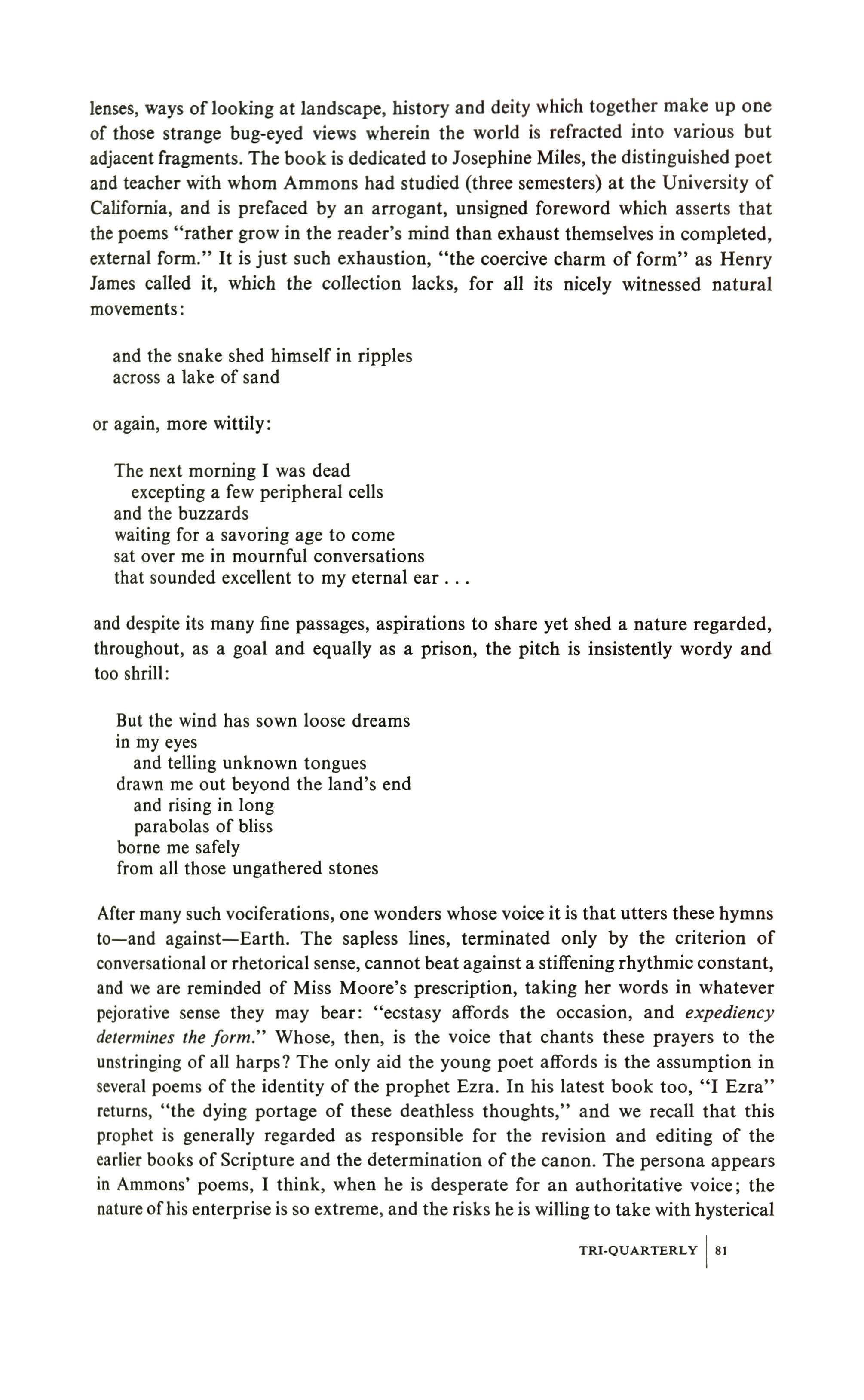 of everybody in the world. He feels that human beings are separated from each other like animals in cages. He doesn't want to write a confession or a sheer lyric cry, but feels drawn to the dramatic form. So he objectifies his feelings; he creates characters in conflict with each other. Because he's writing a "modern" play about contemporary people and their problems ofcommunication, he uses slang, cliche, obscenity. Because life seems to him rootless, he attacks the family, and even goes after God. It's a good play, rough around the edges but good. He begins to get a name, producers, critical acceptance. He hears, or maybe even feels, that what made his first playa success was: TRI-QUARTERLY 183