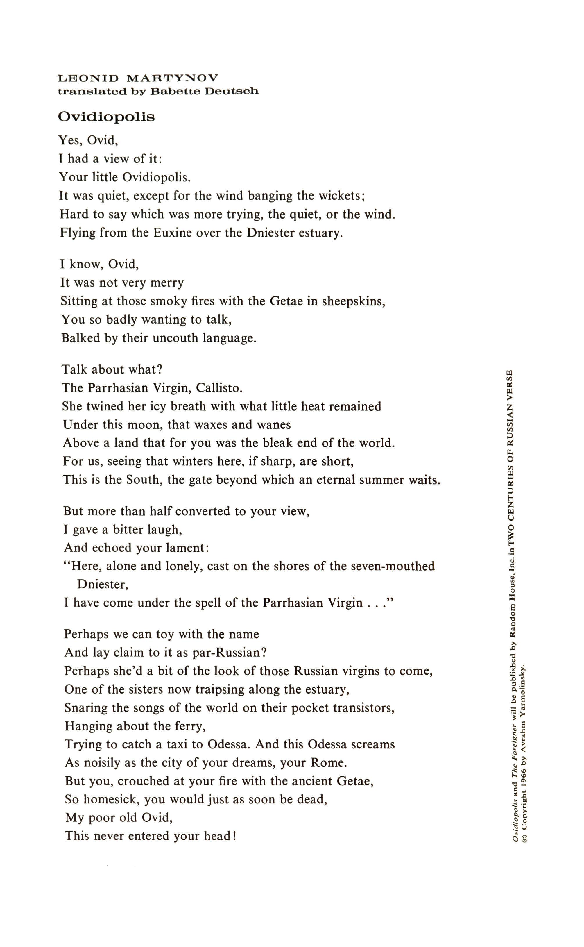 LEONID MARTYNOV 38 Ovidiopolis translated by Babette Deutsch