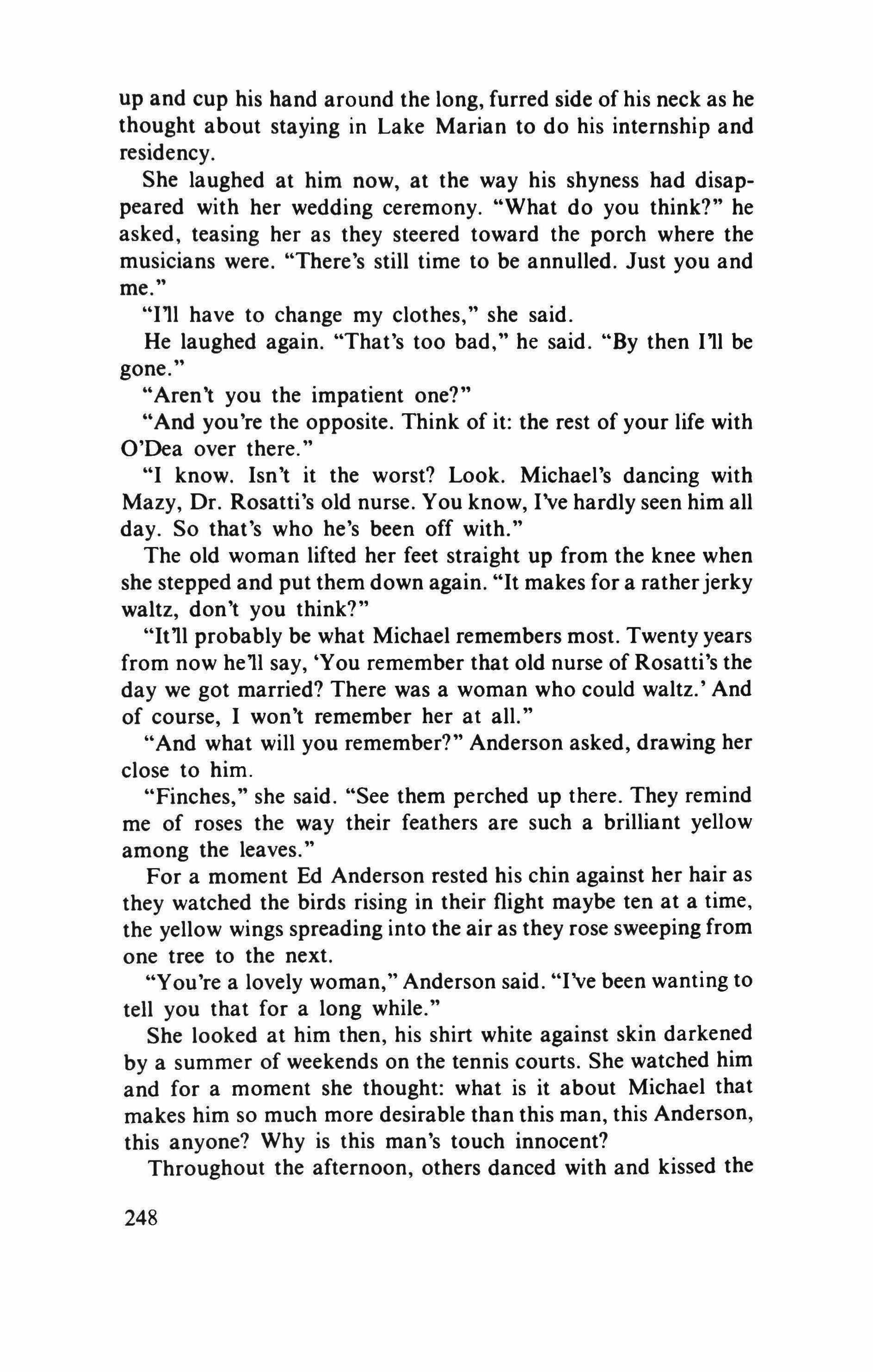 In a trice the conversation turned political and moved to the taproom, where a fresh keg of brown beer was opened. Only the youngsters-Birken, Greflinger, and, hesitantly, the student Scheffler-stayed in the courtyard with Zesen and approached the maids. Each made a grab or (in Scheffler's case) was grabbed; Zesen alone was left empty-handed and, his feelings hurt by Greflinger's mockery, went down to the river. He wanted to be alone with himself.