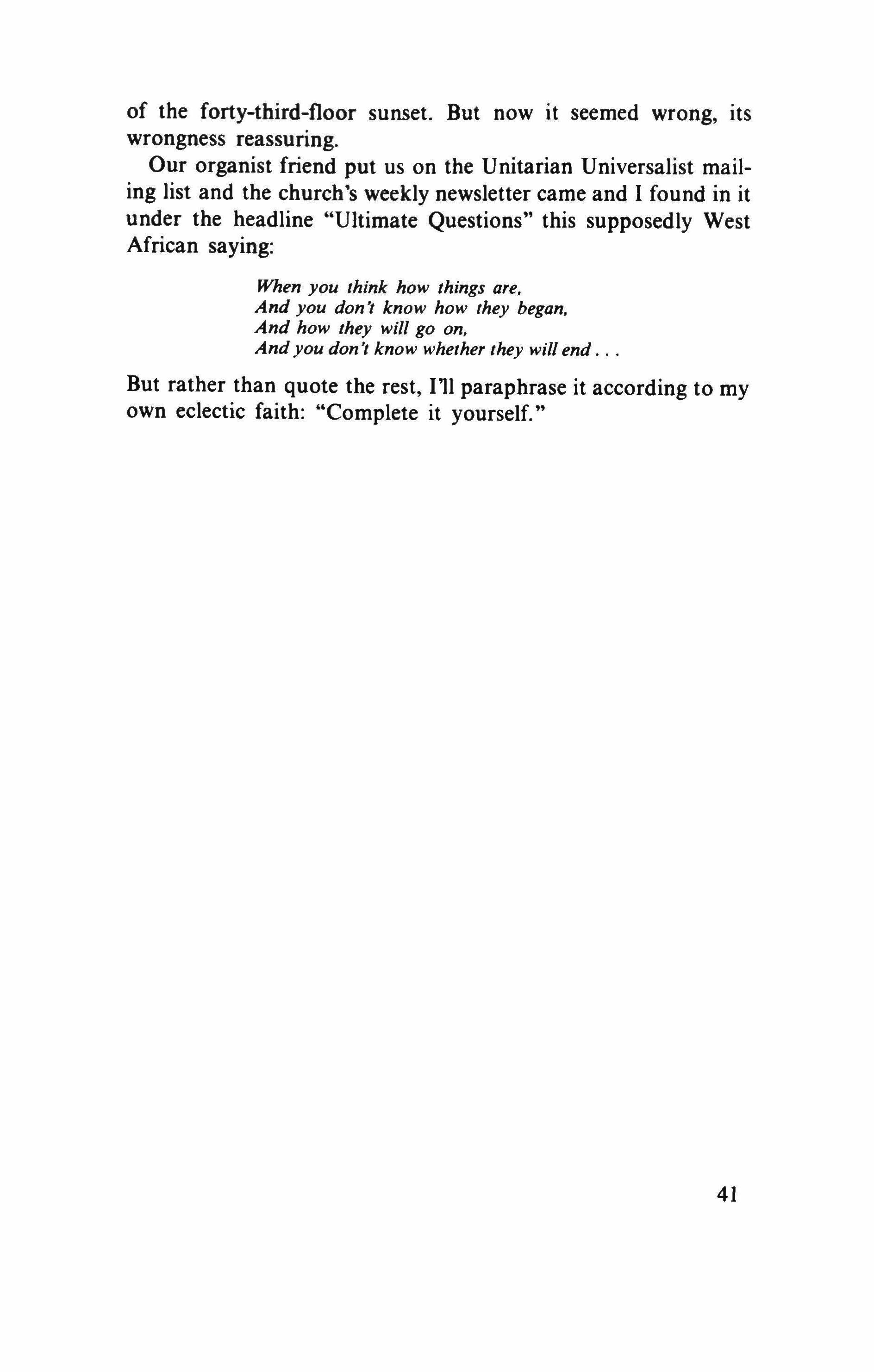 in each and everyone of the words which tell us that what we accept as reality is not fully existent beca use it does not realize that its sister reality, its possible reality, is there beside it, waiting to be seen. More, waiting to be dreamed.
