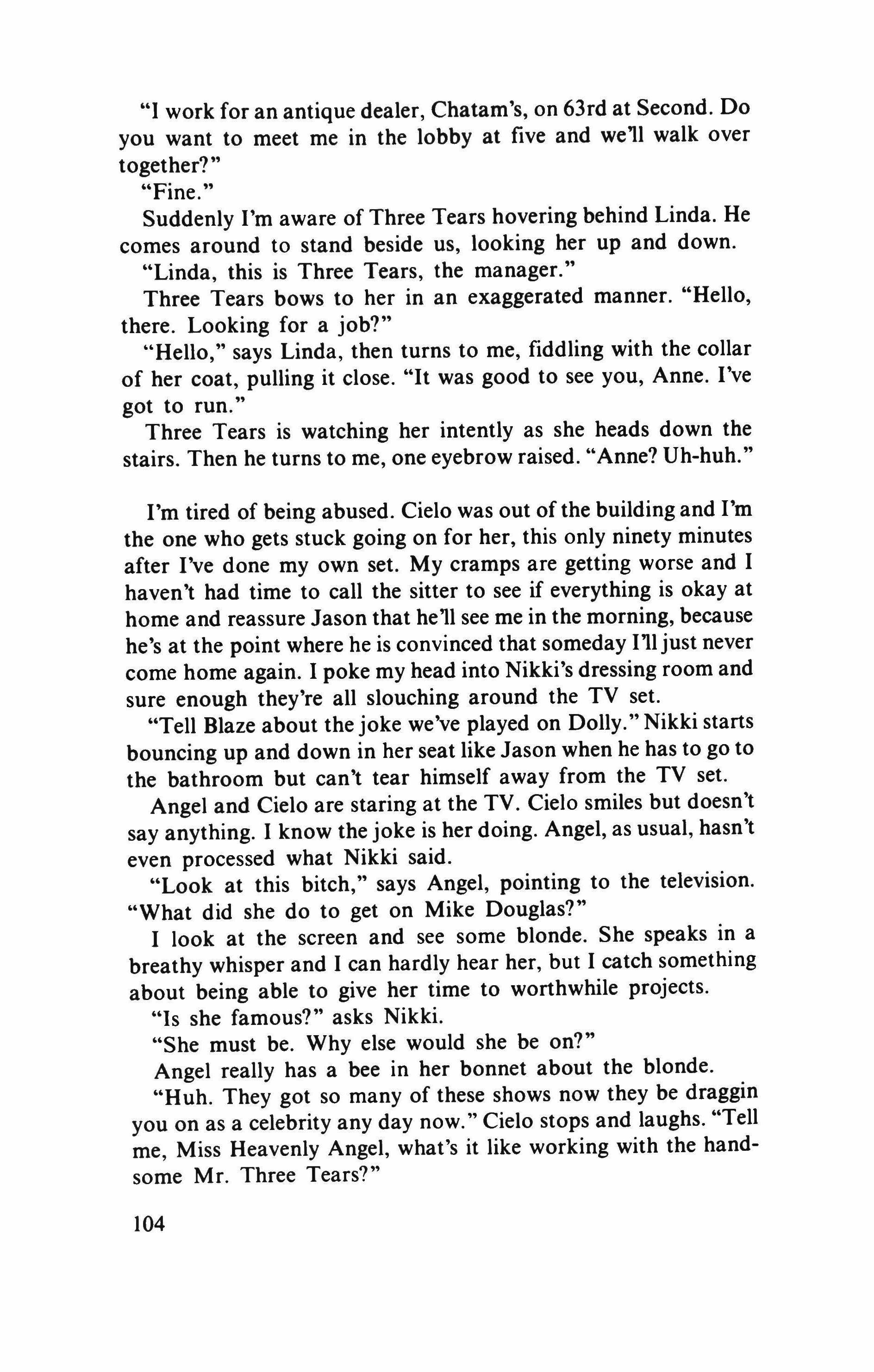 She'd open an account for him, all right, she replied; she'd make him pay for all the brats born in his wake in one garrison town after another.