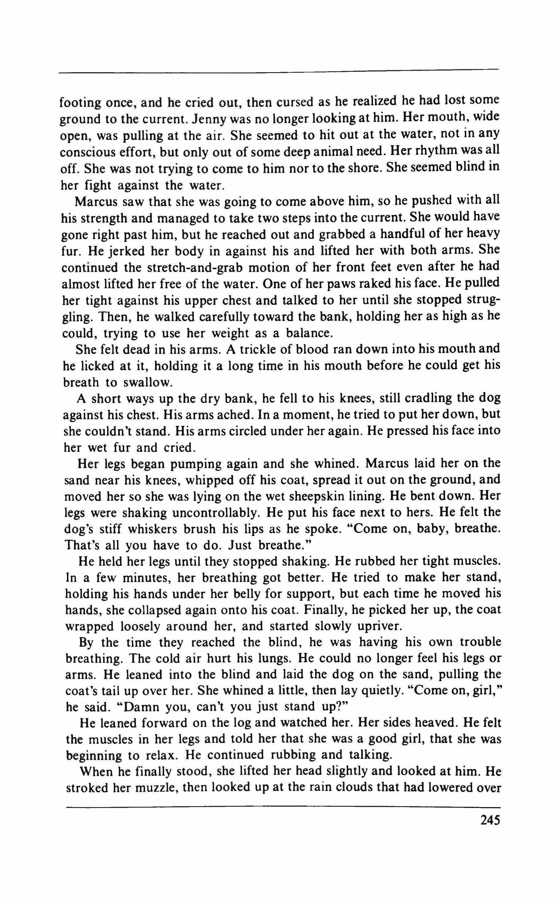 His back sagging under the sack of flour he was carrying, Danny Polnauer concentrated almost exclusively on keeping his knees from buckling. It was other people who determined which way to go, how fast, and everything else. The country around them had grown even wilder. The wind, which had been annoying when they were in the trucks, was refreshing them now. The men in front were carrying crates of munitions. Behind them came men with machine guns. In pairs, others carried water kegs and barrels of oil. Quara moved between the pigeon crates and the machine-gun bearers. The trucks had stopped beside one of the ravines. The soldiers plodded through the shadows cast by the trees and melted into them.