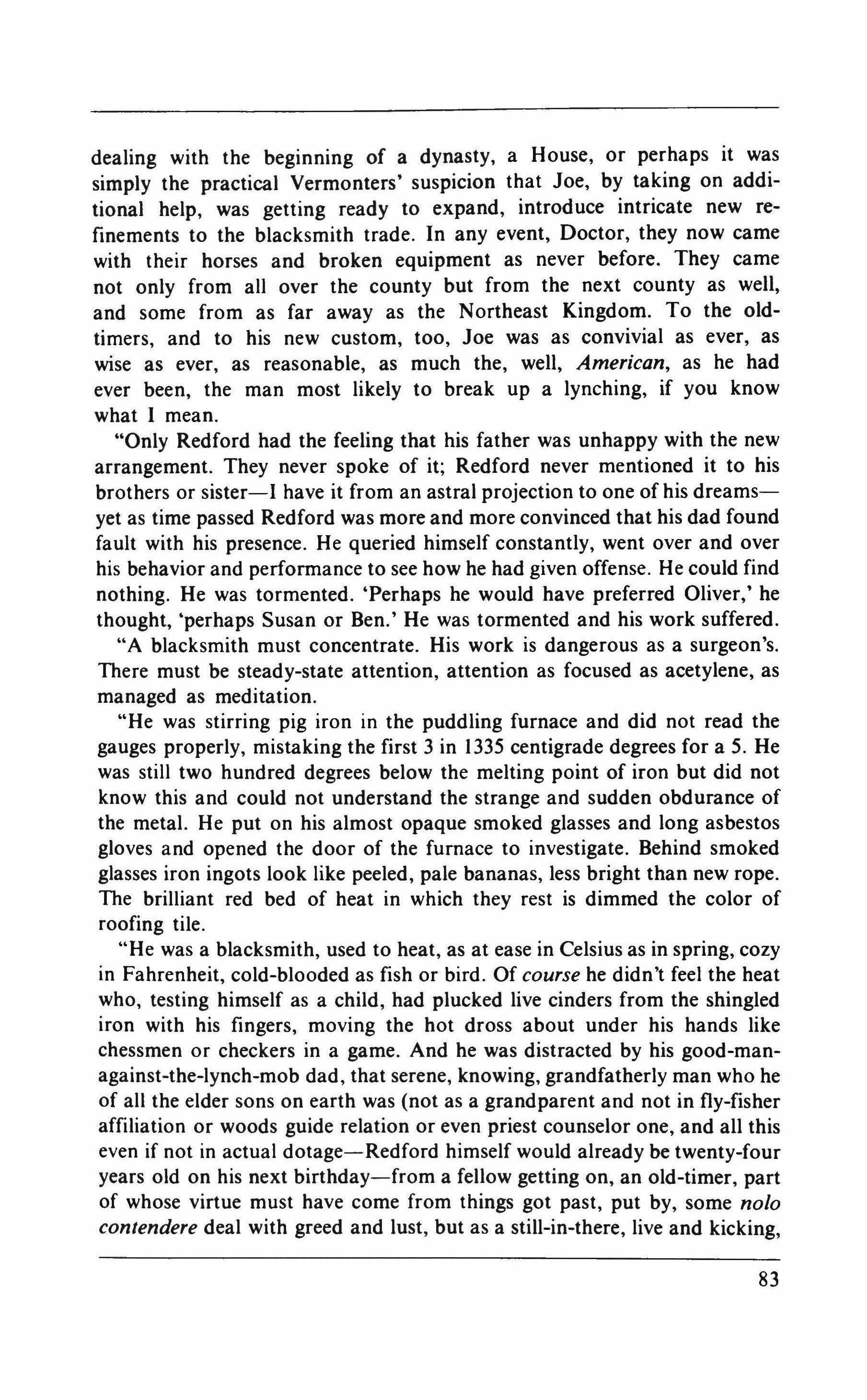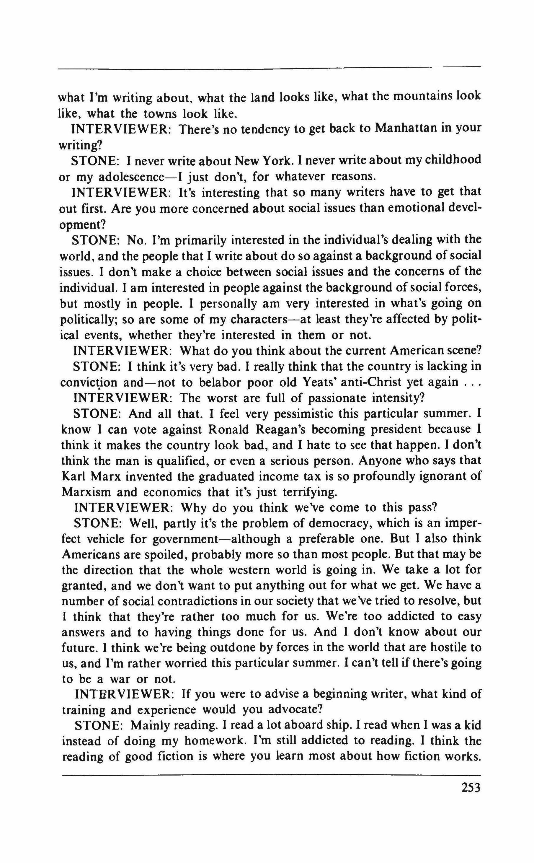 pubished short fiction in The New Yorker, Esquire, and The New Orleans Review, among other periodicals. R. L. Shafner's story, "A Mrs. Muriel Brown," appeared in TriQuarterly 51. A resident of New York City, she won a Provincetown Art Center writing fellowship in 1981 and is a research librarian with the American Broadcasting Company. Richard Ford is the author of two novels, Piece of My Heart and The Ultimate Good Luck (1981). He lives in Vermont. Kenneth R. Smith directs a writing clinic for student athletes at the University of Arizona, in Tucson. His stories have appeared in several literary magazines, including Sou'Wester, Constellations, and Intro 12. Maureen M. Karagueuzian is Head of Humanities at St. Patrick's College, in Los Altos, California. She has a short story in the winter 1981 issue of Ararat: A Literary Magazine. A professor of English at the University of Cincinnati, Thomas LeClair is serving as Fulbright lecturer in American literature at the University of Athens, Greece, in 1981-2. He has published articles in several academic journals, and has reviewed contemporary fiction in The New Republic, Saturday Review, The New York Times Book Review, The Washington Post, and other publications. His book, Interviews with Contemporary American Novelists, will be published by the University of Illinois Press in 1982.