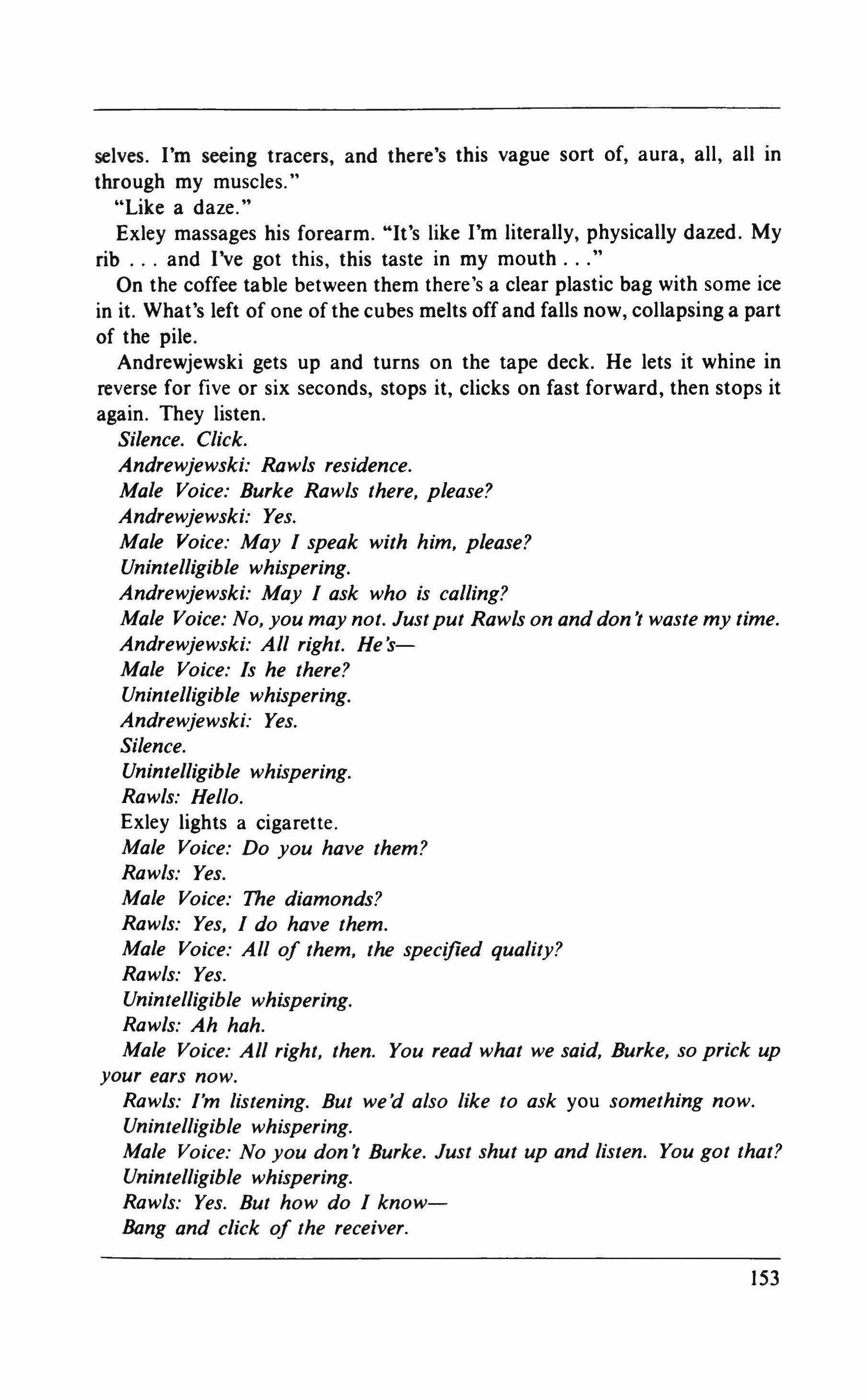 "What's the difference between a virgin and a whore?" asked Pretty Boy and he answered his own question. "A whore always comes across, and a virgin just makes promises."