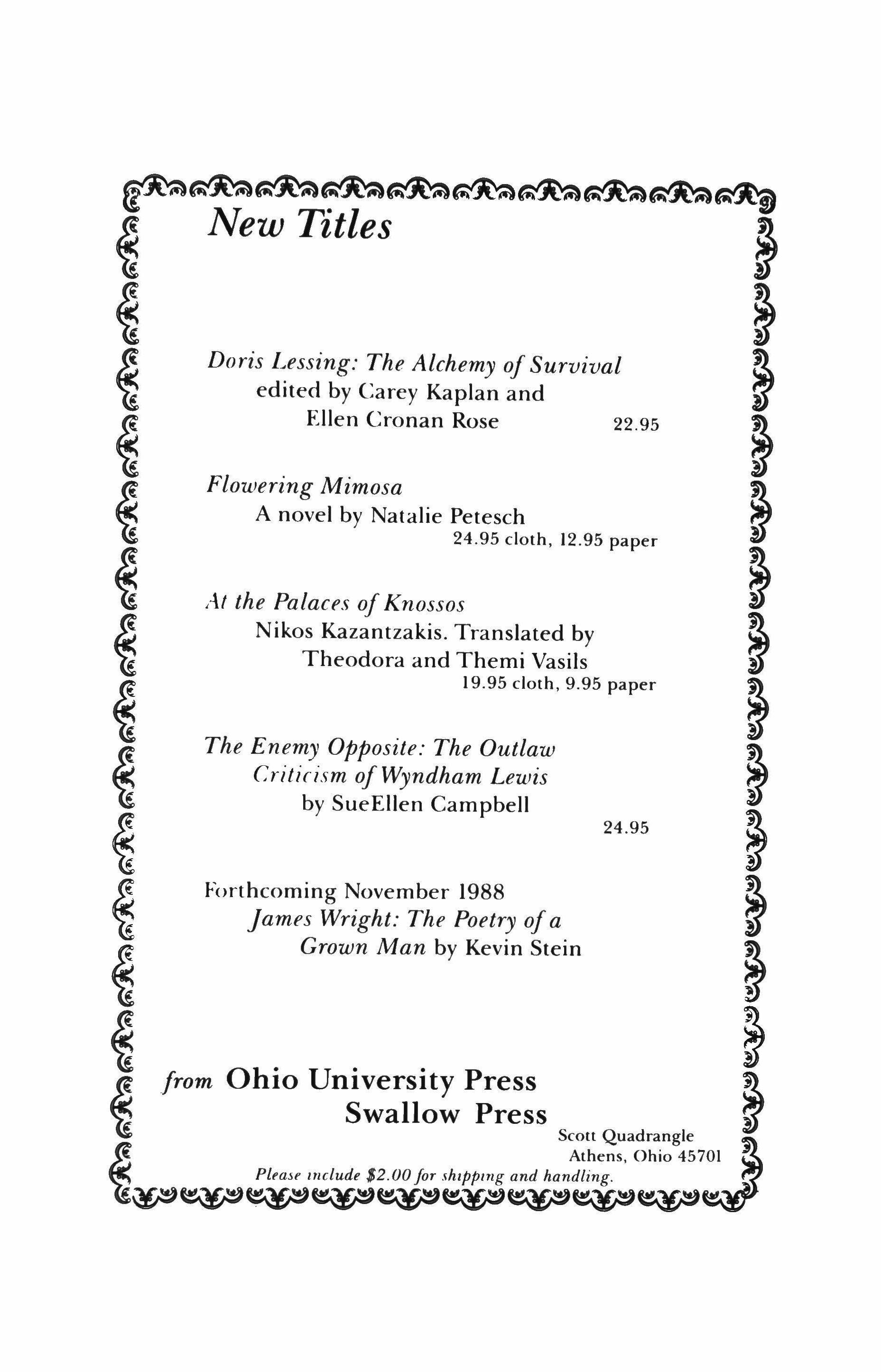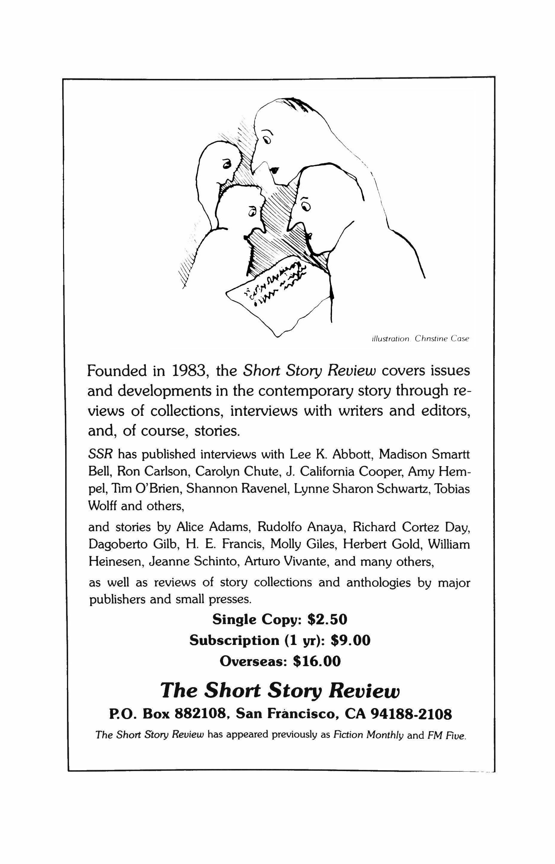 Please note: TriQuarterly has moved. Our new address is 2020 Ridge Avenue, Evanston, IL 60208. (Our phone number stays the same-(312) 491-3490.) Also, effective with the Spring/Summer issue (TQ #72), subscription rates for individuals will be $18 for one year and $32 for two. Current subscribers who wish to renew at the old rate may do so if we receive their orders by May 1, 1988.