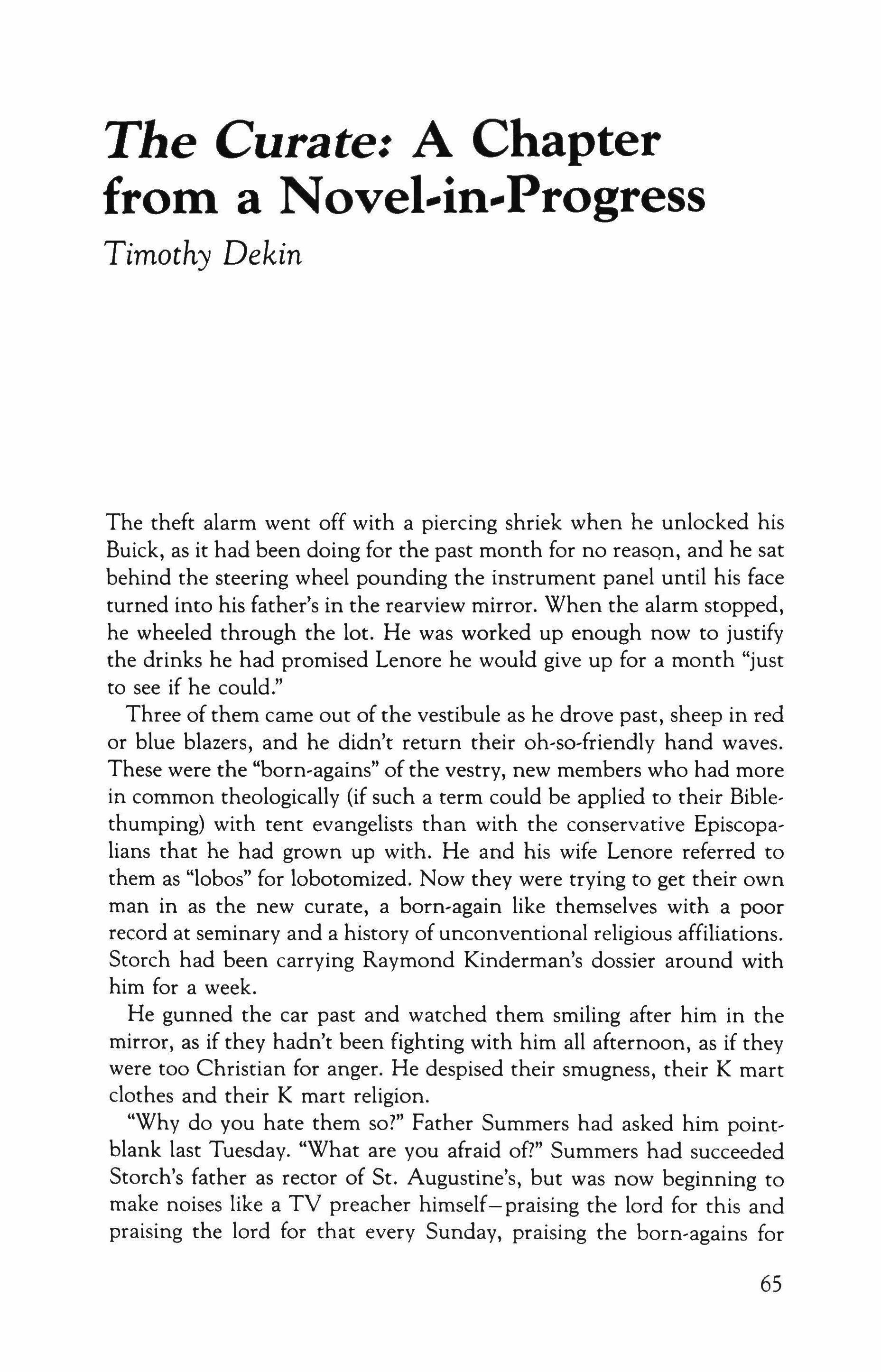 "I don't bother much with religion," she said. "My mother used to go on about a church wedding but after she died I don't know. I remember Poe in high school. 'Quoth the Raven, "Nevermore." She picked up the book and riffled the pages. A white button closed the short sleeve on the upper arm. The rest of the arm was bare.