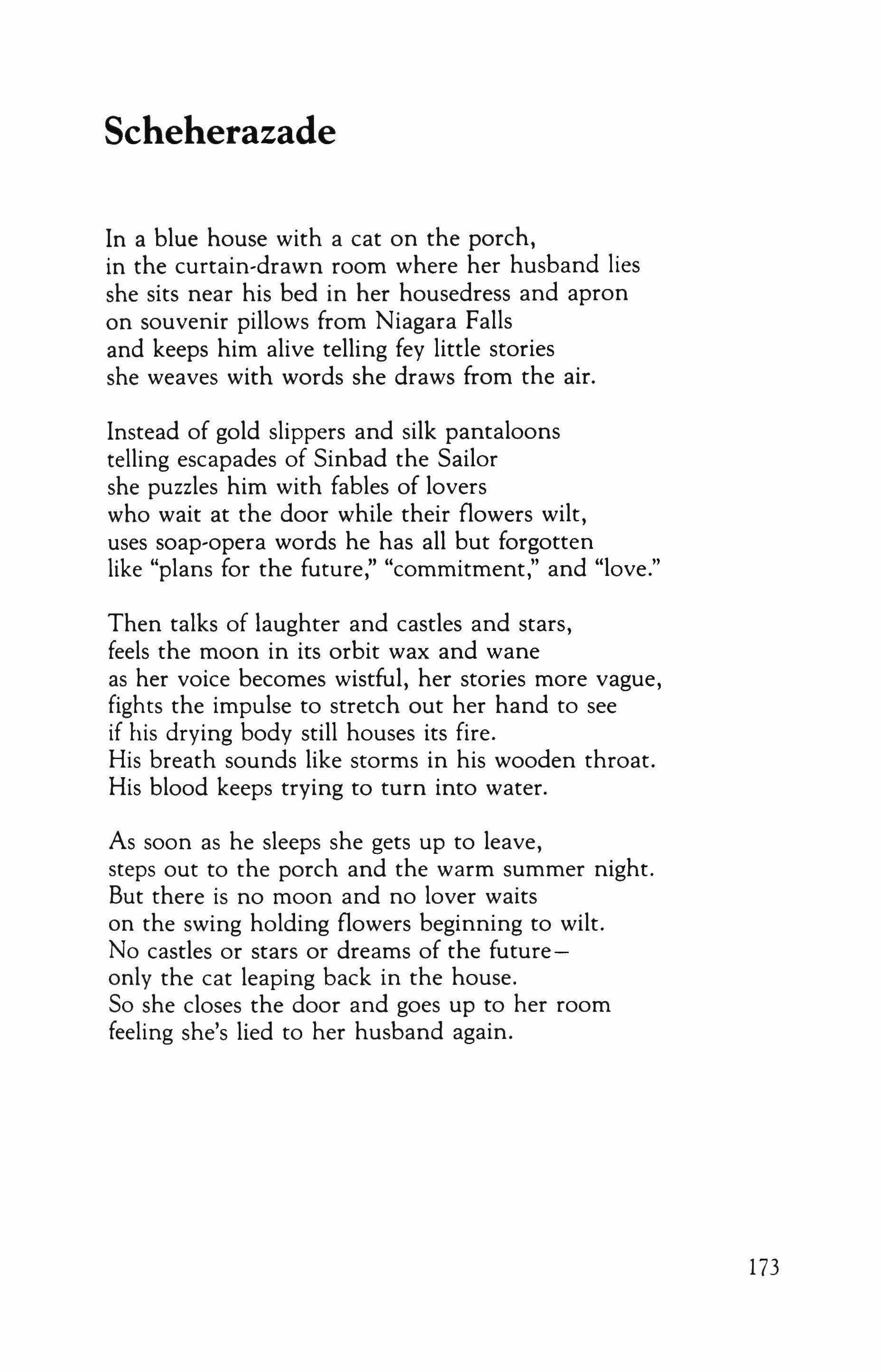 It was some hours before she appeared; she came to inquire whether the new mattress had arrived-it had, surprisingly-and lingered to adjust the blind, shift the water pitcher, glance at the book on his tableTales of Edgar Allan Poe-straighten the blankets. He began to talk.
