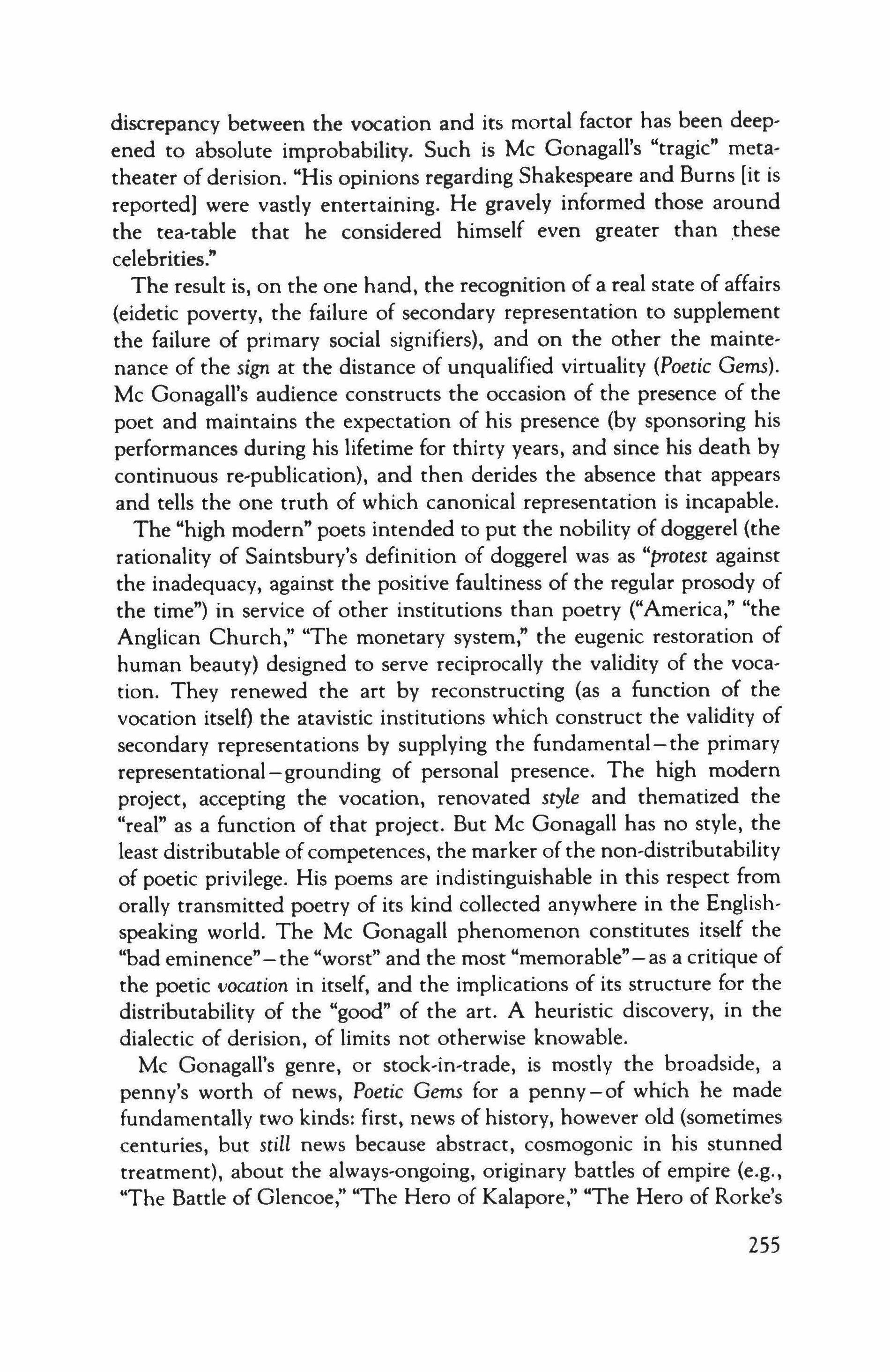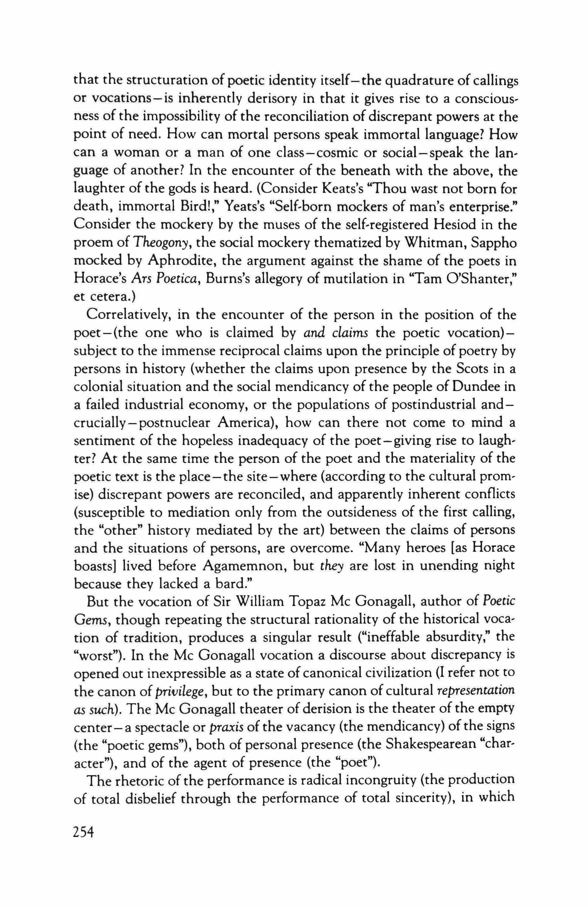 Inquiry into the Vocation of Sir William Topaz Me Gonagall, Poet and Tragedian: The Poetics of Derision and the Epistemic Nobility ••.••. 239 Allen Grossman