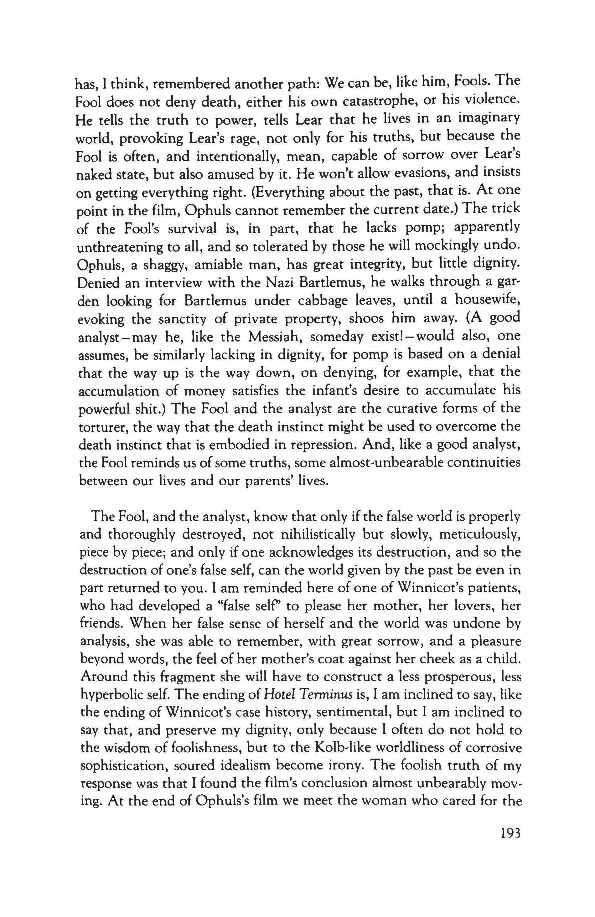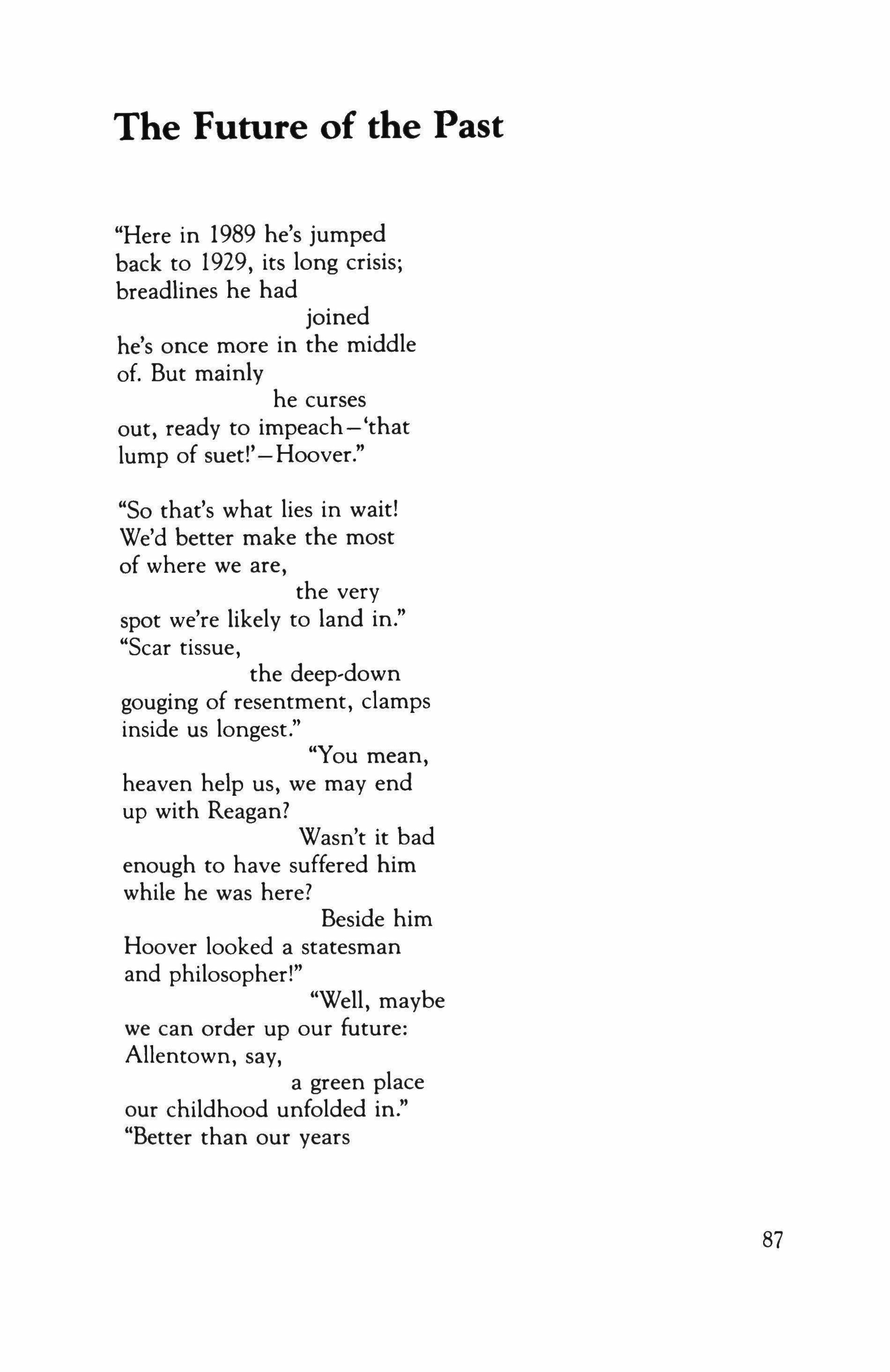 I could not, of course, tell my father what madness it was. But I did vaguely understand, even then, that the phrase was to be one of the several refrains of our lives: What madness is it? The use and beauty of work. Where is Sockless Jerry Simpson (a Populist, like my father) when we need him? Language is where life is. Time. Your poor dead mother. Time.
