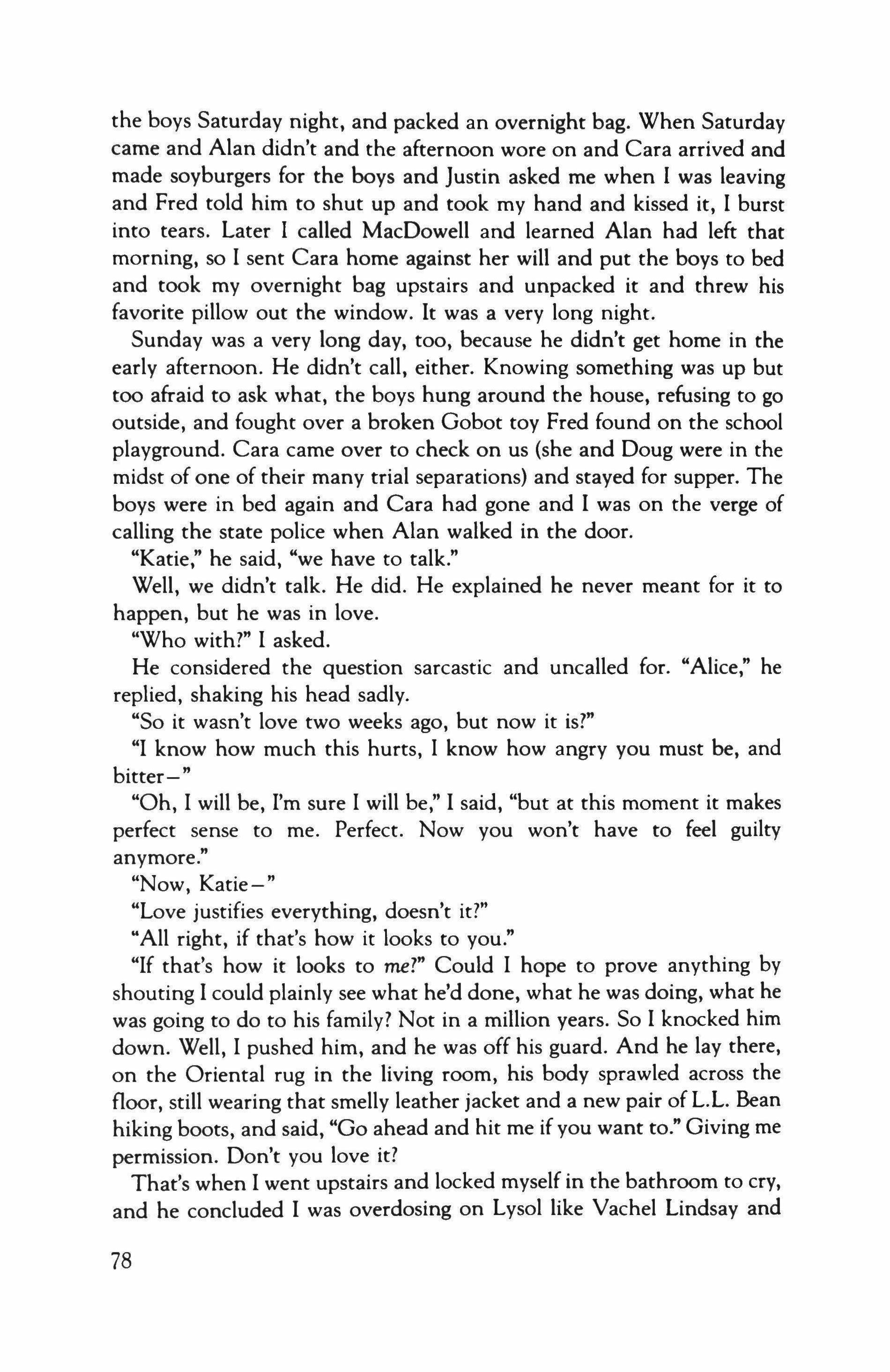 "1 am not a vice president," I'd say, something my father knew very well. 1 sell mortgage insurance. Badly, as it has turned out. Still, my father didn't approve of my enterprise-no matter how poorly 1 did it, nor with what little conviction. After 1 graduated from college he had wanted me to return to the farm to raise the low-dollar steers we'd buy at auction in the spring only to sell off in the fall, never making very much money in the process-not that making money ever seemed the point to my father. But more than work, I think he wanted me around for talk.