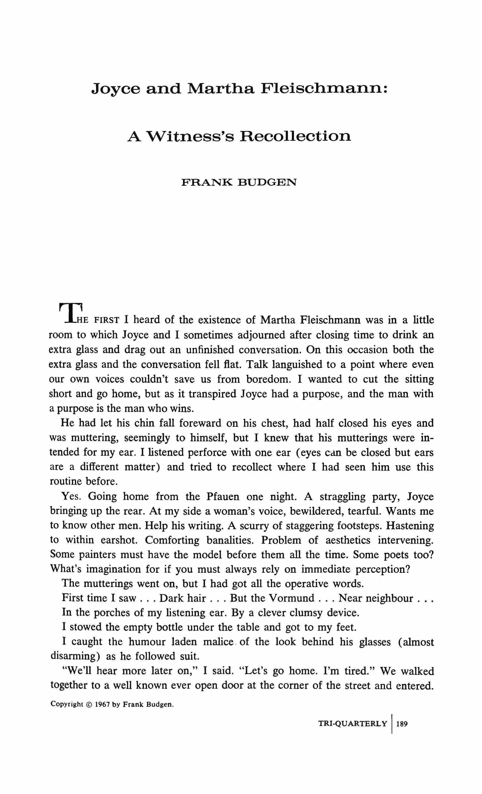 FRANK BUDGEN 189 Joyce and Martha Fleischmann: A witness' recollection