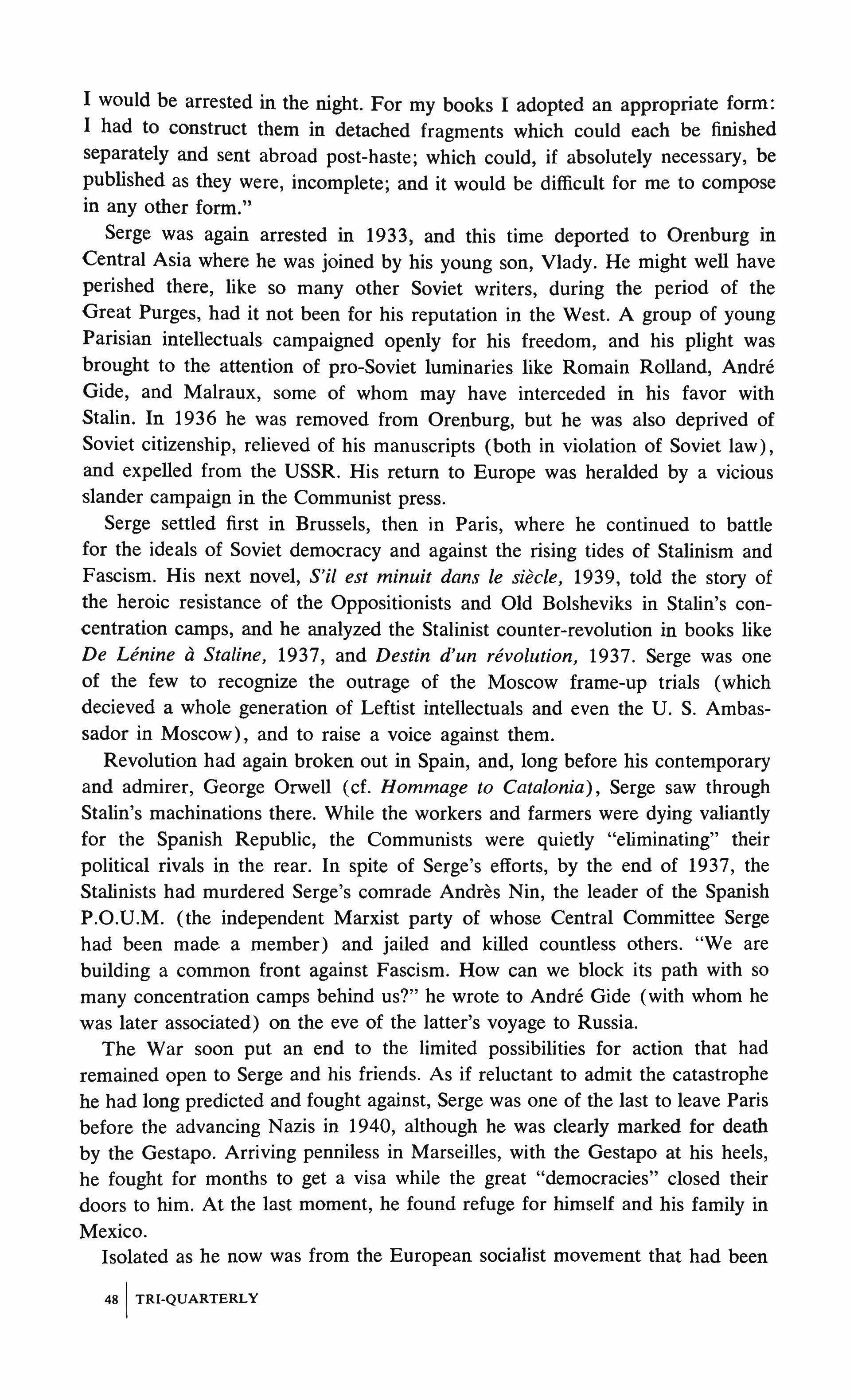 Equally tragic is the case of the poet. Walled up in his own language, he writes for his friends-for ten, for twenty persons at the most. His longing to be read is no less imperious than that of the improvised novelist. At least he has the advantage over the latter of being able to get his verses published in the little emigre reviews which appear at the cost of almost indecent sacrifices and renunciations. Let us say such a man becomes-transforms himself into-an editor of such a review; to keep his publication alive he risks hunger, abstains from women, buries himself in a windowless room, imposes privations which confound and appal. Tuberculosis and masturbation, that is his fate.