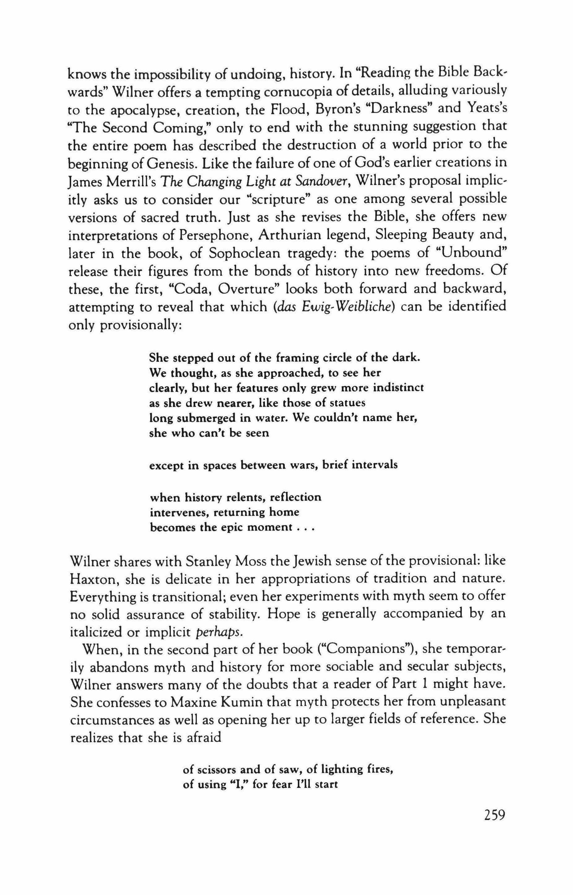 Appearing and Disappearing Selves (Brooks Haxton, Traveling Company; Stanley Moss, The Intelligence of Clouds; Eleanor Wilner, Sarah's Choice; Anne Winters, The Key to the City) ..................•.........