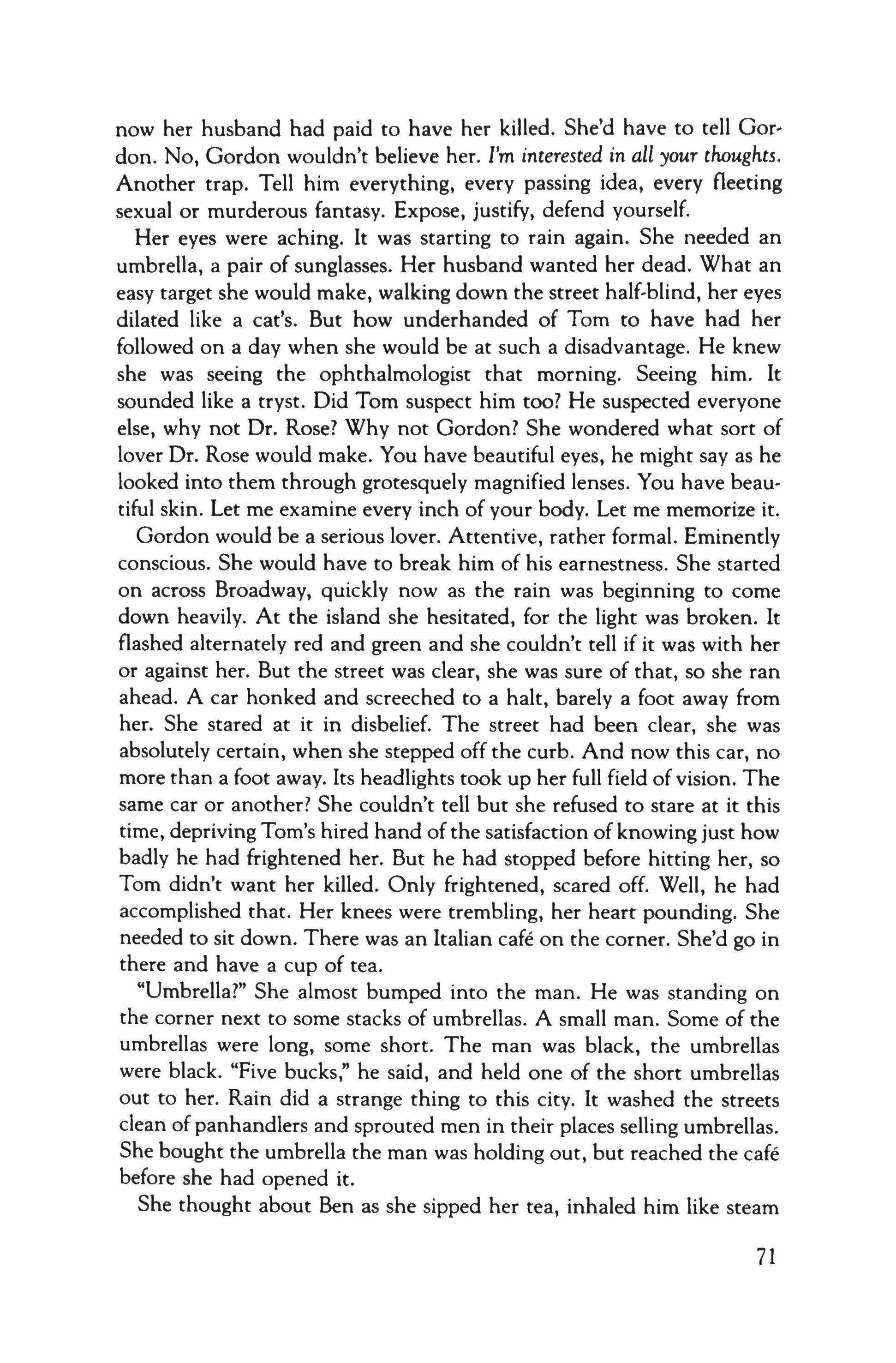 The Beach Umbrella. Iowa City: University of Iowa Press, 1970. Chicago: Swallow Press, 1970, paperback edition.