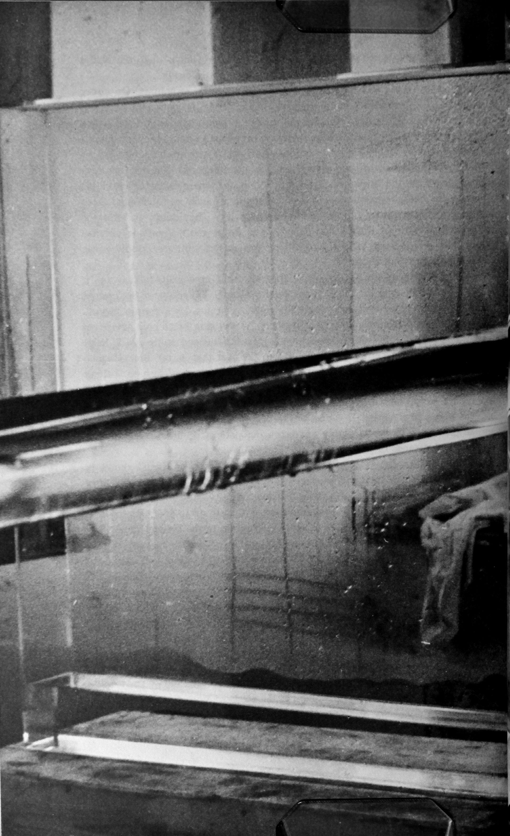 (2) "Water Box" or "Dripper" (1964): water seeks its lowest level through a square raster of holes made in two partitions; this is a "happening" in transparent materials where gravity provides the source of power.