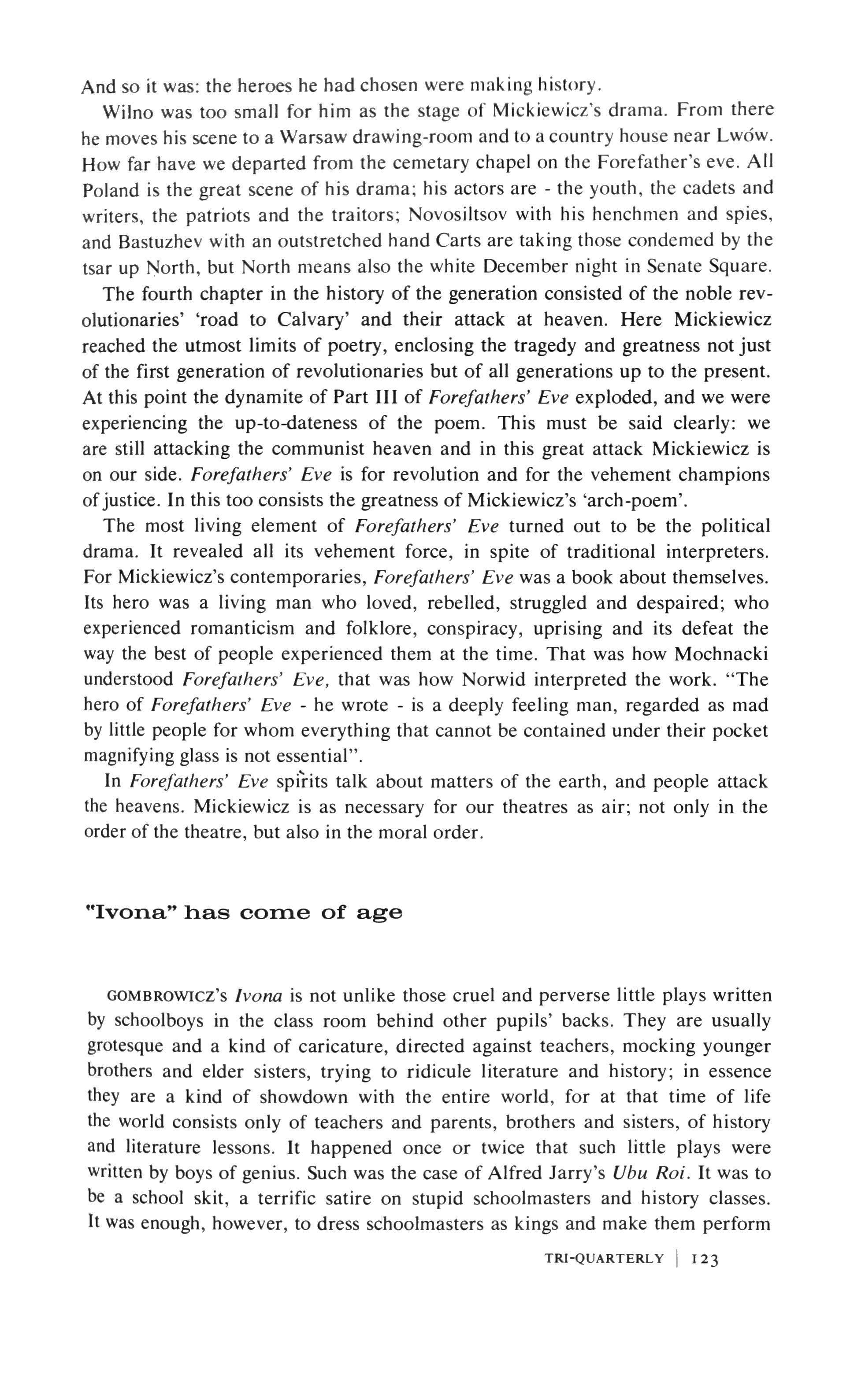 JAN KOTT 117 Wyspianski with a very Polish finale 120 Why don't you want to write about it, gentlemen? 123 "Ivona" has come of age