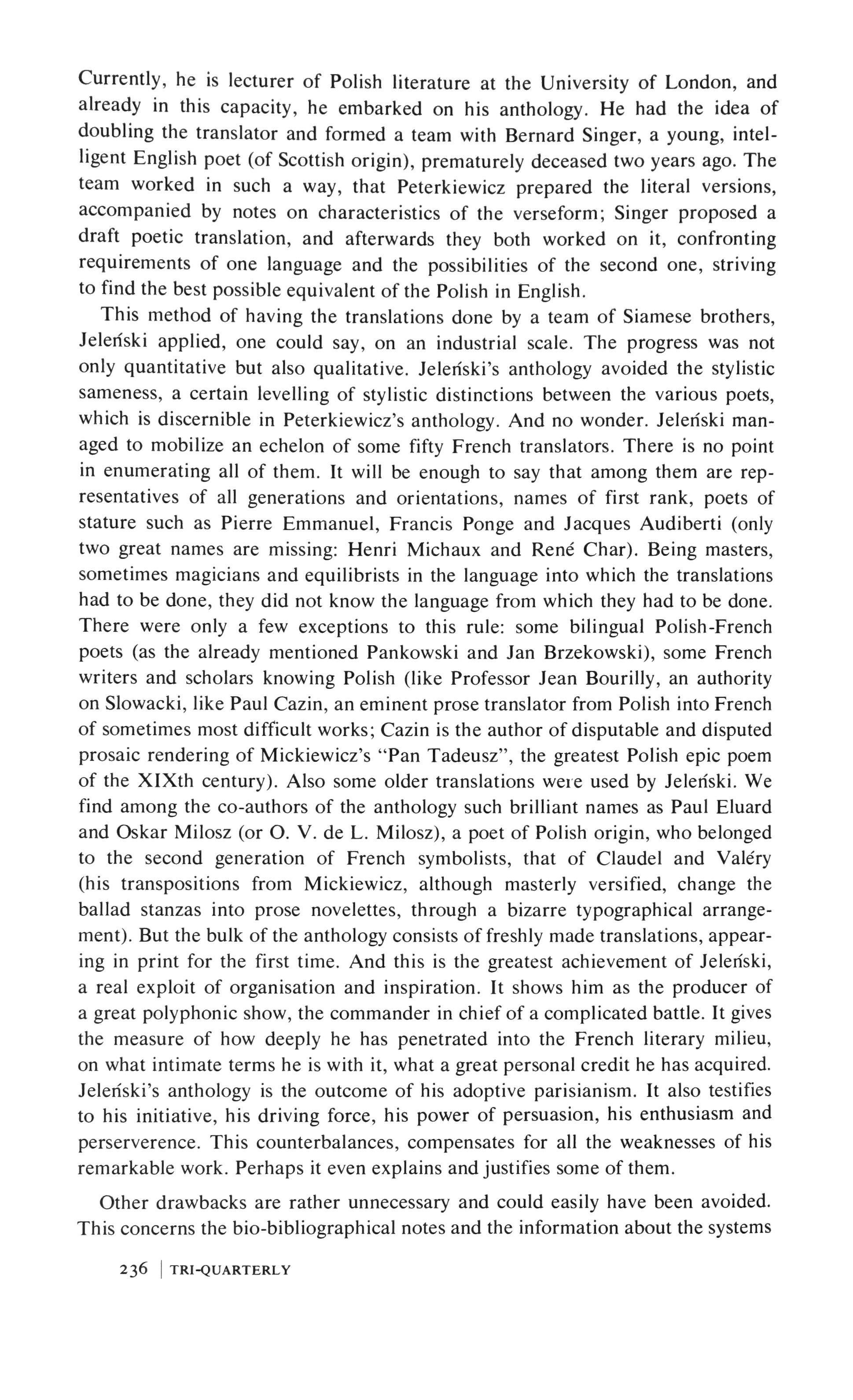 CZESLAW MILOSZ 143 Stanislaus I. Witkiewicz: A Polish writer for today