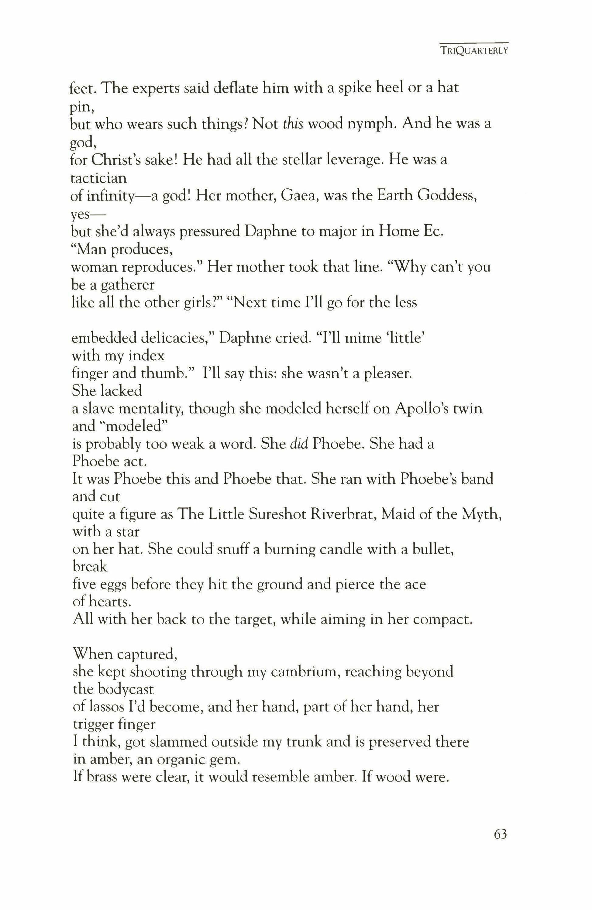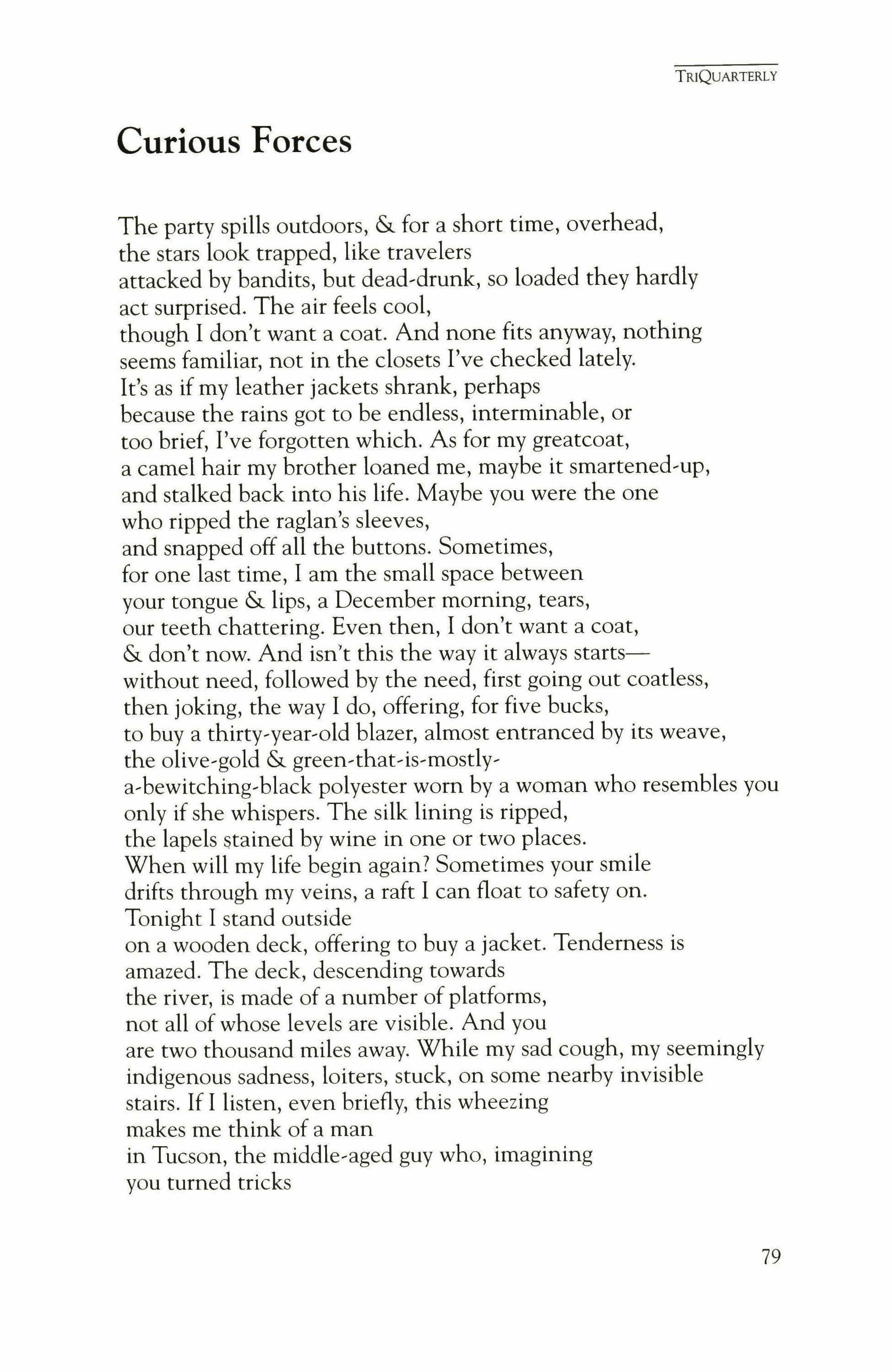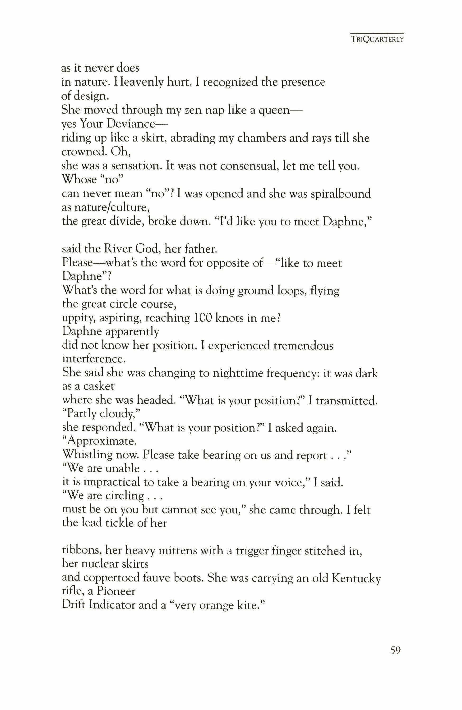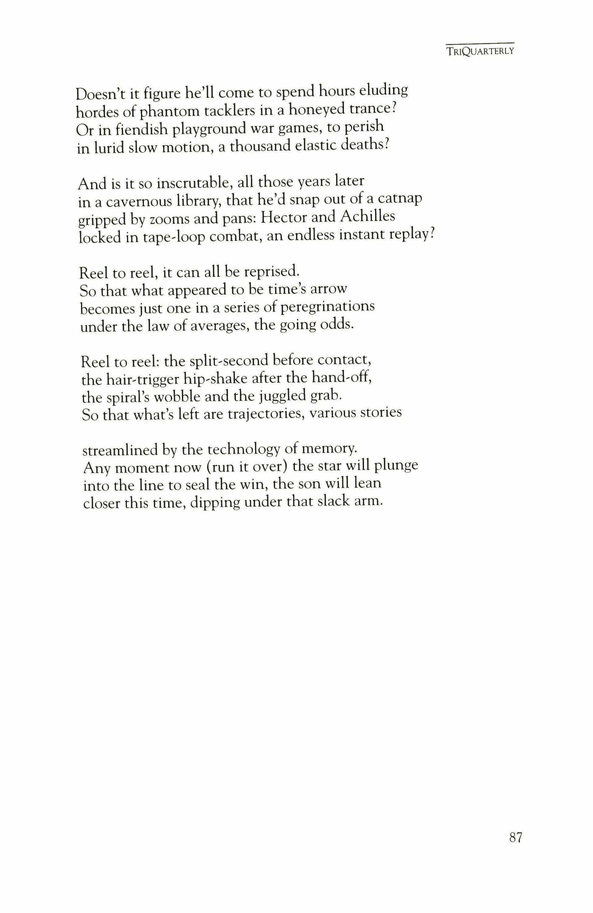Publication of TriQuarterly is made possible in part by the donors of gifts and grants to the magazine. For their recent and continuing support, we are very pleased to thank the Illinois Arts Council, the Lannan Foundation, the John D. and Catherine T. MacArthur Foundation, the National Endowment for the Arts, the Sara Lee Foundation, the Wendling Foundation, and individual donors. Major new marketing initiatives at TriQuarterly have been made possible by the Lila Wallace Reader's Digest Literary Publishers Marketing Development Program, funded through a grant to the Council of Literary Magazines and Presses.